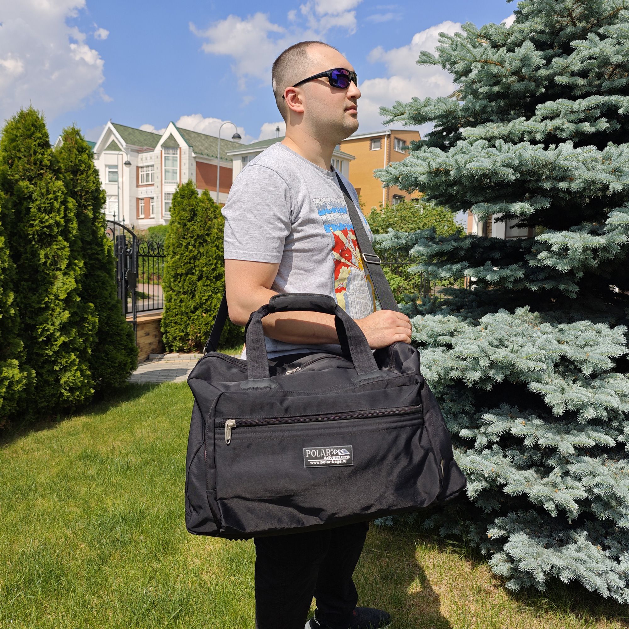 Дизайн дорожной сумки выполнен в духе современных цветовых тенденций молодежной моды. Сумка состоит из одного большого вместительного отделения, которое закрывается на двухстороннюю застежку-молнию по прямой. С фронтальной стороны дополнительно оснащена специальными карманами для документов формата А4. Несущие лямки широко фиксируются на липучке и при ношении не врезаются в руку. Съемный и удобный наплечный ремень с регулируемой длиной имеет мягкую подкладку для плеча. Удобный небольшой боковой карман для мелочей на молнии.
