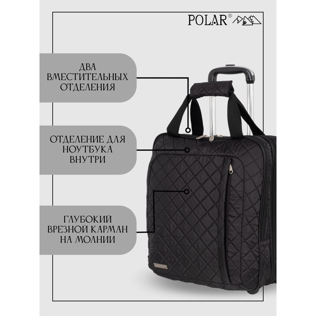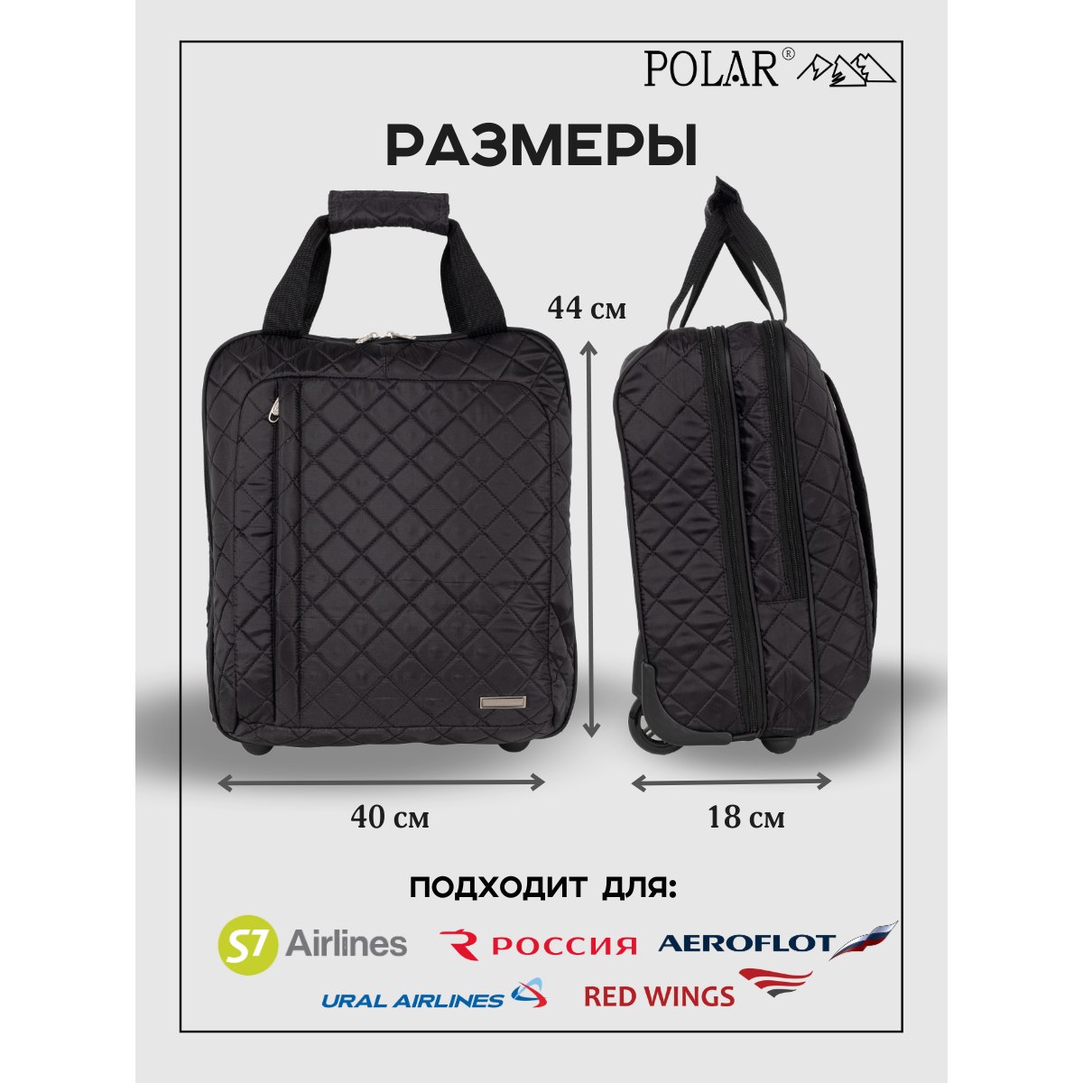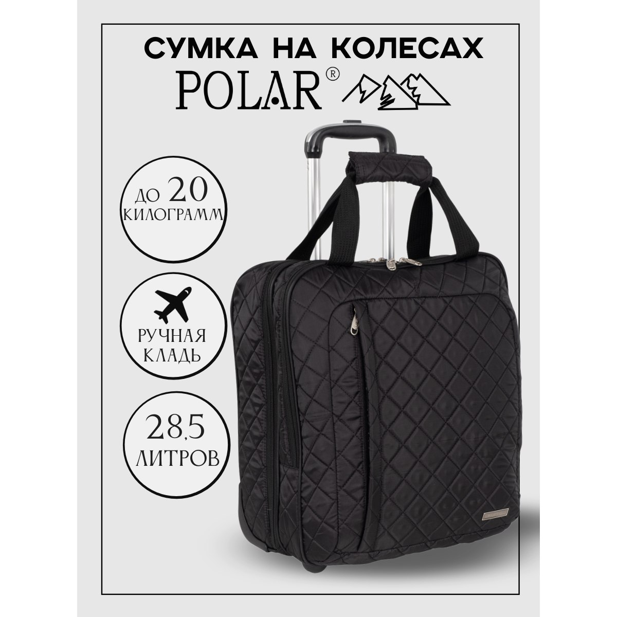 Эта модель дорожной сумки от компании POLAR отлично подойдет для краткосрочных путешествий или командировок. Сумка- чемодан состоит из двух независимых отделений, которые закрываются на двухсторонние молнии. Первое основное просторное отделение имеет фиксирующие ремни для ваших вещей и открытый карман, во втором отделении есть два сетчатых открытых кармашка. Также на передней стенке есть глубокий врезной карман на молнии, в который можно положить документы или вещи, которые должны быть под рукой.