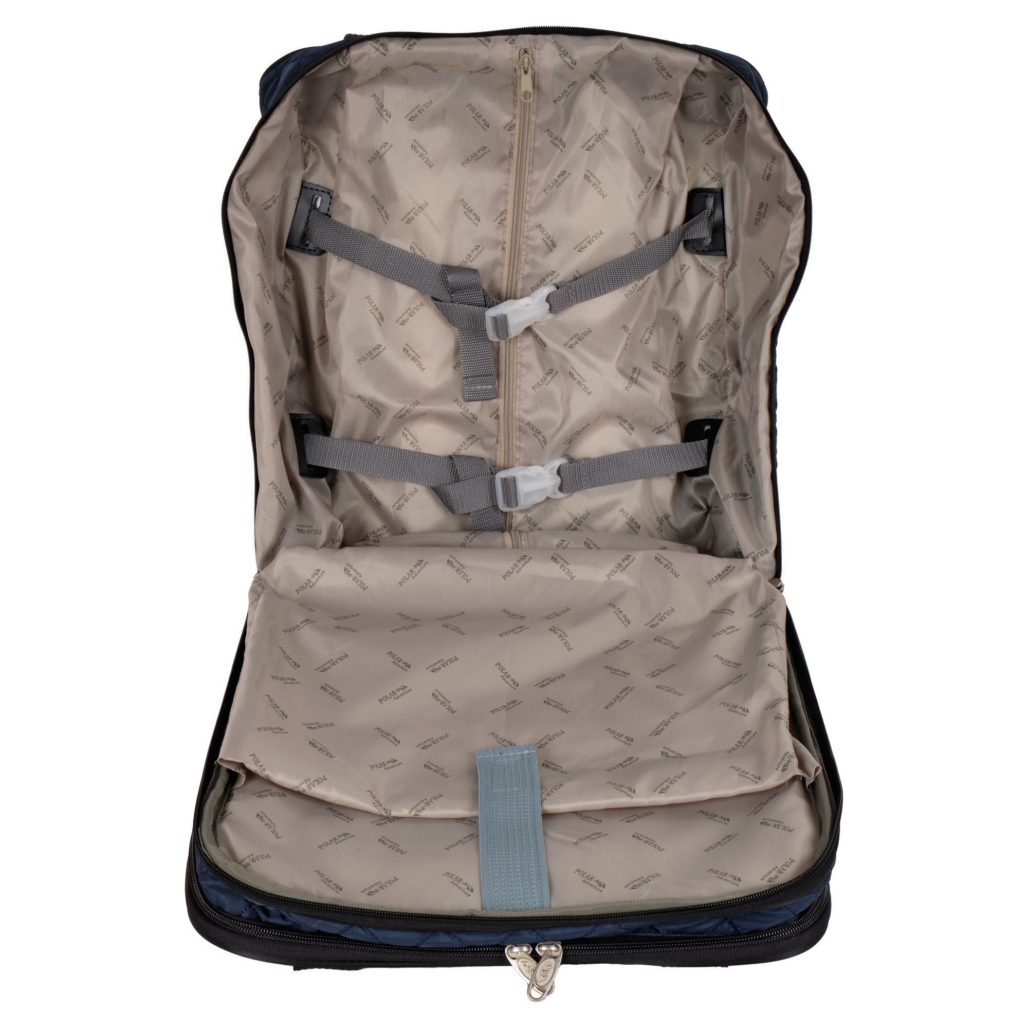 Эта модель дорожной сумки от компании POLAR отлично подойдет для краткосрочных путешествий или командировок. Сумка- чемодан состоит из двух независимых отделений, которые закрываются на двухсторонние молнии. Первое основное просторное отделение имеет фиксирующие ремни для ваших вещей и открытый карман, во втором отделении есть два сетчатых открытых кармашка. Также на передней стенке есть глубокий врезной карман на молнии, в который можно положить документы или вещи, которые должны быть под рукой.