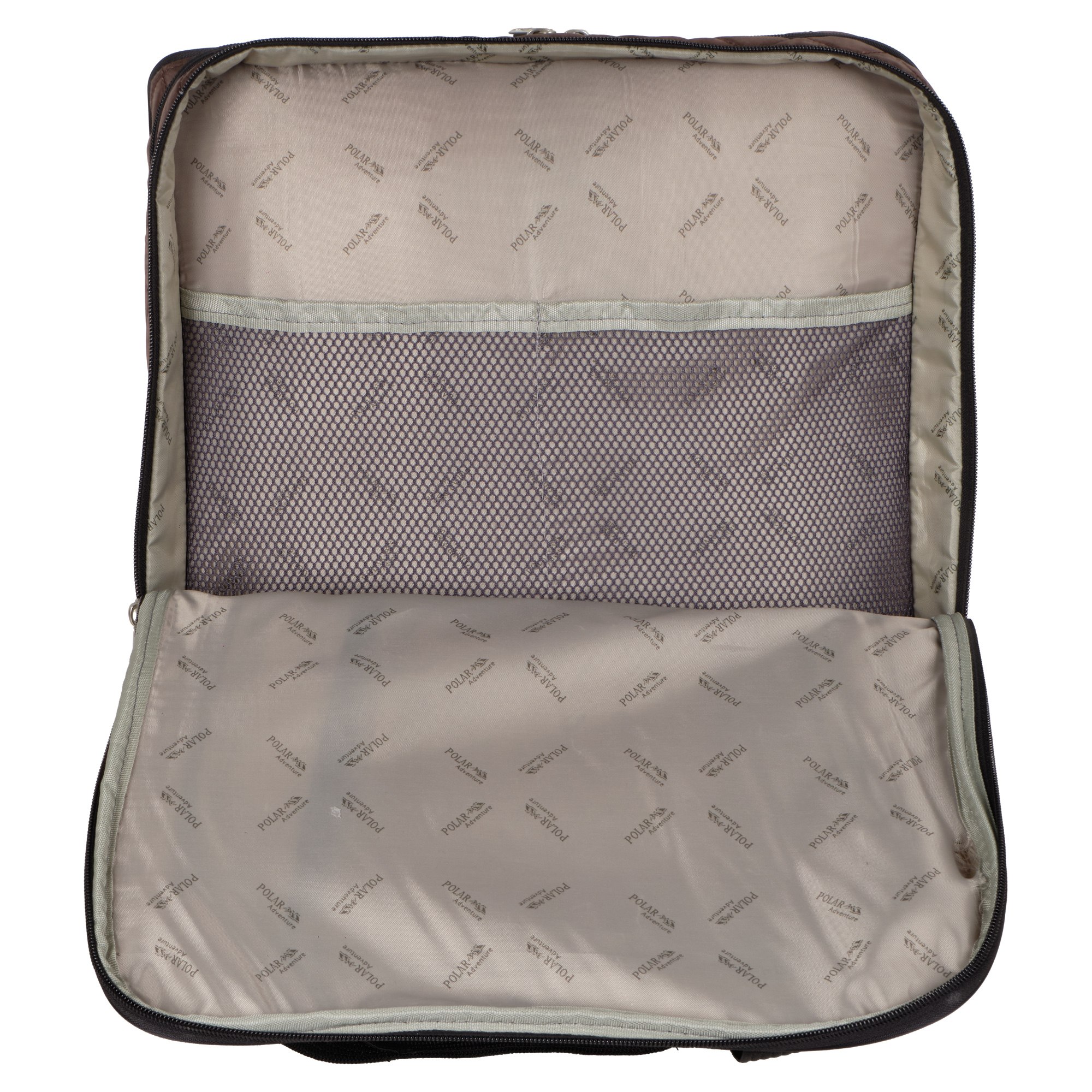 Эта модель дорожной сумки от компании POLAR отлично подойдет для краткосрочных путешествий или командировок. Сумка- чемодан состоит из двух независимых отделений, которые закрываются на двухсторонние молнии. Первое основное просторное отделение имеет фиксирующие ремни для ваших вещей и открытый карман, во втором отделении есть два сетчатых открытых кармашка. Также на передней стенке есть глубокий врезной карман на молнии, в который можно положить документы или вещи, которые должны быть под рукой.