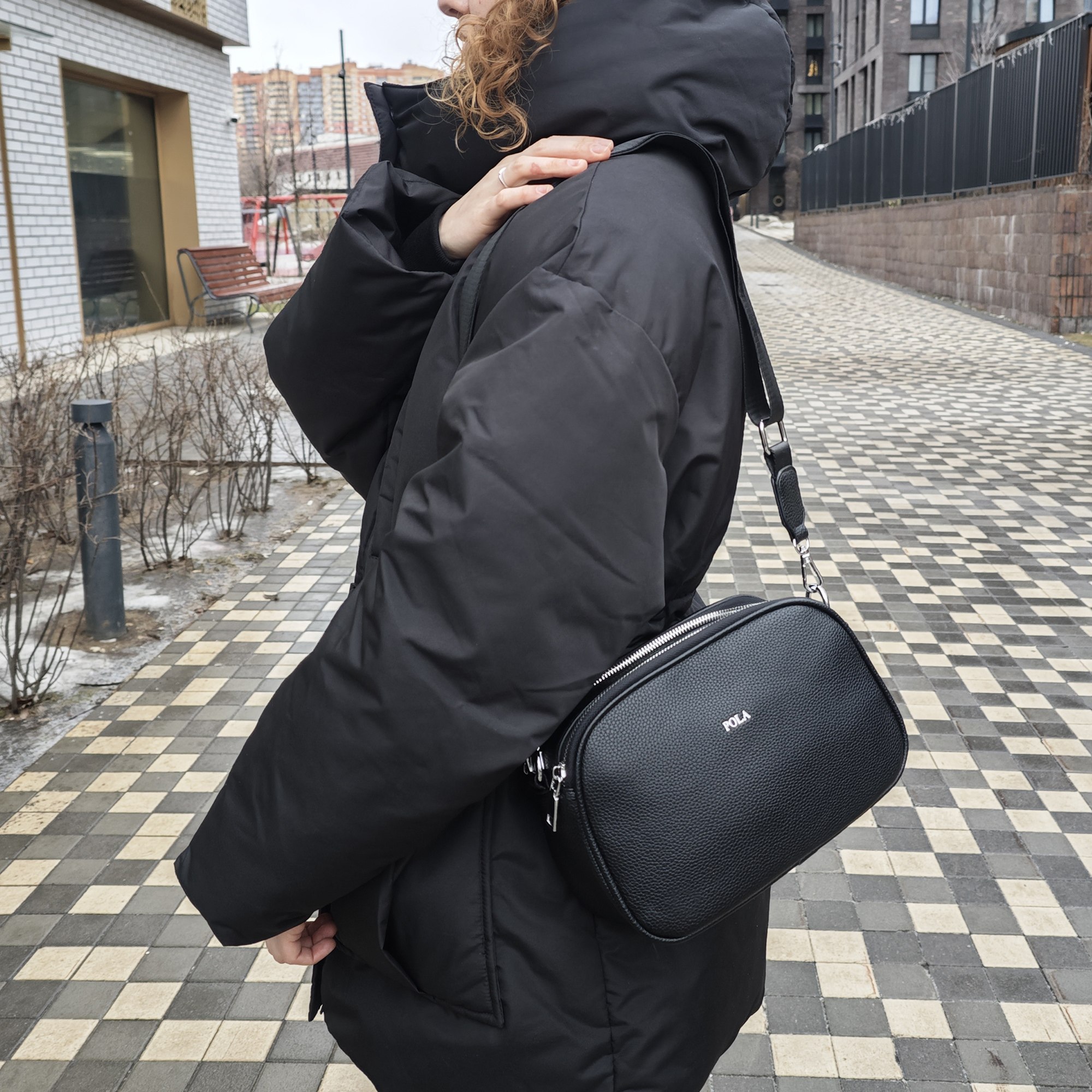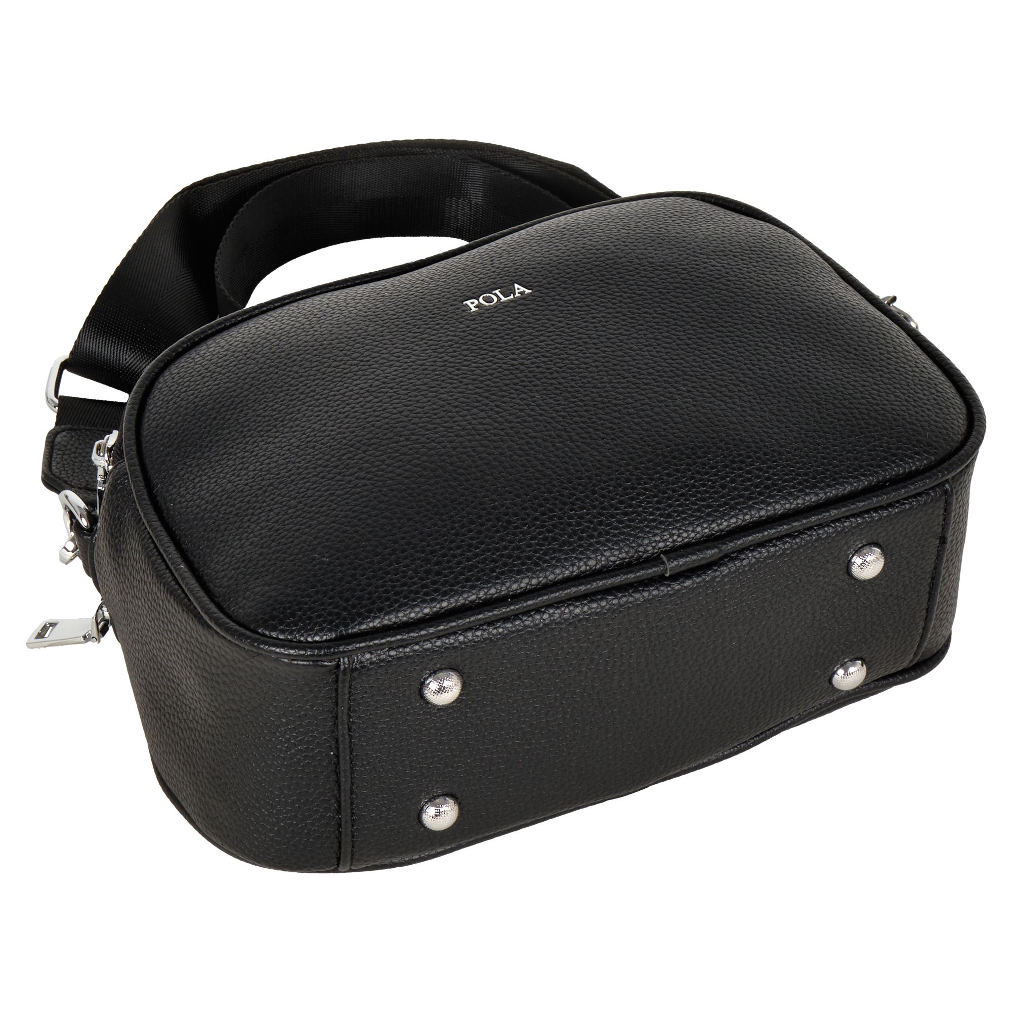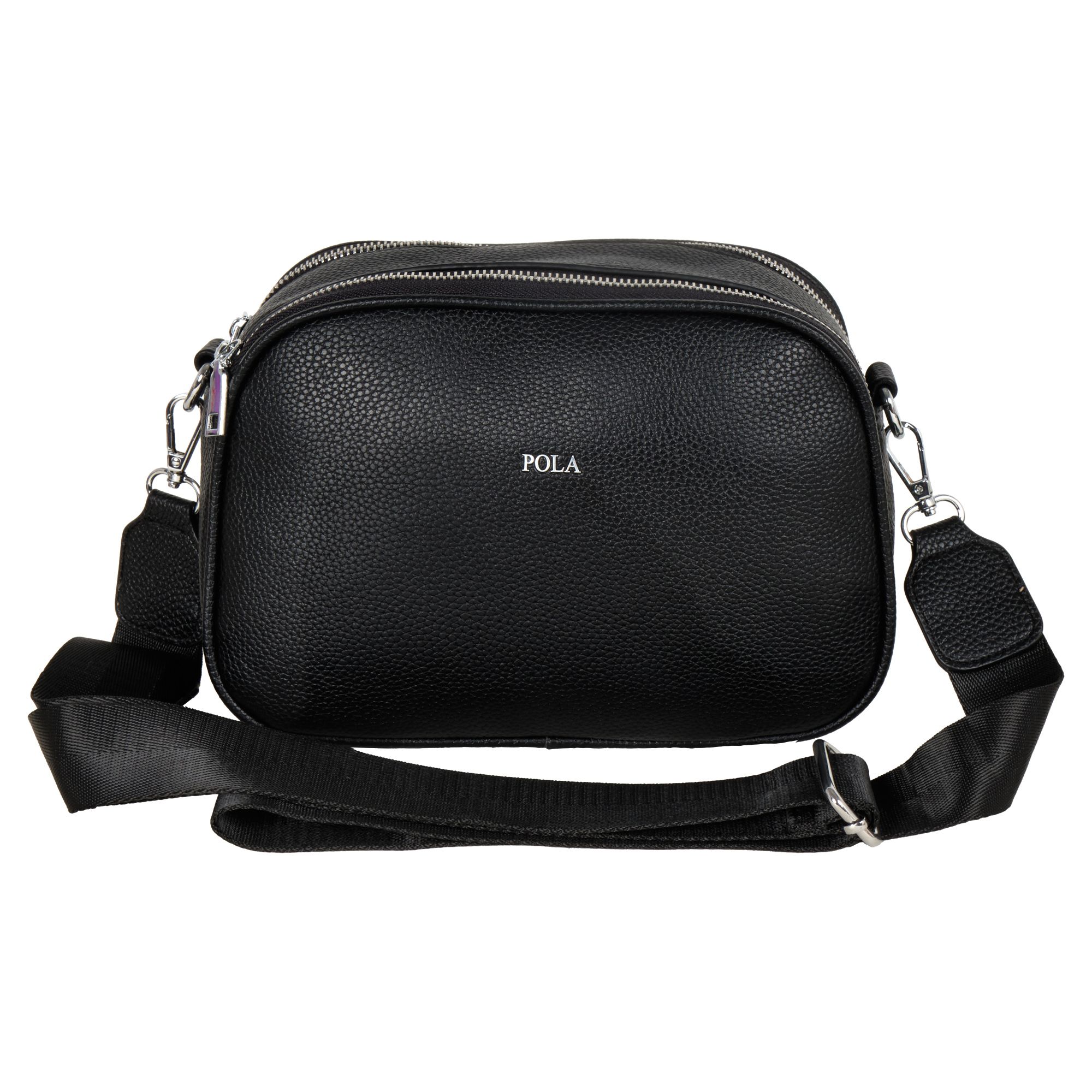 Стильная повседневная сумка фирмы Pola выполненная из мягкой экокожи, представляет собой идеальный аксессуар для современной женщины. Она обладает двумя просторными отделениями, каждое из которых защищено собственной молнией. Внутри находится дополнительный карман для мелких предметов. Сзади небольшой карман на молнии. Модель среднего размера выполнена в черном цвете, что делает её универсальной и подходящей к любому наряду. В комплекте съемный плечевой ремень длиной 150 см. Сумочка кросс-боди идеально подойдёт для повседневного использования. Цвет фурнитуры-серебро.