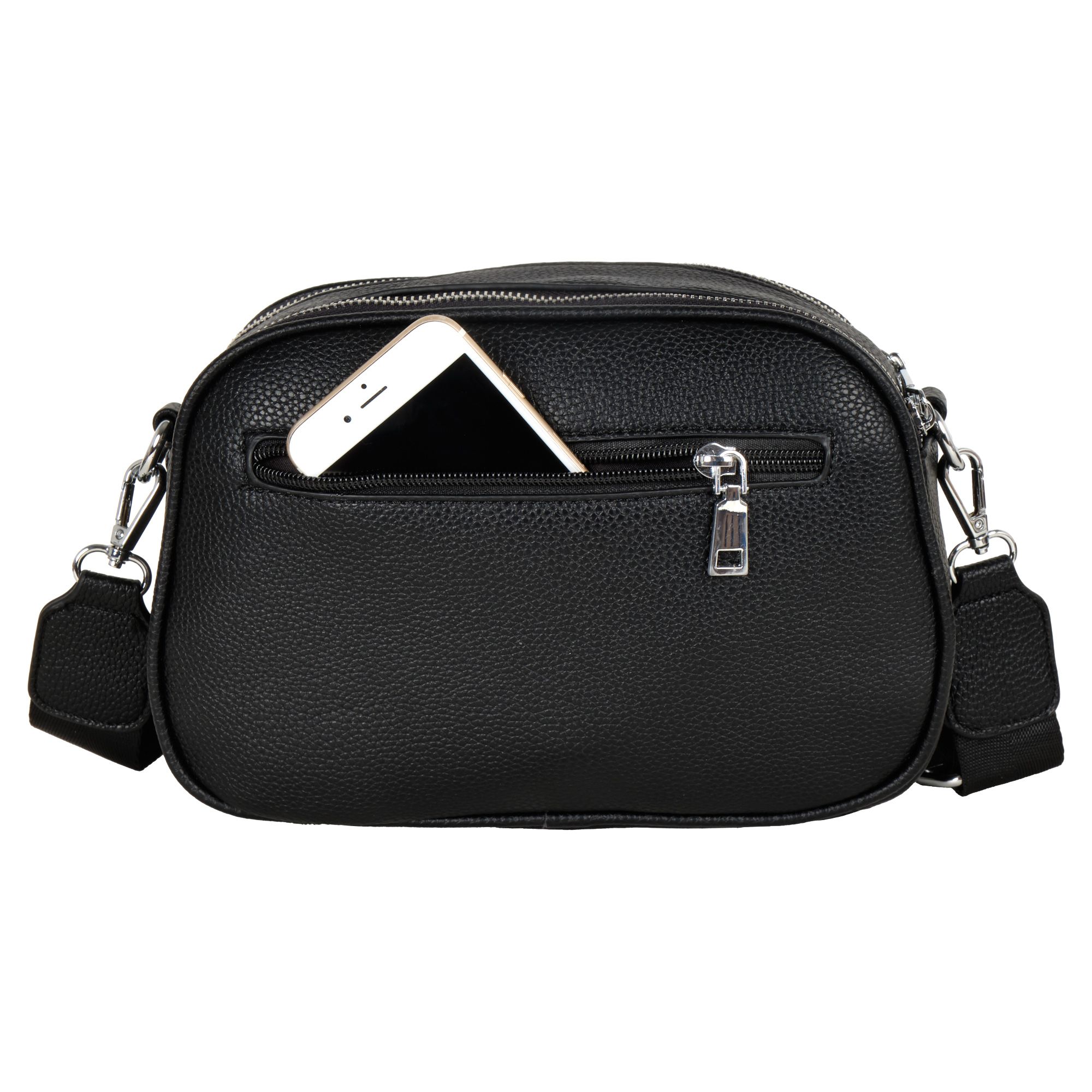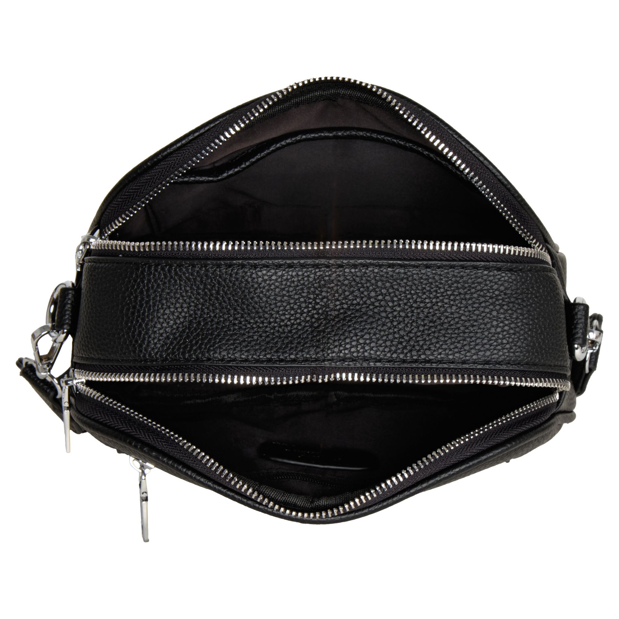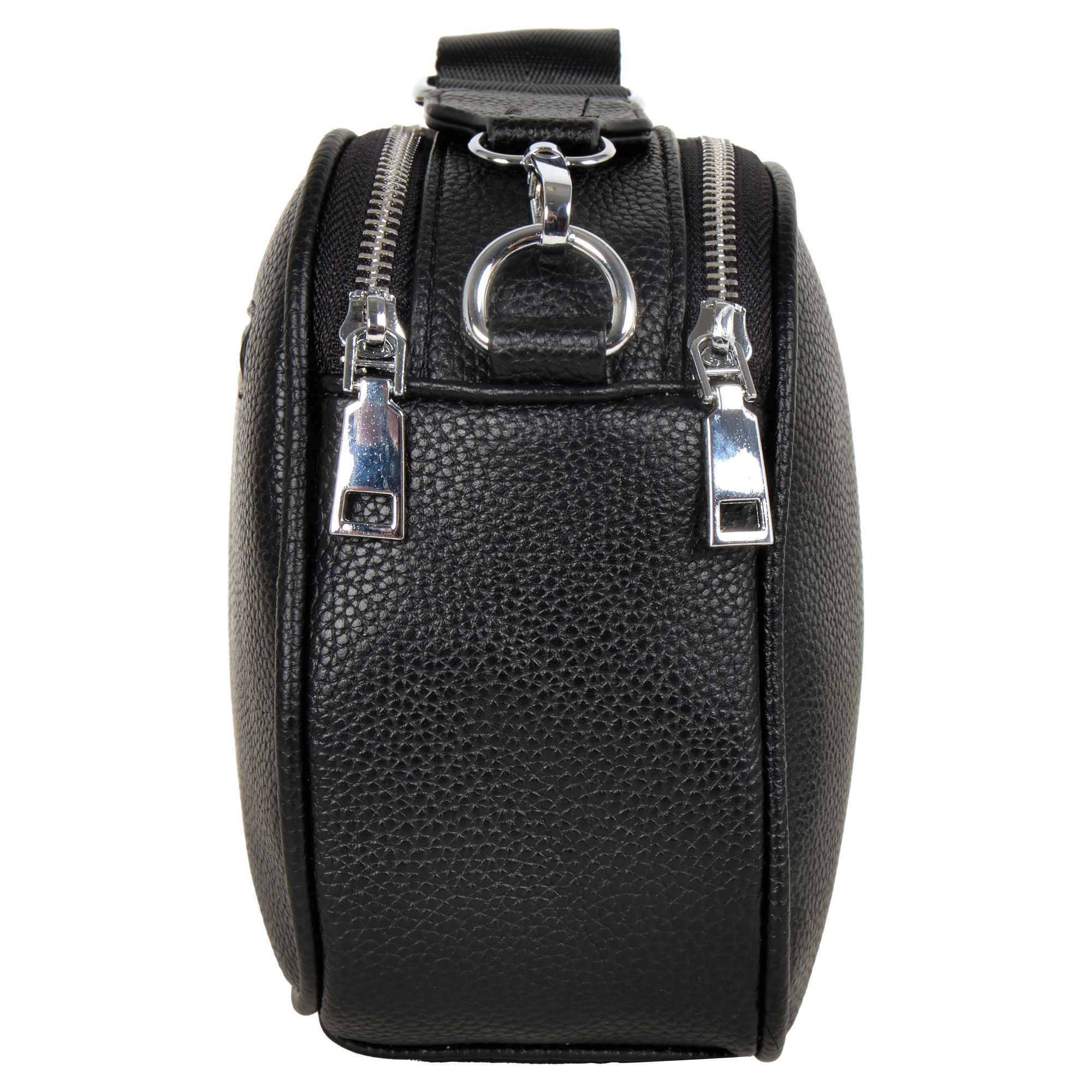 Стильная повседневная сумка фирмы Pola выполненная из мягкой экокожи, представляет собой идеальный аксессуар для современной женщины. Она обладает двумя просторными отделениями, каждое из которых защищено собственной молнией. Внутри находится дополнительный карман для мелких предметов. Сзади небольшой карман на молнии. Модель среднего размера выполнена в черном цвете, что делает её универсальной и подходящей к любому наряду. В комплекте съемный плечевой ремень длиной 150 см. Сумочка кросс-боди идеально подойдёт для повседневного использования. Цвет фурнитуры-серебро.