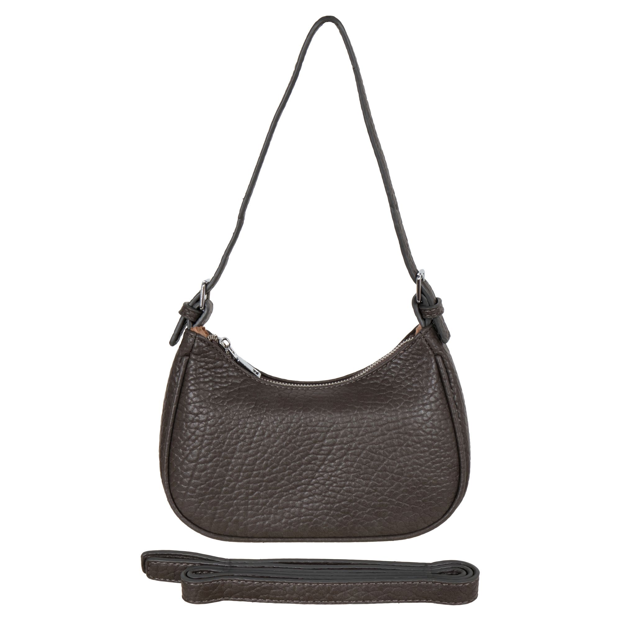 Женская сумка POLA выполненная из экокожи. Небольшая форма наплечной сумочки оптимальна, чтобы поместить в ней все необходимое. Основное отделение закрывается на молнию. Внутри есть один карман на молнии и один открытый кармашек. Цвет фурнитуры-серебро. Сумку можно носить через плечо, как кросс-боди и на плече, за счет смены ремней. Короткий ремень-57см и длинный ремень-120 см. Подойдёт как для выхода в театр, ресторан, так и для прогулки в будние дни в качестве повседневной сумки в виде полумесяца.