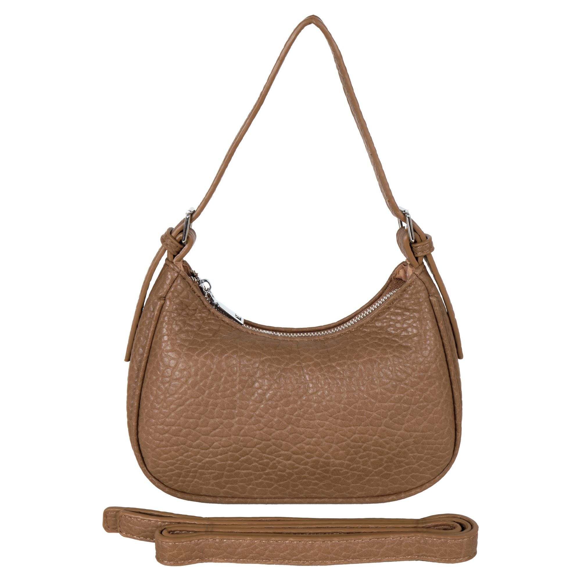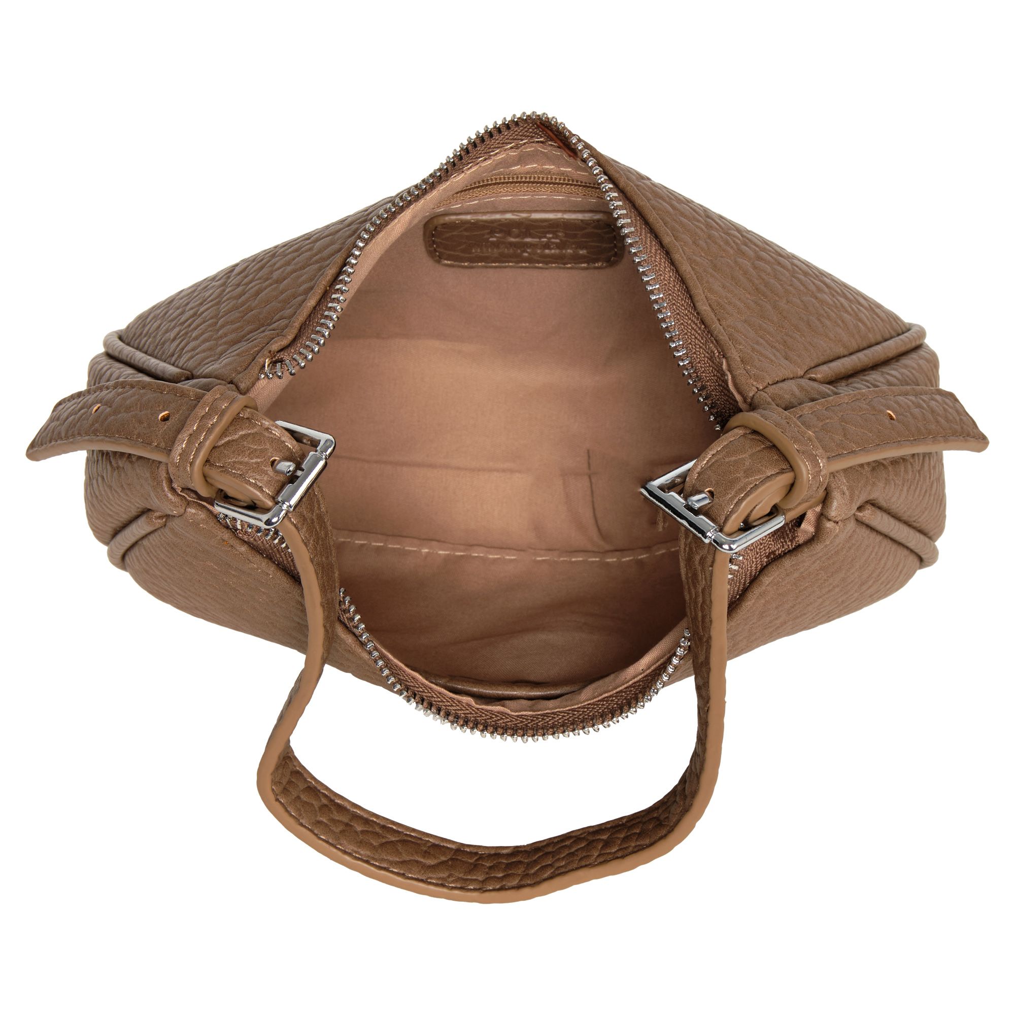 Женская сумка POLA выполненная из экокожи. Небольшая форма наплечной сумочки оптимальна, чтобы поместить в ней все необходимое. Основное отделение закрывается на молнию. Внутри есть один карман на молнии и один открытый кармашек. Цвет фурнитуры-серебро. Сумку можно носить через плечо, как кросс-боди и на плече, за счет смены ремней. Короткий ремень-57см и длинный ремень-120 см. Подойдёт как для выхода в театр, ресторан, так и для прогулки в будние дни в качестве повседневной сумки в виде полумесяца.