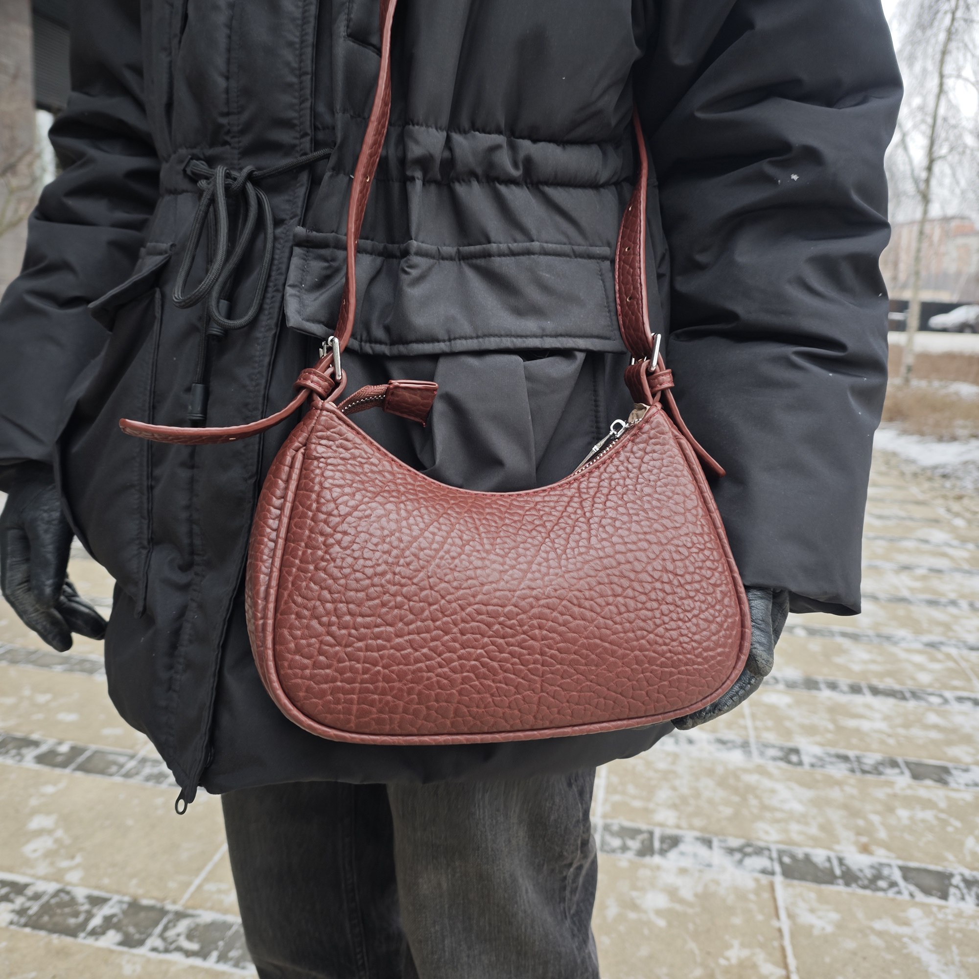 Женская сумка POLA выполненная из экокожи. Небольшая форма наплечной сумочки оптимальна, чтобы поместить в ней все необходимое. Основное отделение закрывается на молнию. Внутри есть один карман на молнии и один открытый кармашек. Цвет фурнитуры-серебро. Сумку можно носить через плечо, как кросс-боди и на плече, за счет смены ремней. Короткий ремень-57см и длинный ремень-120 см. Подойдёт как для выхода в театр, ресторан, так и для прогулки в будние дни в качестве повседневной сумки в виде полумесяца.
