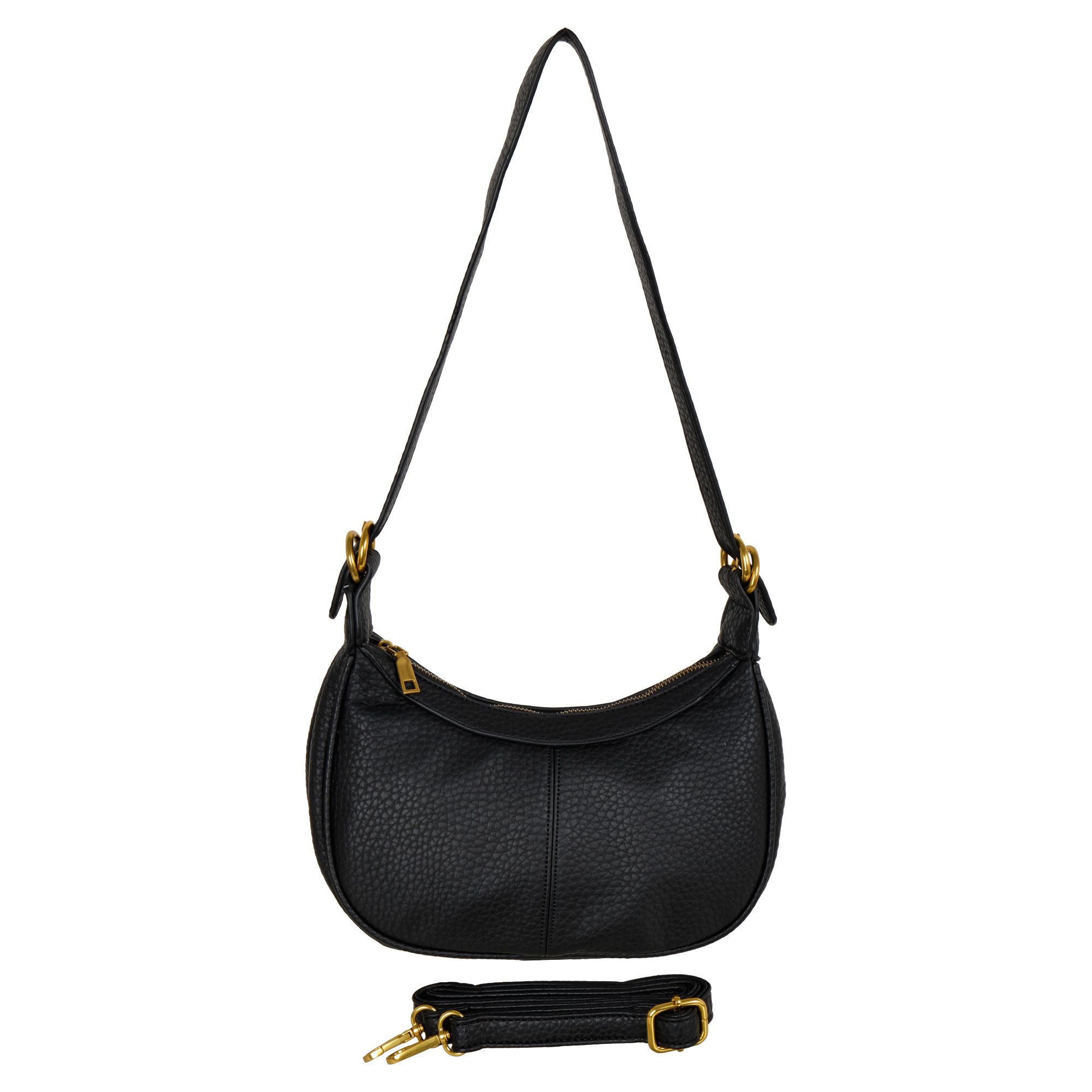 Стильная сумка хобо фирмы POLA выполнена из экокожи, одна из самых трендовых и востребованных сумочек. Сумка по размеру маленькая, но компактная, подойдёт как для выхода в театр, ресторан, так и для прогулки в будние дни в качестве повседневной сумки в виде полумесяца. Основное отделение закрывается на молнию. Внутри есть один карман на молнии и один открытый кармашек. У данной модели два варианта переноски, съемная ручка, высота 37см и съемный, регулируемый ремешок из экокожи, высота 125 см. Цвет фурнитуры-золото.