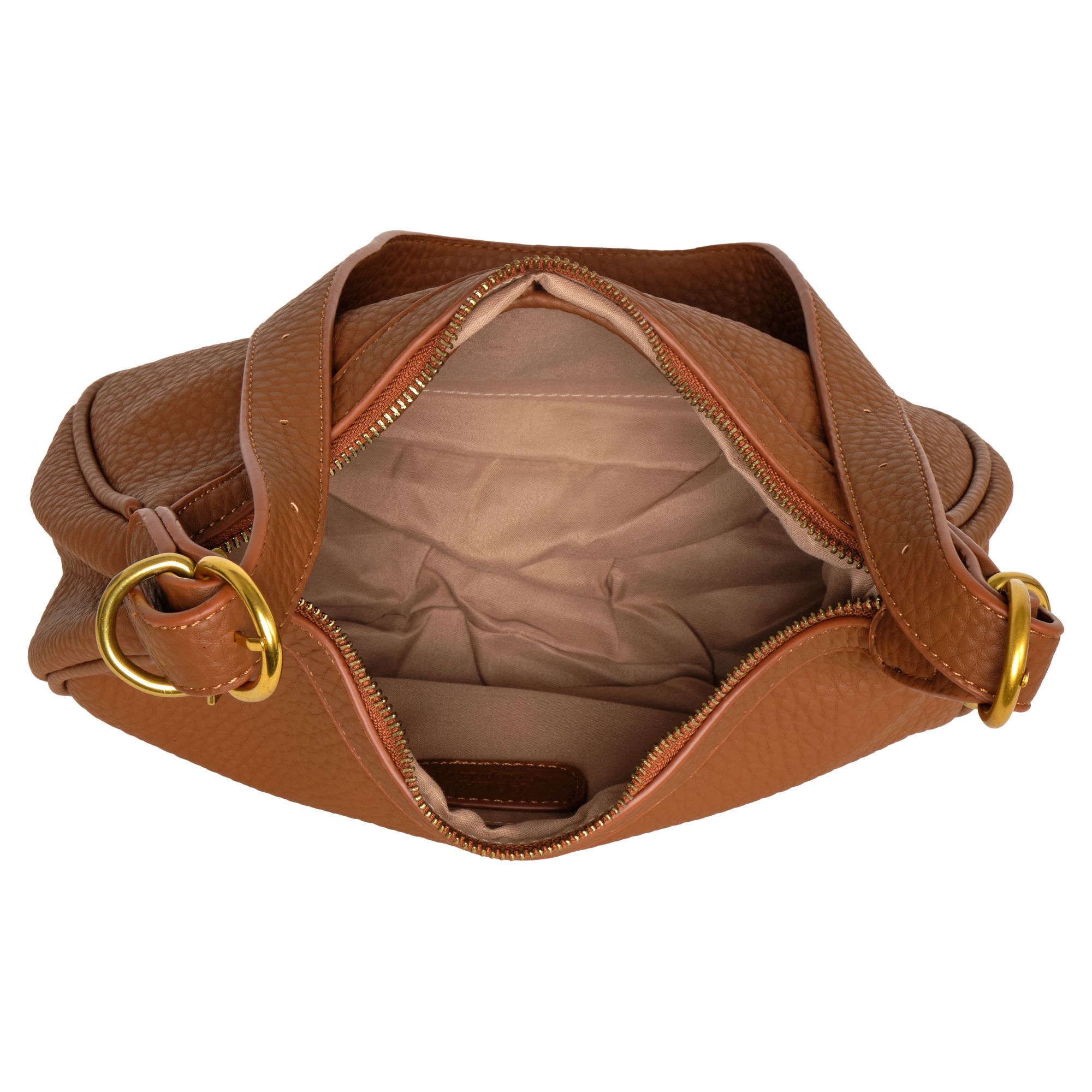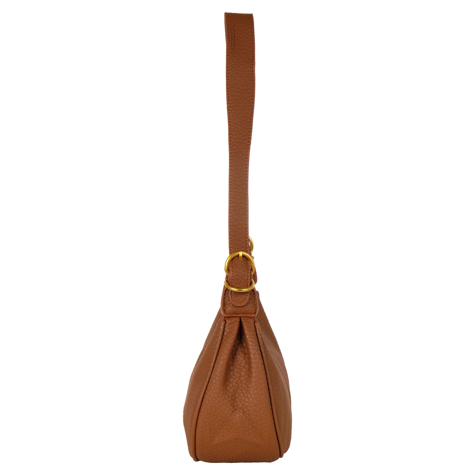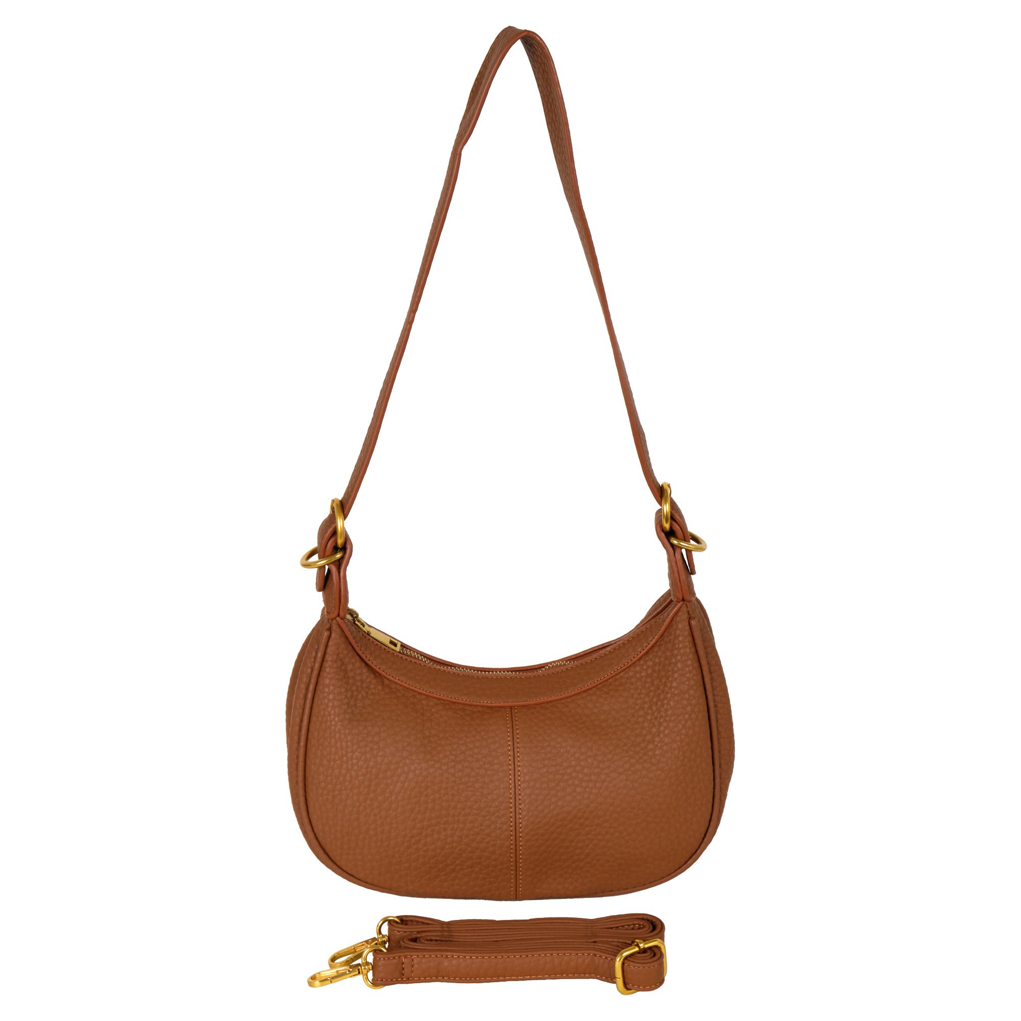 Стильная сумка хобо фирмы POLA выполнена из экокожи, одна из самых трендовых и востребованных сумочек. Сумка по размеру маленькая, но компактная, подойдёт как для выхода в театр, ресторан, так и для прогулки в будние дни в качестве повседневной сумки в виде полумесяца. Основное отделение закрывается на молнию. Внутри есть один карман на молнии и один открытый кармашек.  У данной модели два варианта переноски, съемная ручка, высота 37см и съемный, регулируемый ремешок из экокожи, высота 125 см. Цвет фурнитуры-золото.