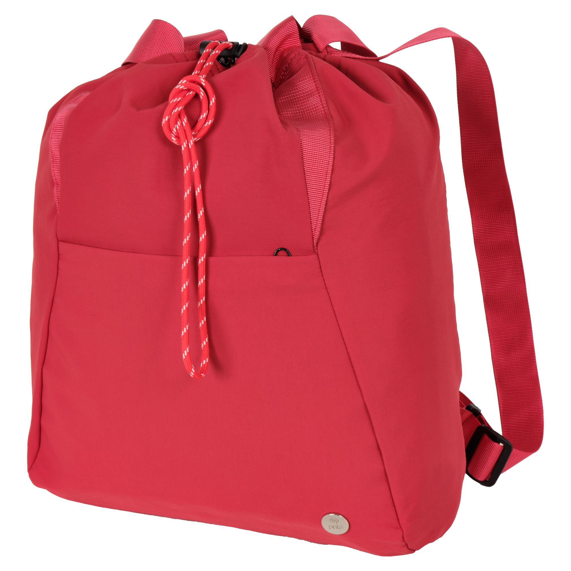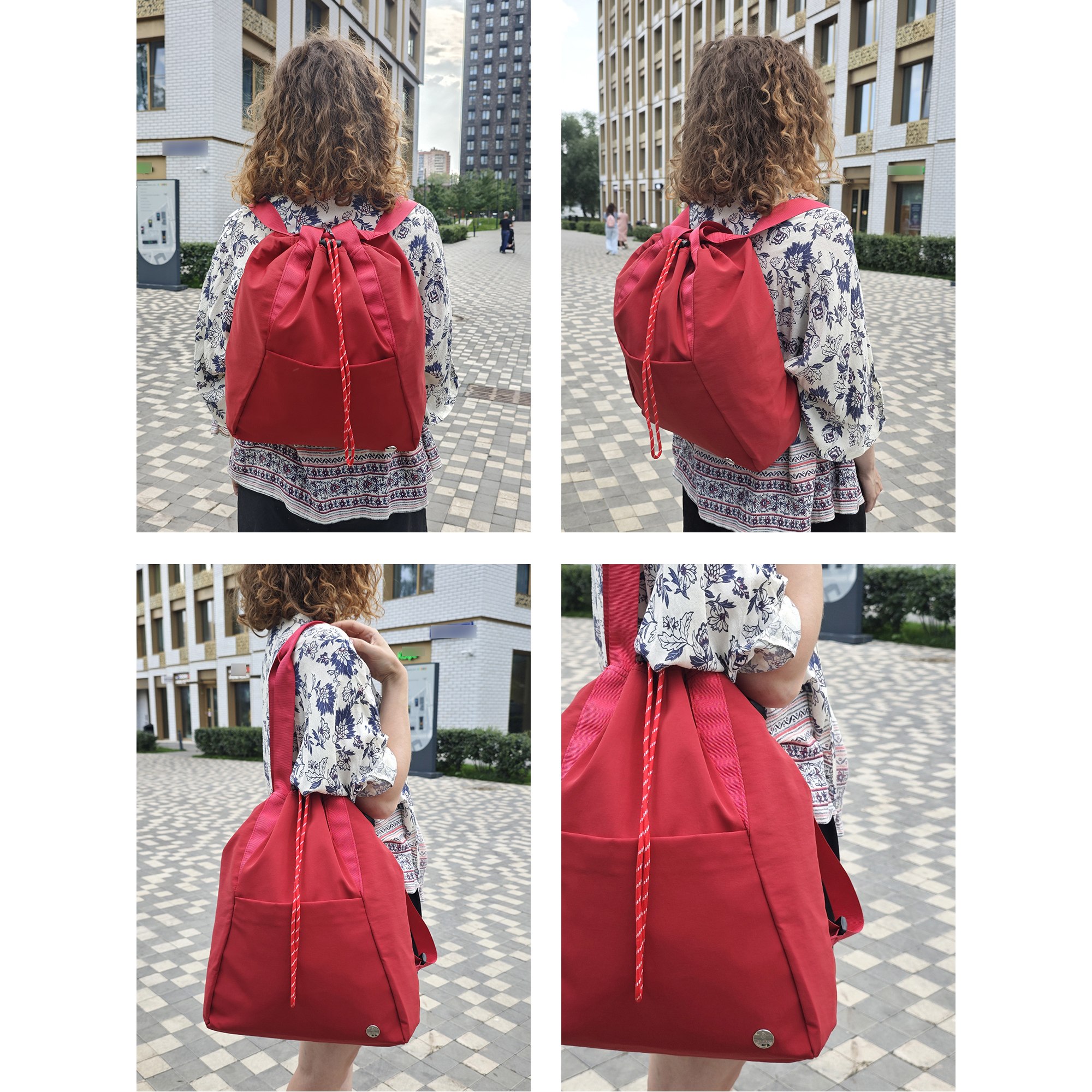 Городская сумка-рюкзак-шоппер фирмы Pola выполнен из нейлона. Модель имеет вместительное одно отделение, закрывающееся на утяжку. Внутри рюкзака, есть два небольших открытых кармашка. Спереди- врезной карман на молнии. Модель имеет две ручки высота 32 см для переноски и лямки, регулируемый по длине 68 см.