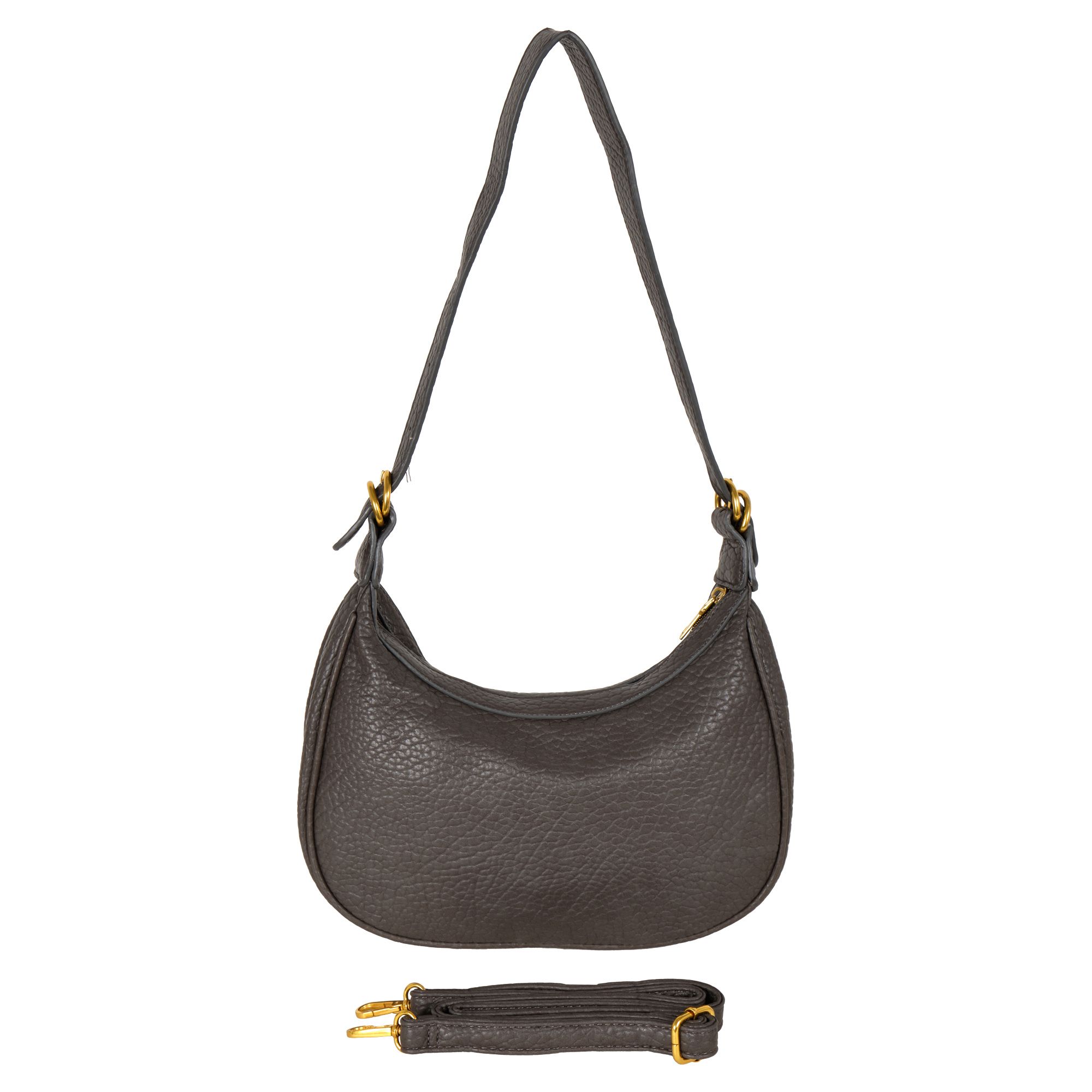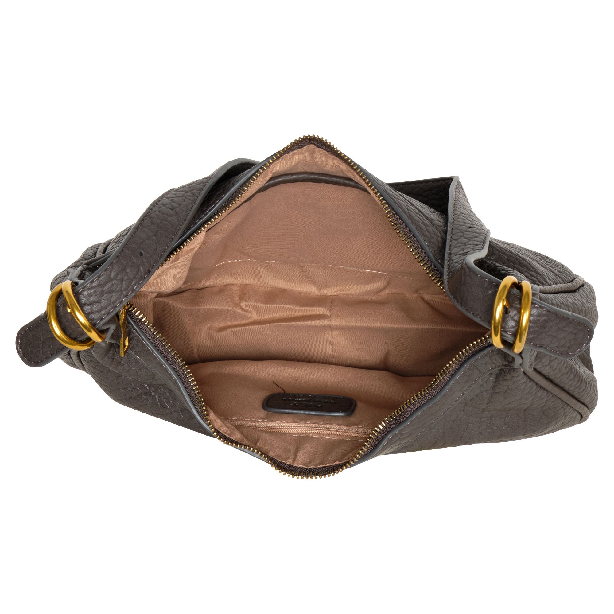 Стильная сумка фирмы POLA выполнена из экокожи. Сумка подойдёт как для выхода в театр, ресторан, так и для прогулки в будние дни в качестве повседневной сумки в виде полумесяца. Основное отделение закрывается на молнию. Внутри есть один карман на молнии и один открытый кармашек. У данной модели два варианта переноски, съемная ручка, высота 41 см и съемный, регулируемый ремешок из экокожи, высота 125 см. Цвет фурнитуры-золото.