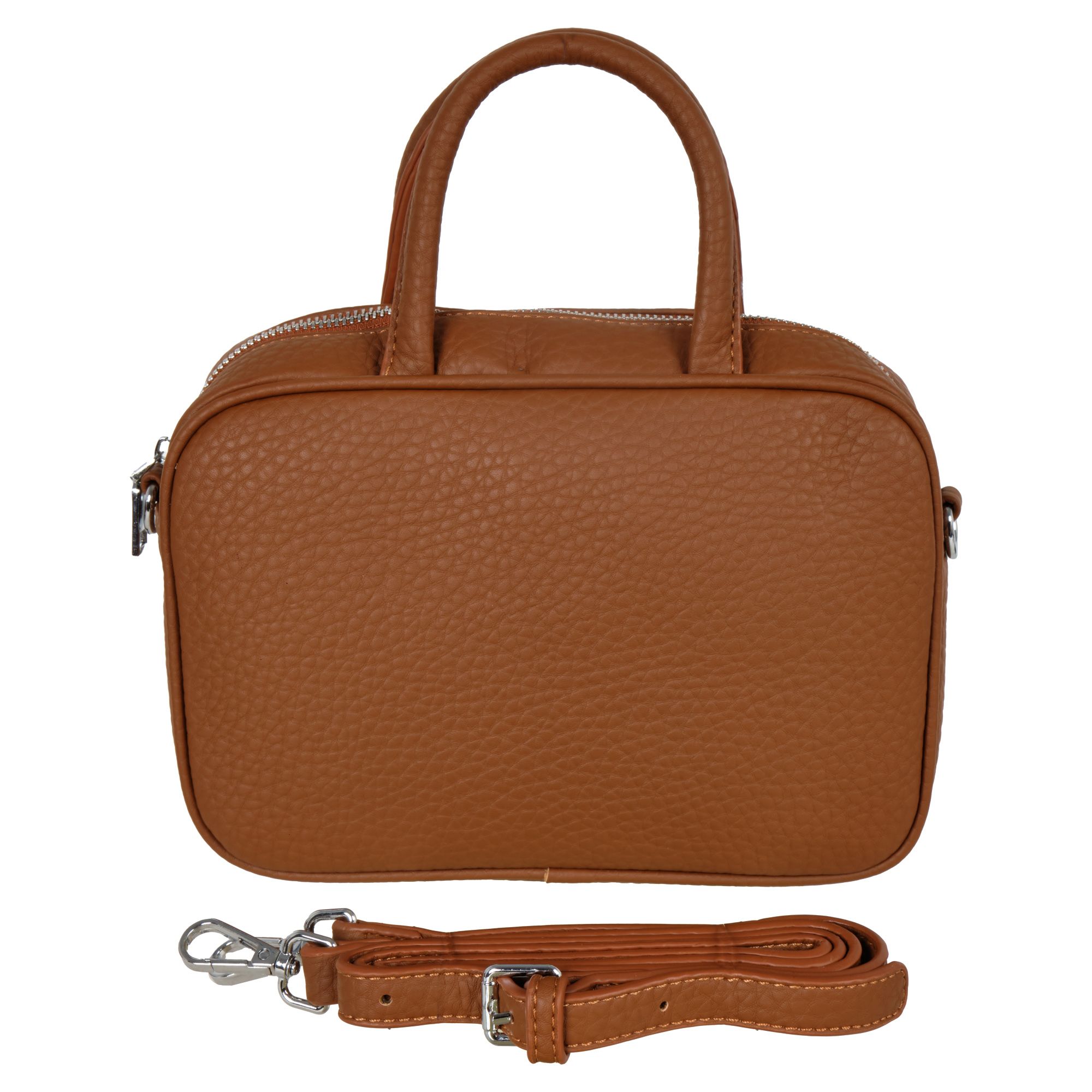 Женская сумка POLA, смотрится невероятно стильно. Выполнена из экокожи, которая выглядит и ощущается так же роскошно, как натуральная кожа.  Основное отделение сумки застегивается на молнию, что обеспечивает надежную фиксацию содержимого, удобство и комфорт. Внутри два кармана: на молнии и открытый кармашек. В комплекте съемный плечевой ремень длиной 122 см.  Цвет фурнитуры- серебро. Высота ручек- 10 см. Сумка придаст вашему образу незабываемый стиль. Ее минималистичный дизайн делает ее идеальным аксессуаром для каждого дня.