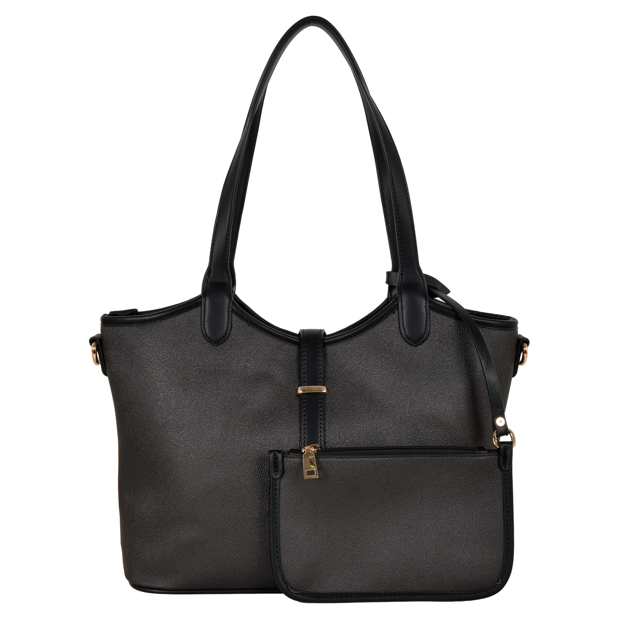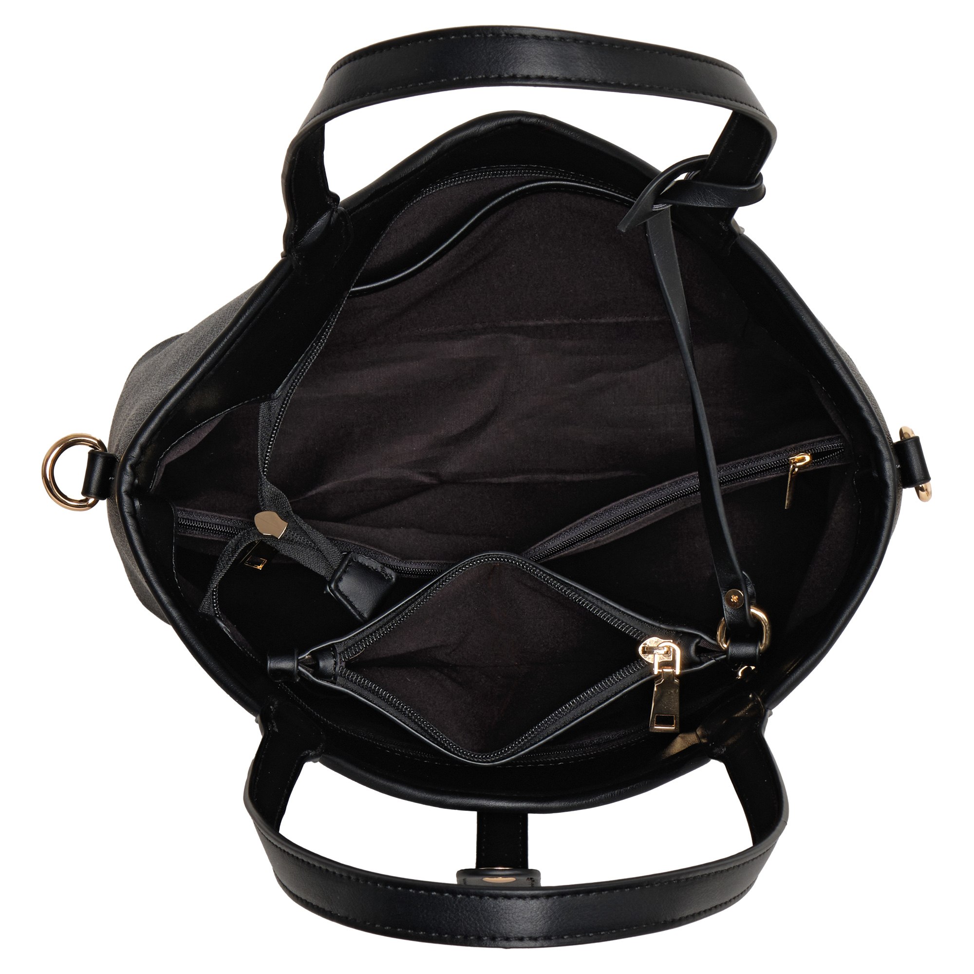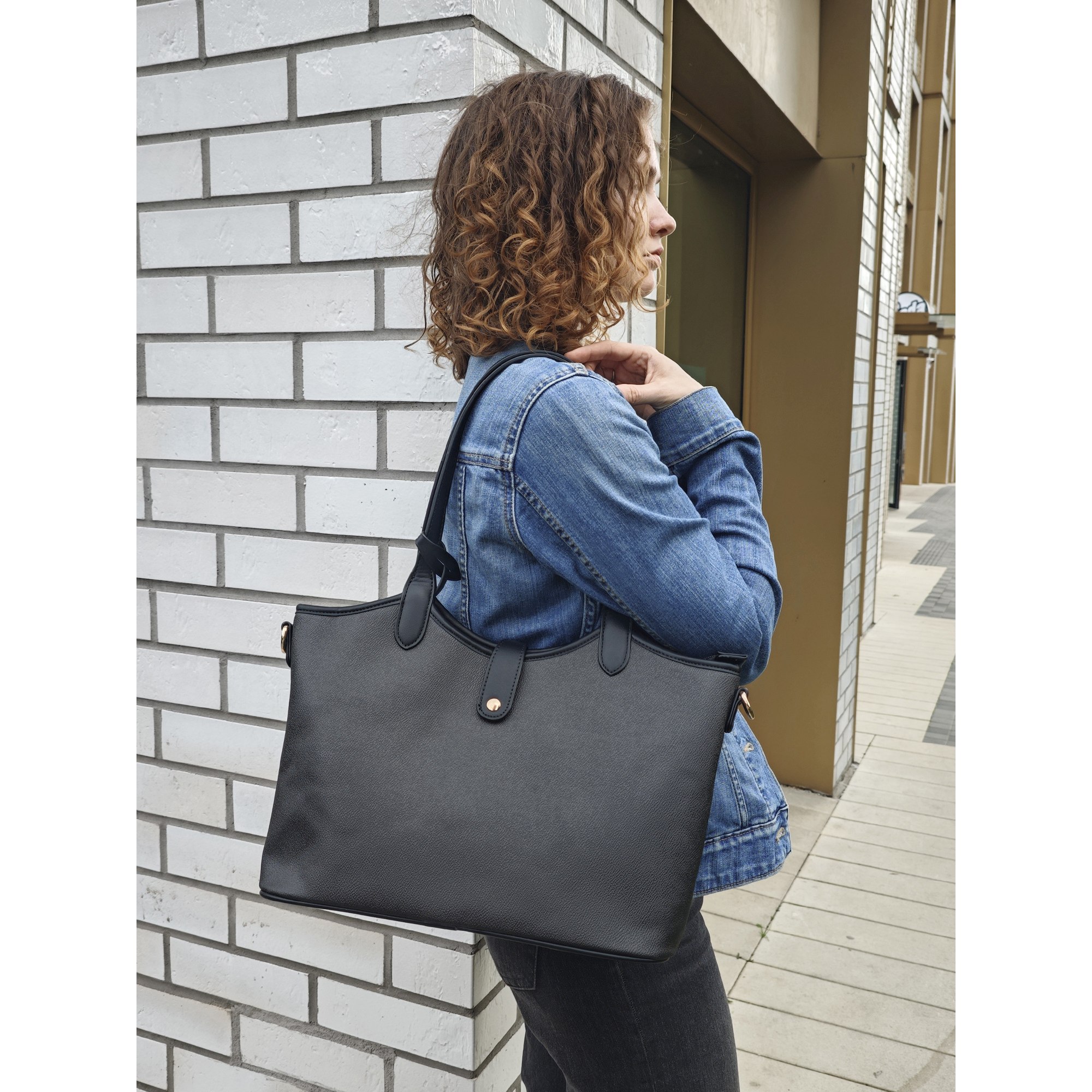 Женская сумка фирмы Pola выполнена из экокожи (канвас). К сумке дополнительно идет косметичка. Эта сумка является идеальным выбором для тех, кто ценит комфорт и практичность. Она станет незаменимым аксессуаром для повседневной жизни, позволит вам всегда иметь при себе все необходимое. Основное отделение закрывается на магнитную кнопку и молнию. Внутри основное отделение разделено карманом на молнии и дополнительно маленький карман на молнии и открытый карман. Вмещает формат А4. Максимальная длина съемного регулируемого ремня составляет 136 см, высота ручки 30 см. Цвет фурнитуры-золото.