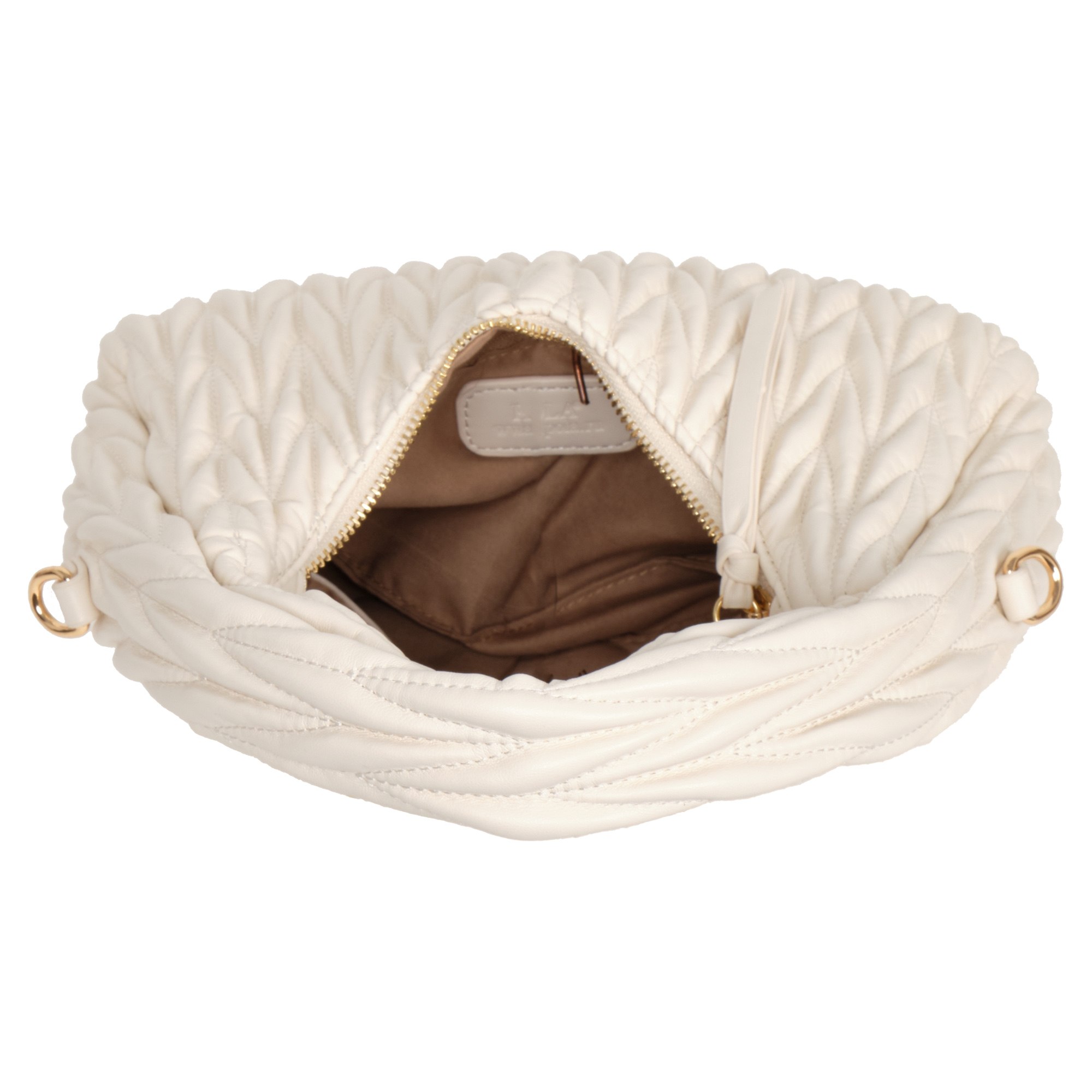 Стеганая сумка фирмы POLA выполнена из экокожи. Это идеальный аксессуар для стильных и практичных людей. Сумка сочетает в себе элегантность и функциональность. Основное отделение закрывается на молнию. Внутри есть один карман на молнии и два открытых кармана. Модель на плечо с регулируемым съемным ремнем-цепочкой обеспечивает комфорт и свободу движений длина 116 см. Высота ручек 17 см. Цвет фурнитуры-золото.