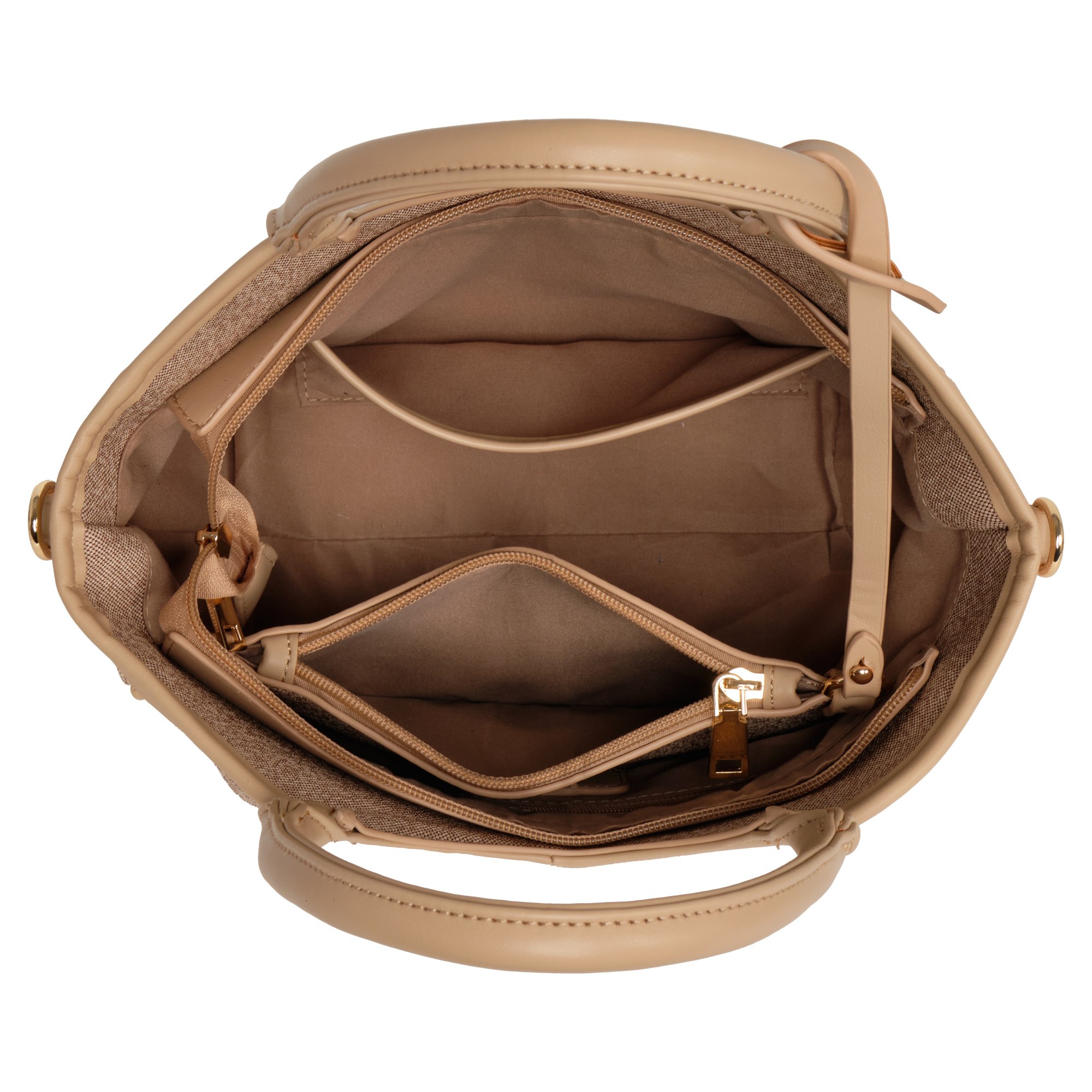 Женская сумка фирмы Pola выполнена из экокожи (канвас). К сумке дополнительно идет косметичка. Сочетание стиля и практичности в повседневной жизни. Эта сумка тоут станет идеальным решением. Основное отделение закрывается на молнию. Внутри один карман на молнии и один открытый кармашек.  Максимальная длина съемного регулируемого ремня составляет 136 см, высота ручки 20 см. Цвет фурнитуры-золото.