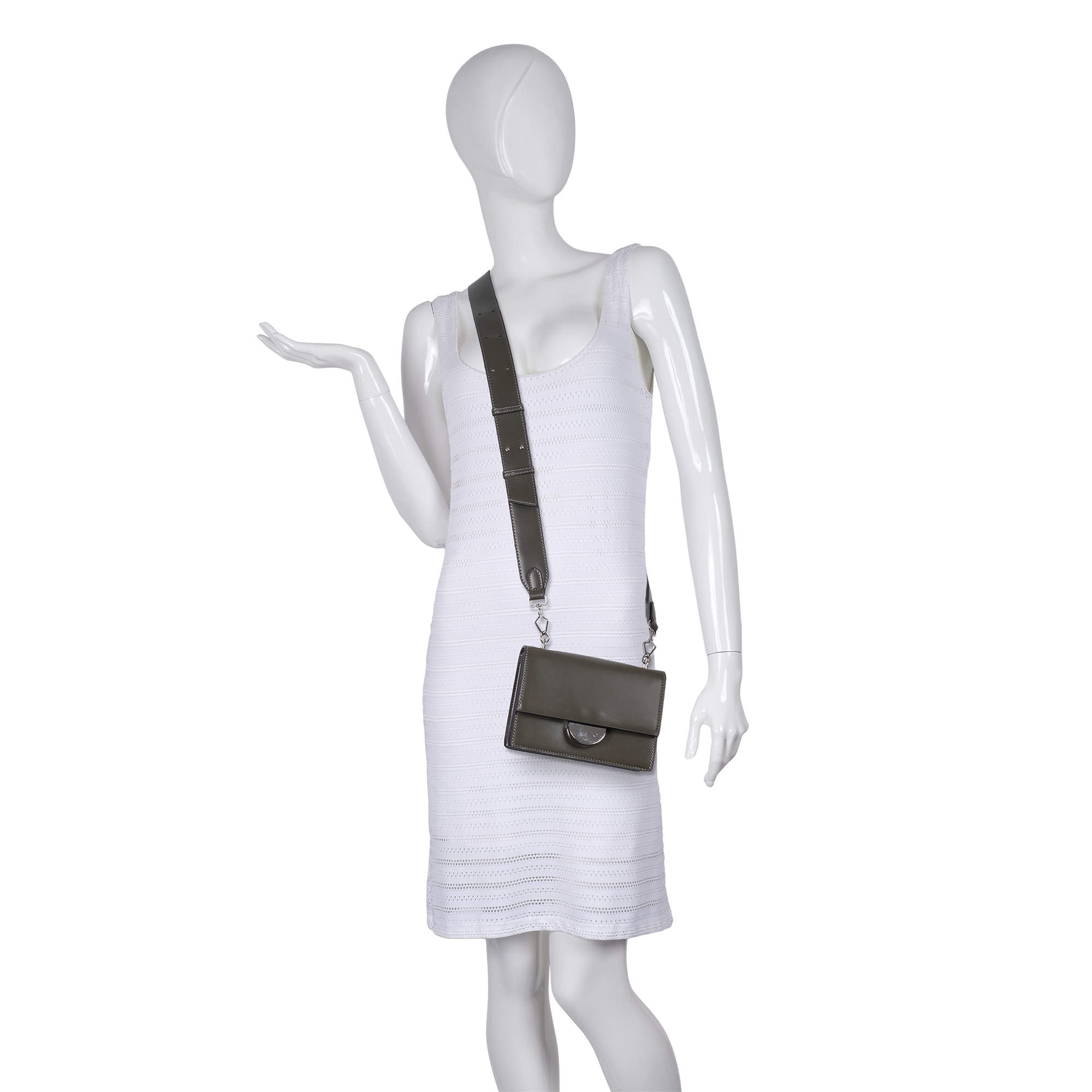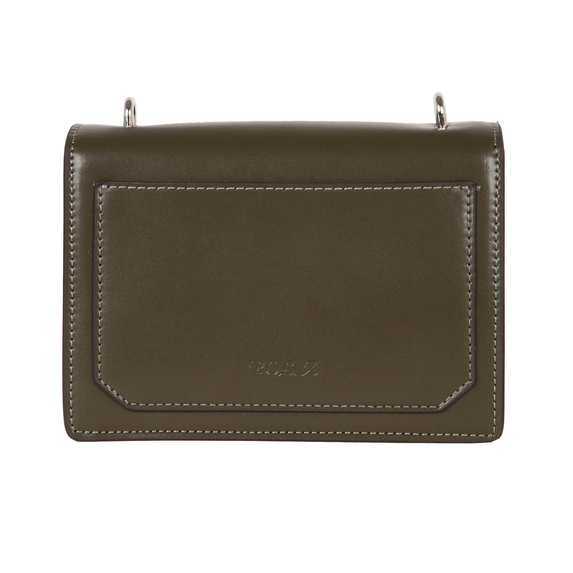 Миниатюрная сумочка фирмы Pola выполнена из экокожи и предназначена для повседневного использования. Основное отделение закрывается клапаном и на молнию. Внутри сумка разделена на два отделения с помощью вставного кармана на молнии, также имеется два небольших кармашка для мелочей. Регулируемый ремень, максимальная длина которого 133 см. Цвет фурнитуры-серебро.