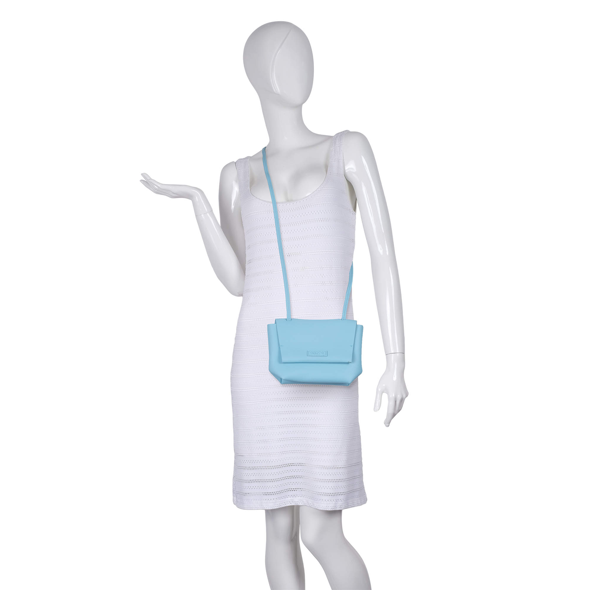 Миниатюрная сумочка фирмы Pola выполнена из экокожи. Аксессуар закрывается магнитной кнопкой. В основном отделении открытый кармашек. Отлично подойдет для повседневного ношения. Высота ручки 53 см. Ручка фиксируется узелками, которые вы можете завязать сами. Также отрегулировать длину ручки. Можете носить сумку как клатч.