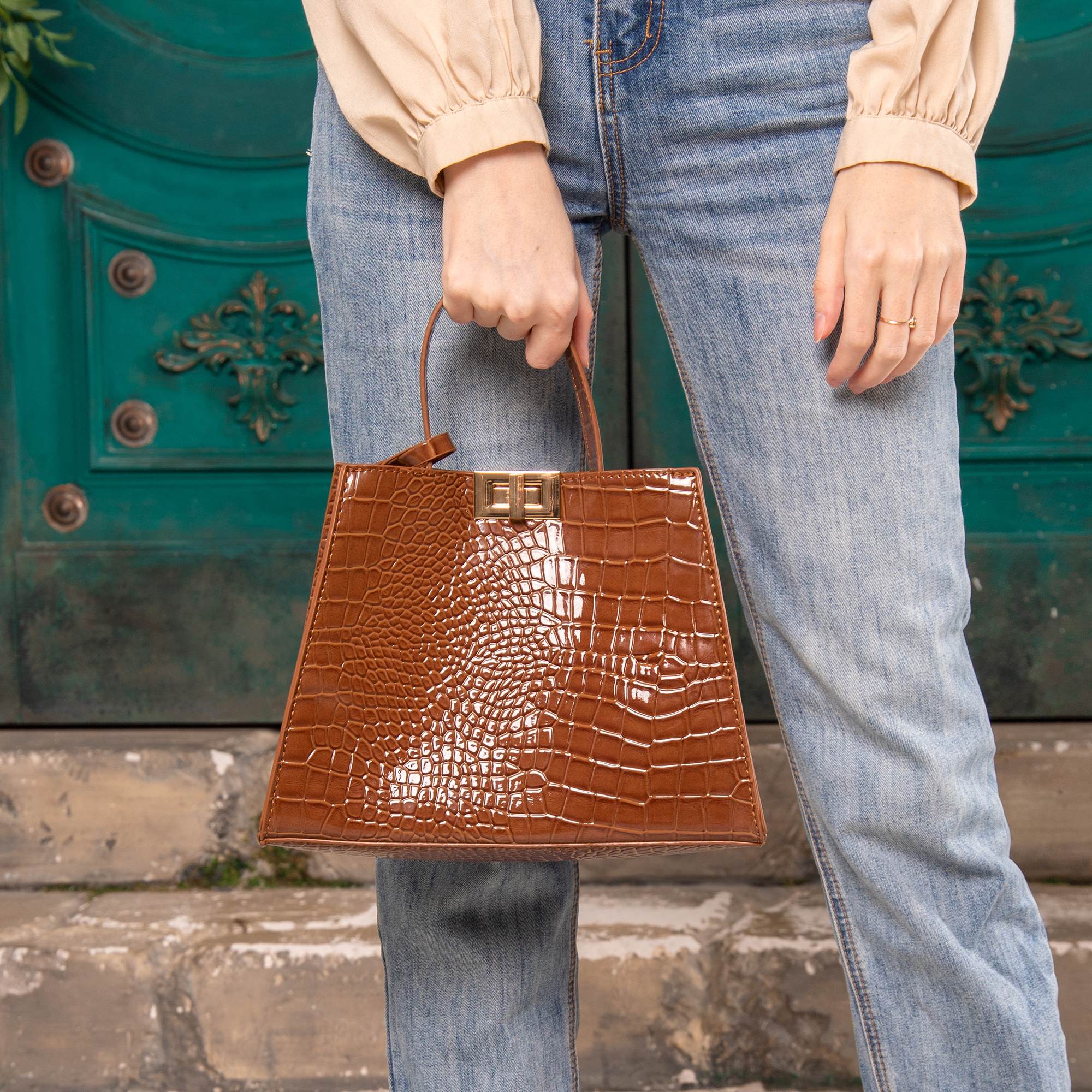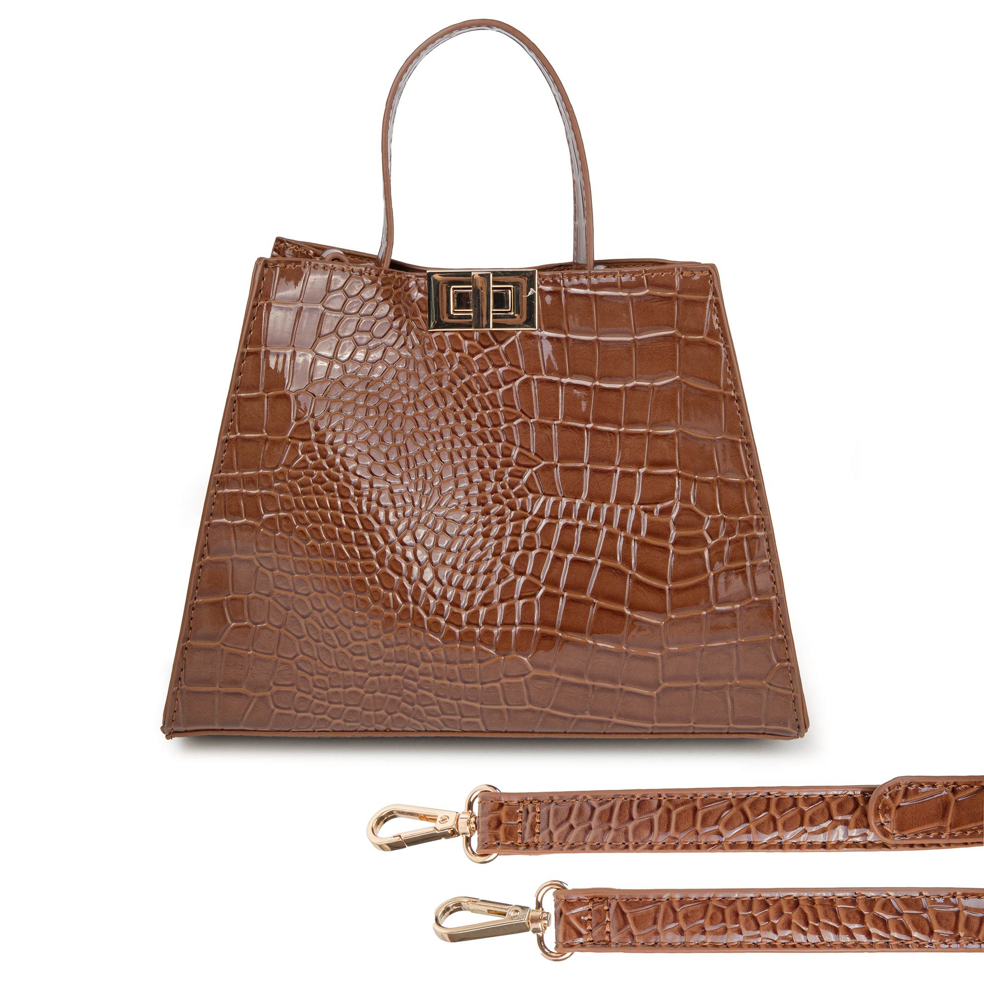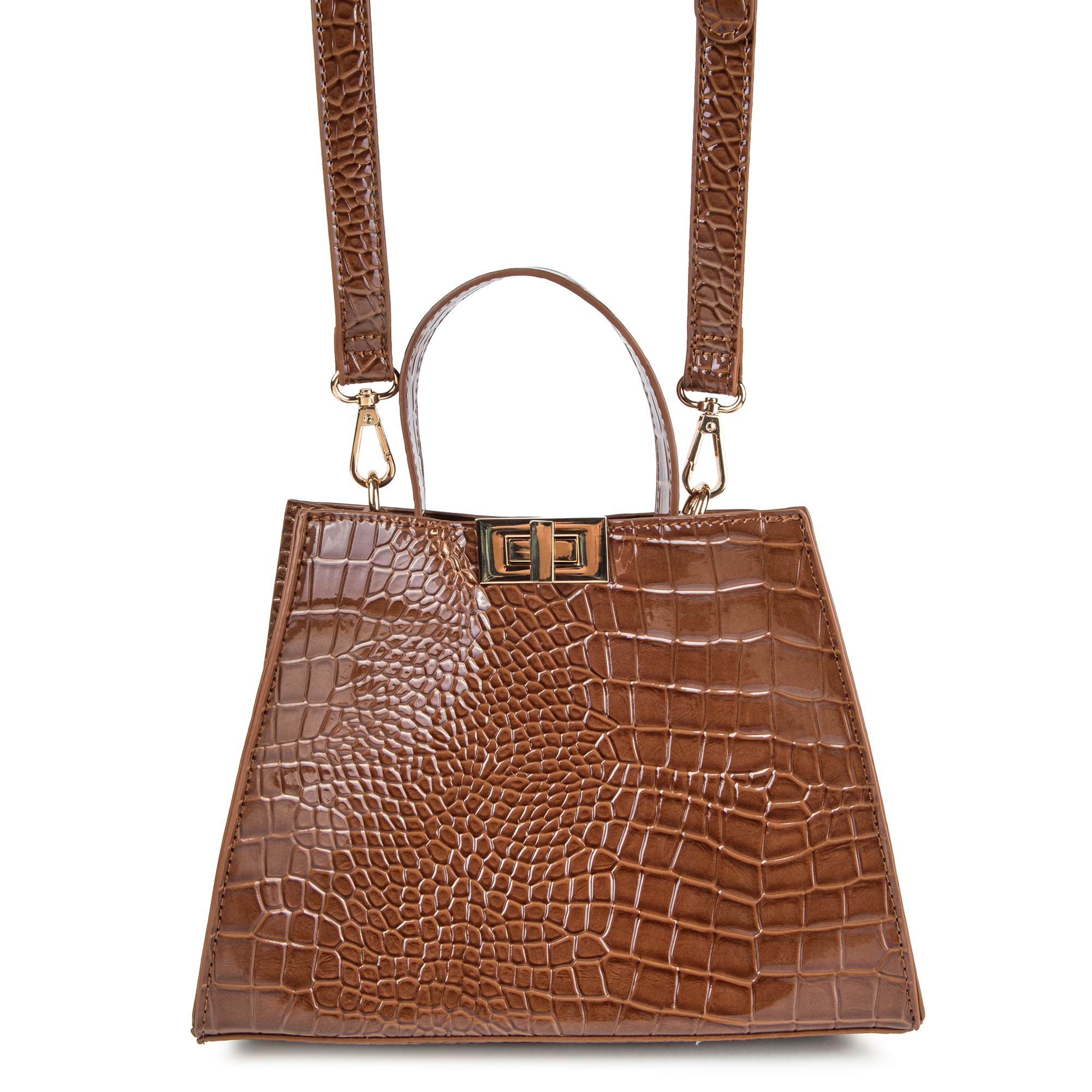 Оригинальная, стильная сумка Pola выполнена из лаковой экокожи с имитацией кожи рептилии и прекрасно подходит для ежедневного использования модницами любого возраста. Данная модель закрывается металлическим поворотный замком. Одно основное отделение,без подкладки, внутри один открытый кармашек. Сумка хорошо держит форму. У сумки есть ручка, высота 10 см и съемный регулируемый ремешок длина которого 125 см. Цвет фурнитуры-золото.