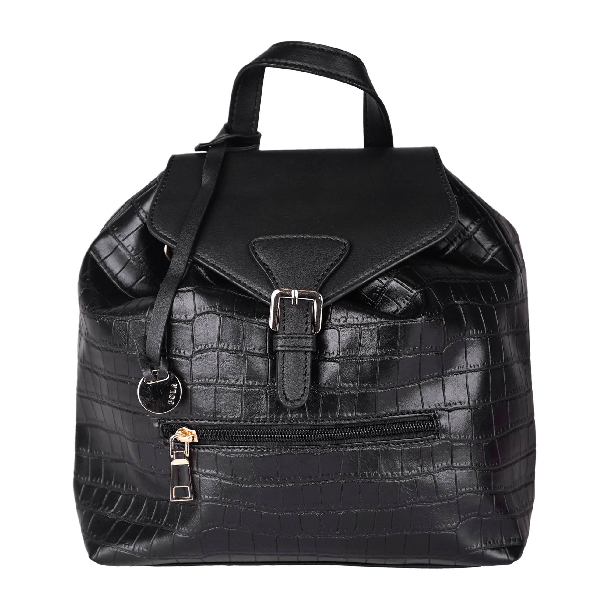 Стильный женский рюкзак фирмы Pola выполнен из экокожи и имитацией кожи рептилии, прекрасно подходит для ежедневного использования. Основное отделение затягивается шнурком, а сверху закрывается клапаном на магнитной кнопке. Внутри рюкзака один карман на молнии и один открытый кармашек. Спереди накладной карман на молнии. Высота ручки 8 см. Максимальная длина лямок 90 см. Цвет фурнитуры-золото.