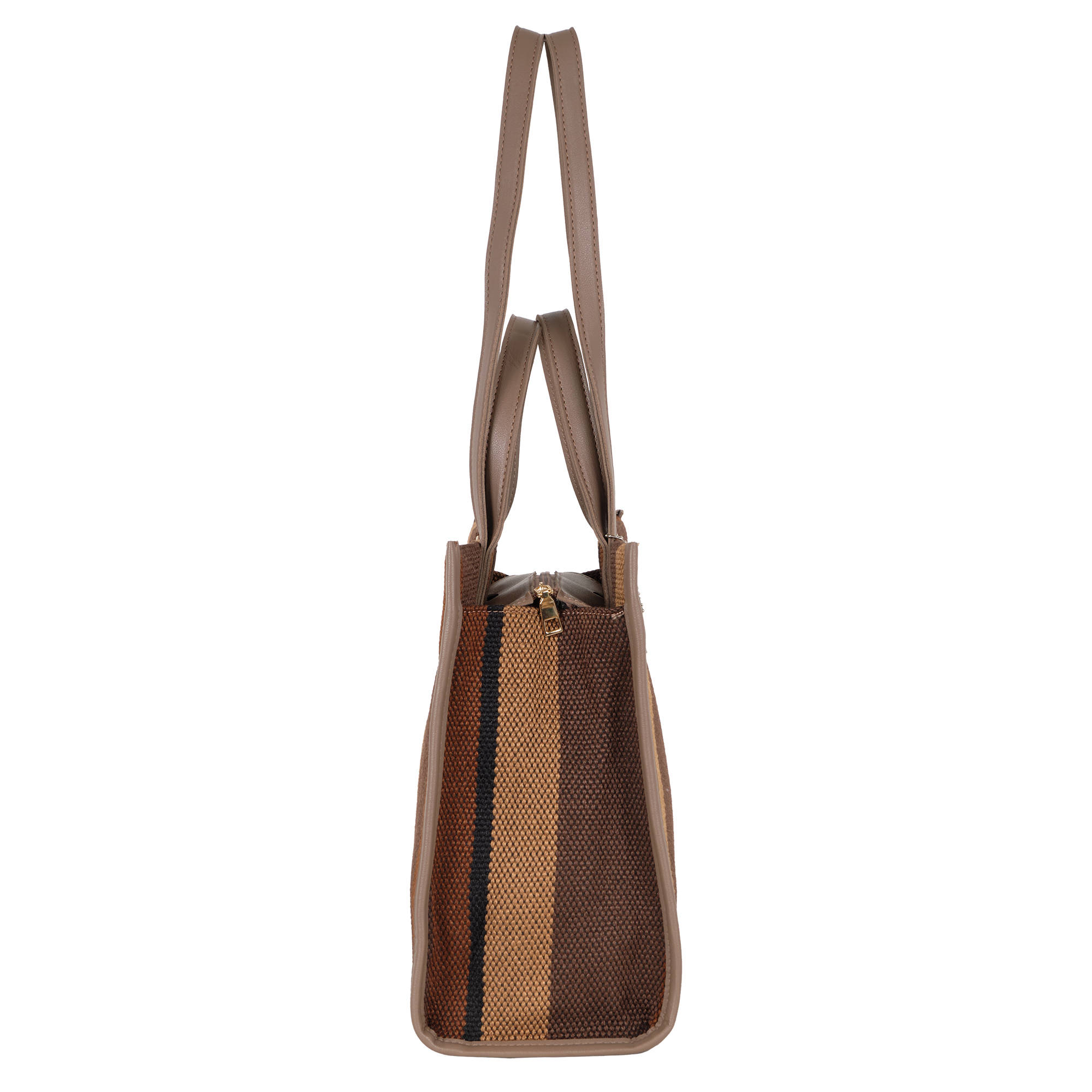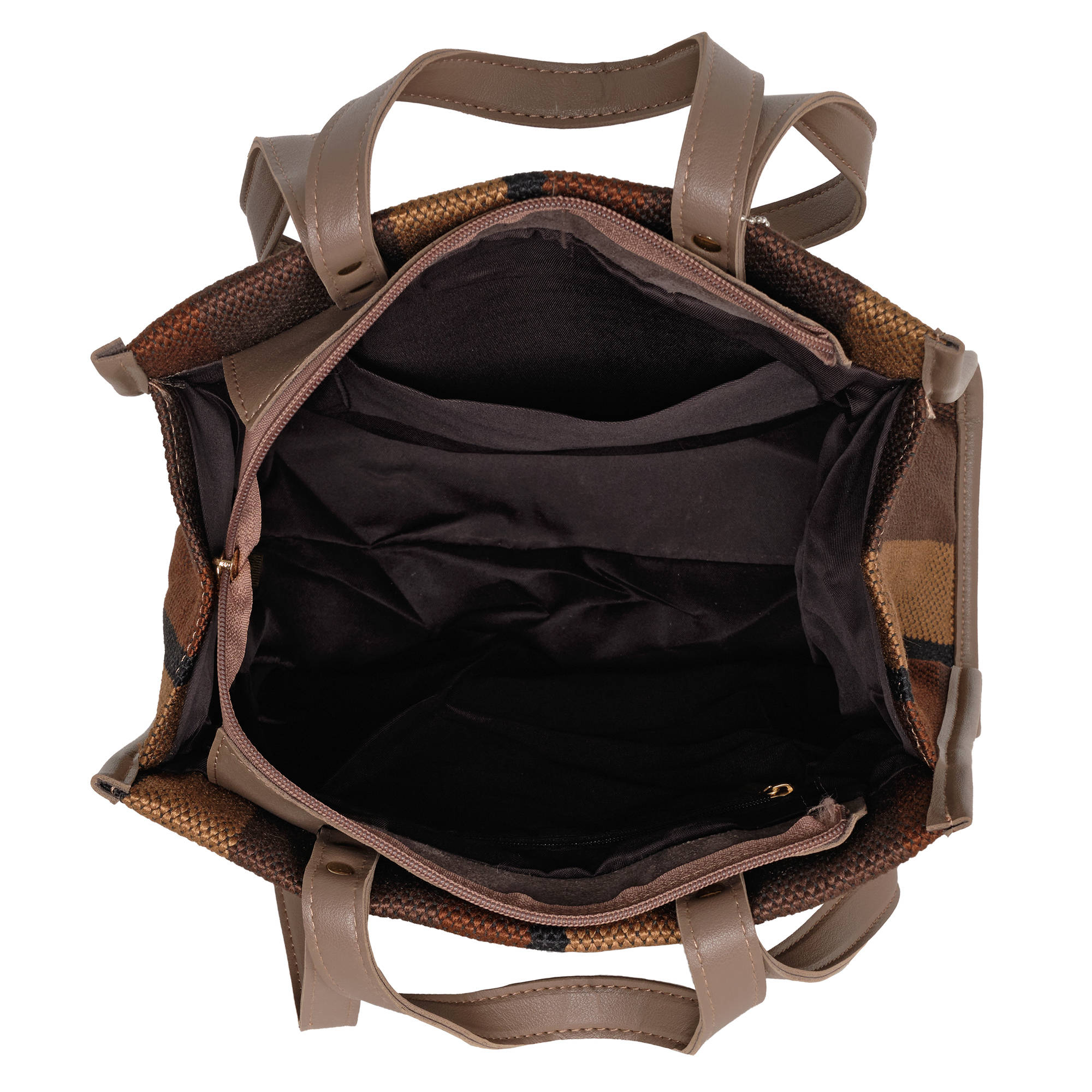 Современная оригинальная сумка фирмы Pola несомненно дополнит ваш образ. Выполнена из текстильного материала с вставками из искусственной кожи, внутри текстильная подкладка. Модель ярких цветов, жёсткой формы с широким дном, имеет четыре ручки для переноски. Высота ручек 18 см и 34 см. Сумка с одним отделением на молнии, внутри дополнительные кармашки один на молнии и один открытый. Цвет фурнитуры-золото.