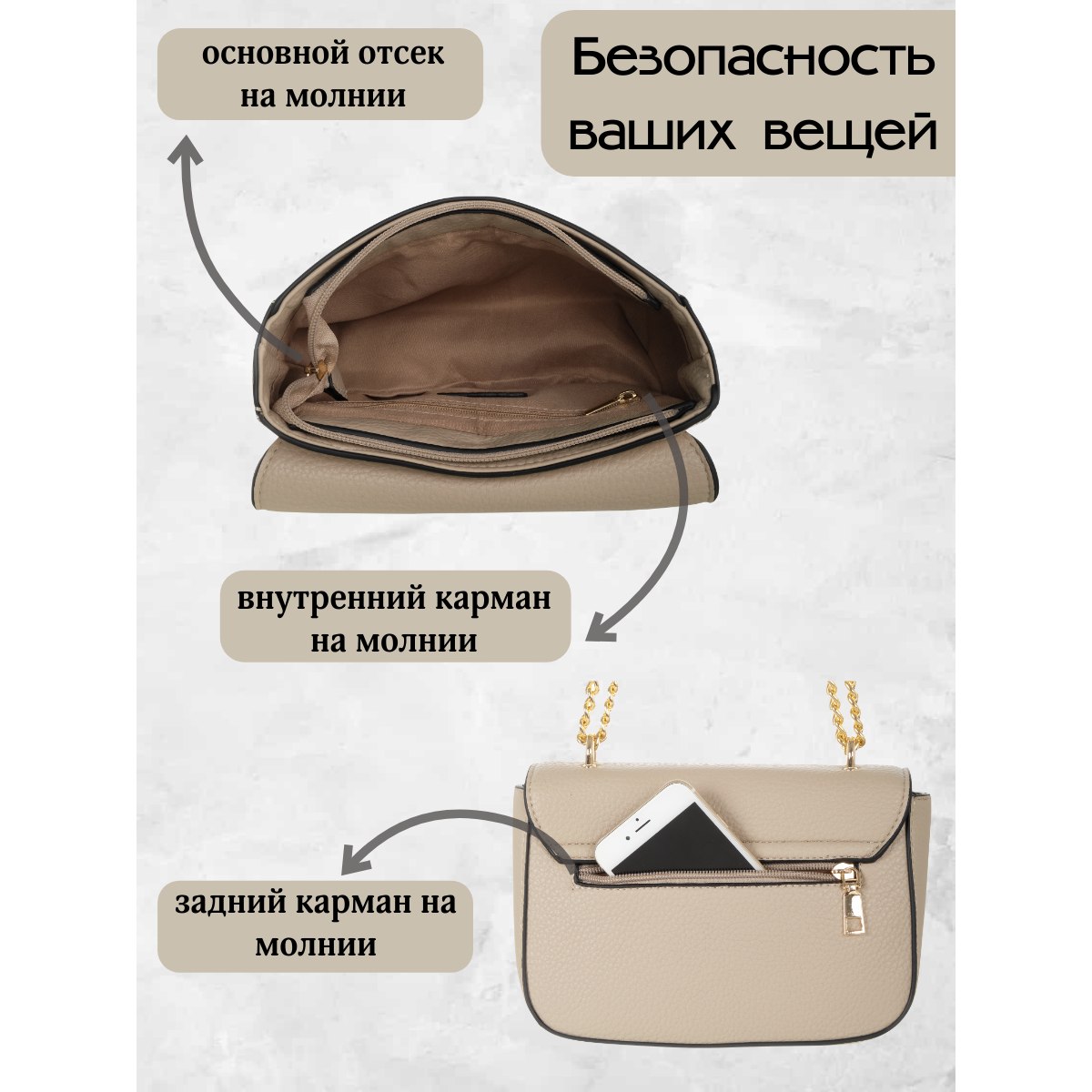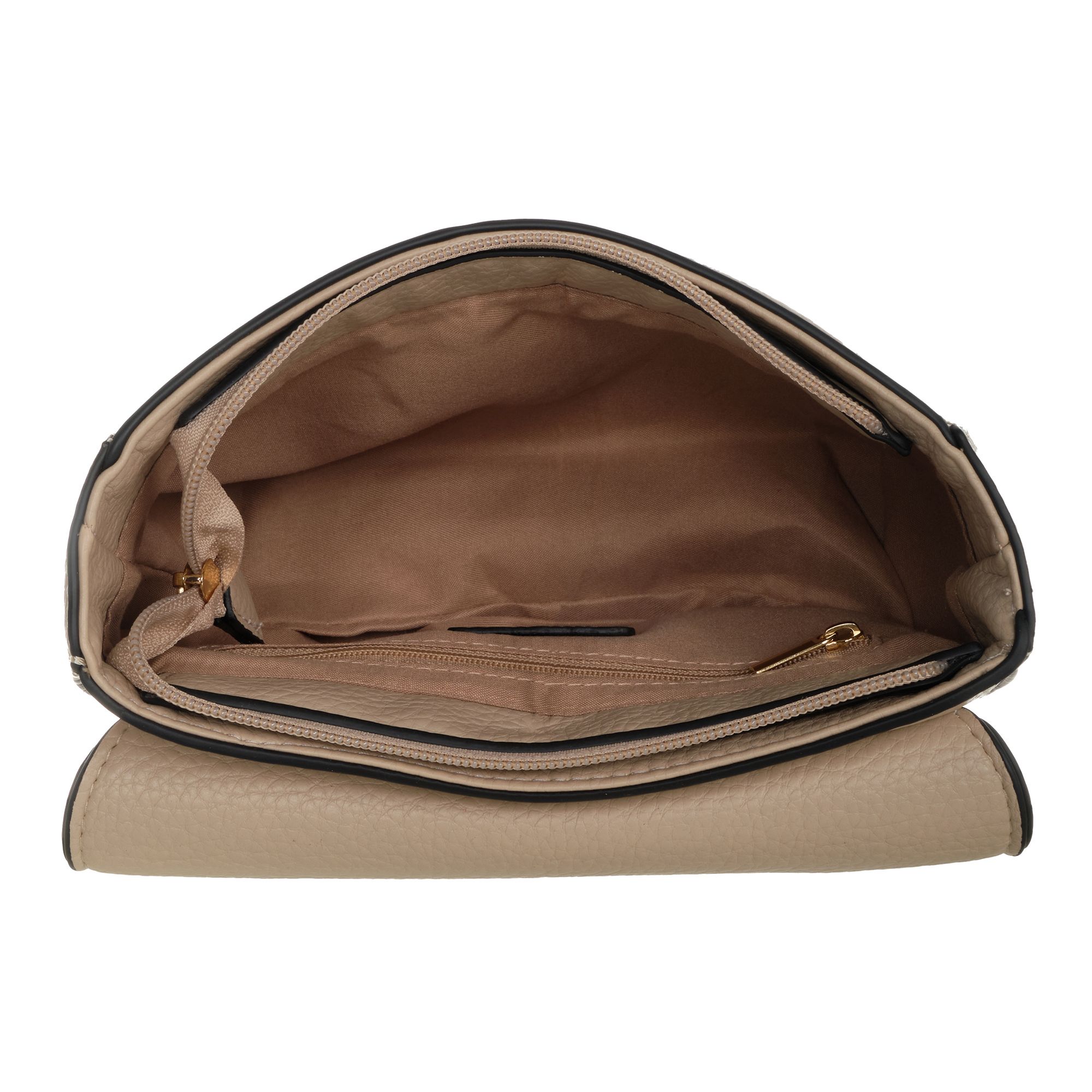 Стильная сумка фирмы Pola выполнена из экокожи. Основное отделение на молнии, сверху закрывается на металлическую магнитную кнопку. Внутри один карман на молнии. Сзади сумки карман на молнии. Высота ремня составляет 60 см. Данная модель отлично подойдет для повседневного образа. Цвет фурнитуры-золото.