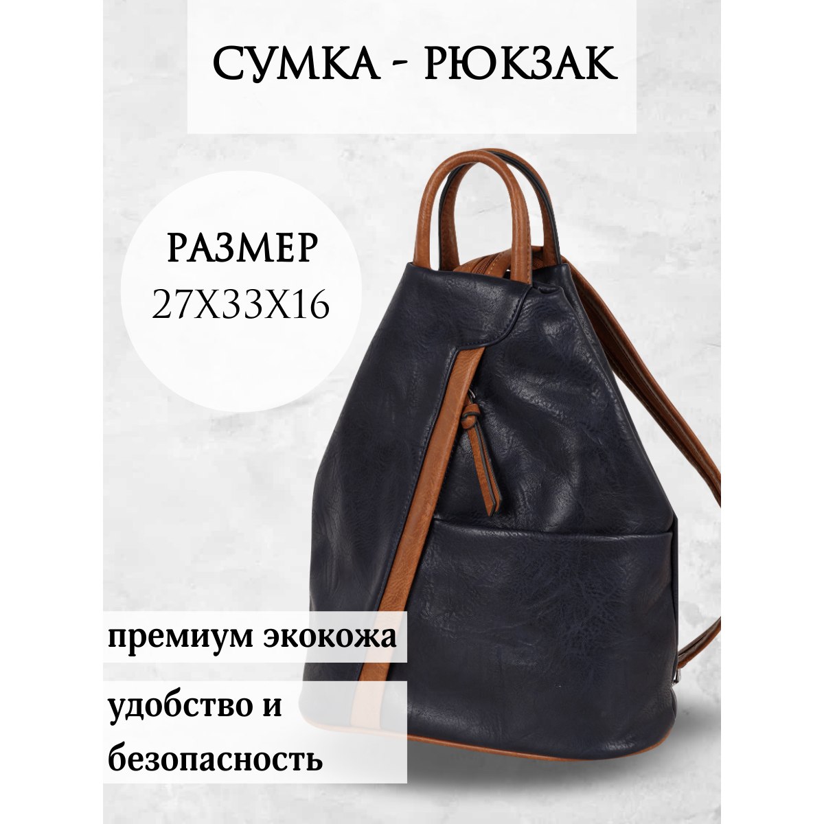 Женская сумка-рюкзак фирмы Pola выполнен из экокожи. Отлично подойдет для повседневного использования, которая легко превращается в рюкзак. У сумки одно вместительное отделение на молнии. Внутри тканевая подкладка и карман на молнии и открытый карман для мелочей. Снаружи два кармана один на молнии для мелочей и скрытый карман на кнопке. Сзади также потайной кармашек. Носить такую сумку-рюкзак можно как сумку, как рюкзак на одну лямку и на две лямки максимальная длина 90 см. Высота ручки 8 см. Цвет фурнитуры серебро.