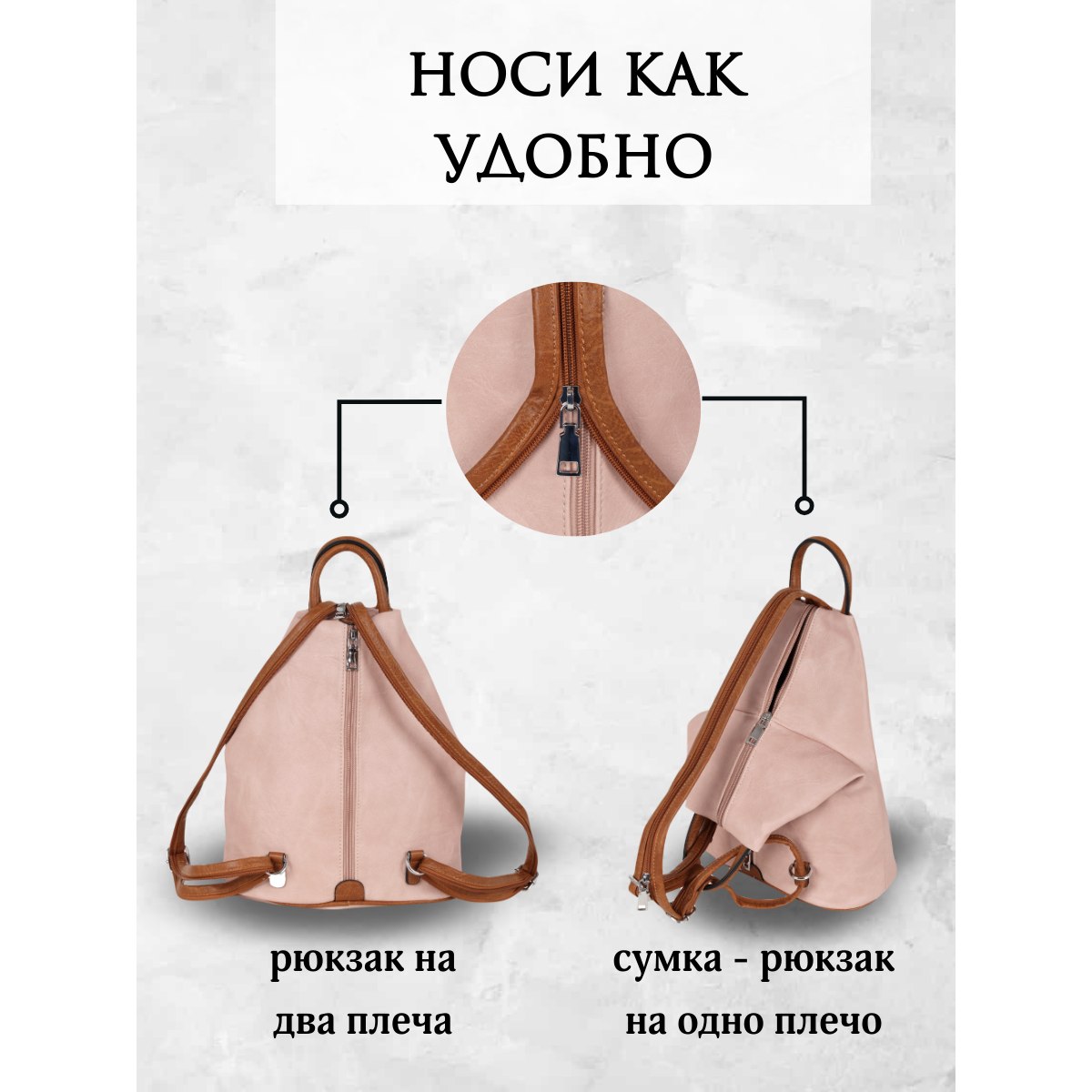 Женская сумка-рюкзак фирмы Pola выполнен из экокожи. Отлично подойдет для повседневного использования, которая легко превращается в рюкзак. У сумки одно вместительное отделение на молнии. Внутри тканевая подкладка и карман на молнии и открытый карман для мелочей. Снаружи два кармана один на молнии для мелочей и скрытый карман на кнопке. Сзади также потайной кармашек. Носить такую сумку-рюкзак можно как сумку, как рюкзак на одну лямку и на две лямки максимальная длина 90 см. Высота ручки 8 см. Цвет фурнитуры серебро.