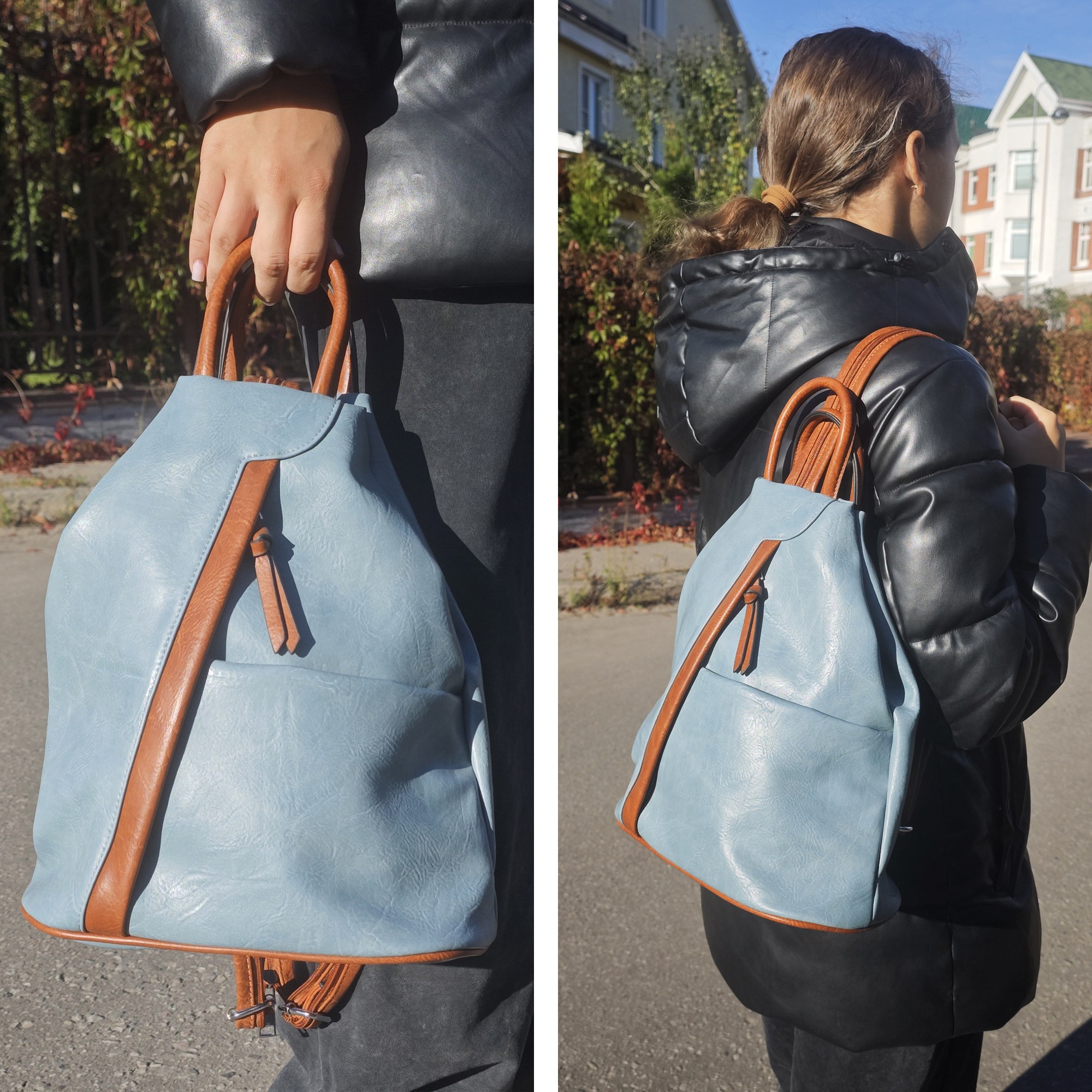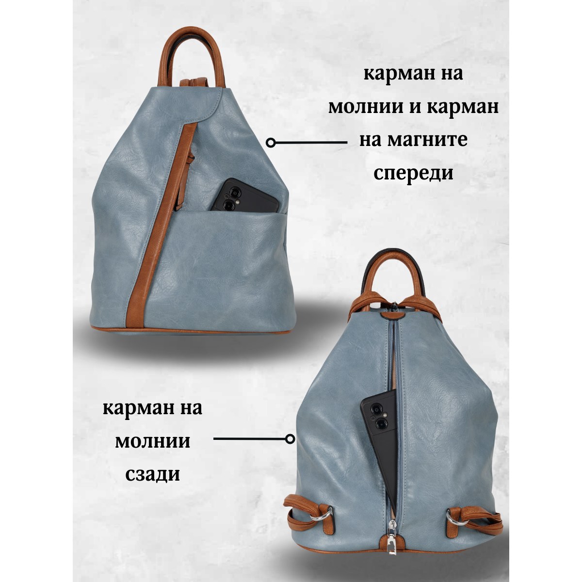 Женская сумка-рюкзак фирмы Pola выполнен из экокожи. Отлично подойдет для повседневного использования, которая легко превращается в рюкзак. У сумки одно вместительное отделение на молнии. Внутри тканевая подкладка и карман на молнии и открытый карман для мелочей. Снаружи два кармана один на молнии для мелочей и скрытый карман на кнопке. Сзади также потайной кармашек. Носить такую сумку-рюкзак можно как сумку, как рюкзак на одну лямку и на две лямки максимальная длина 90 см. Высота ручки 8 см. Цвет фурнитуры серебро.