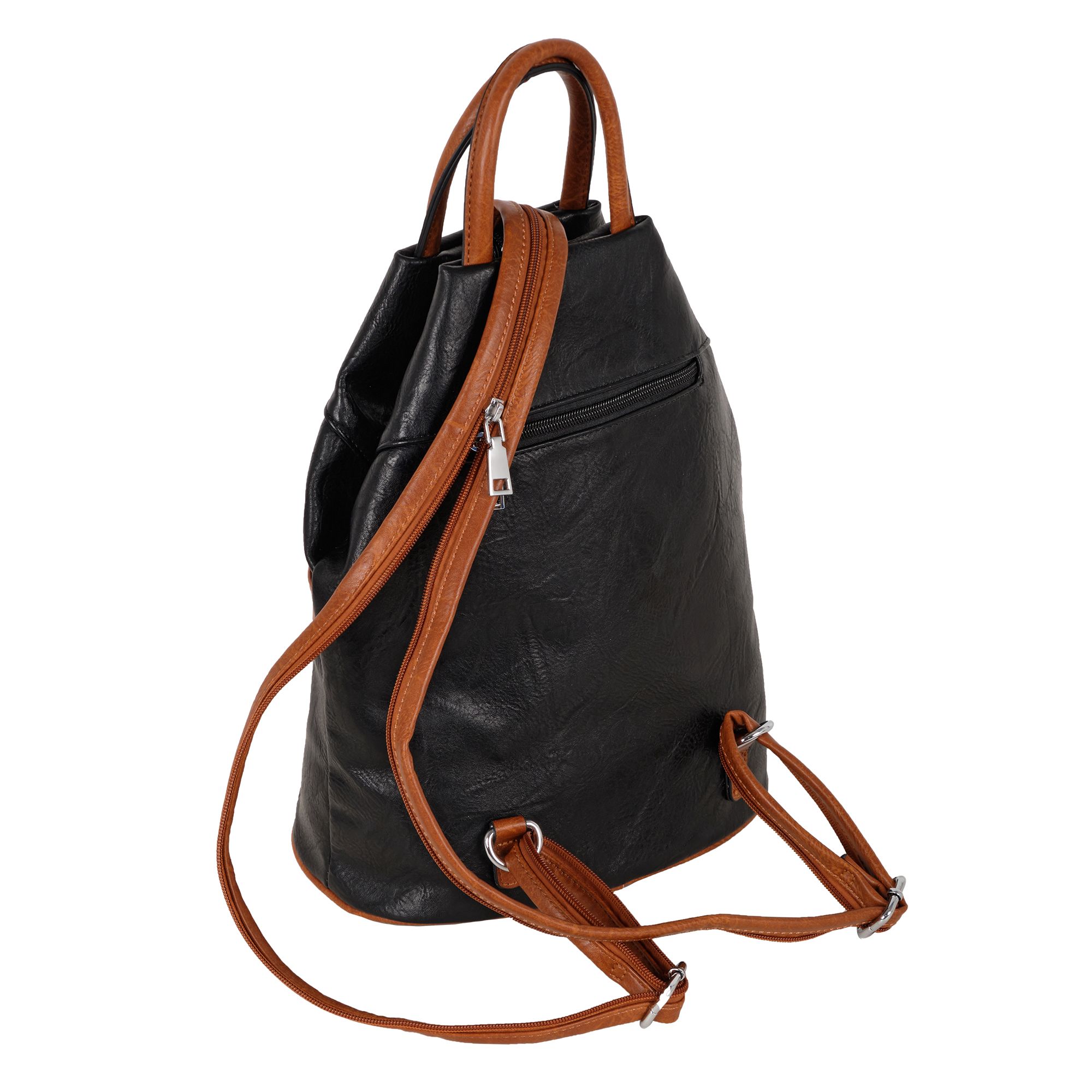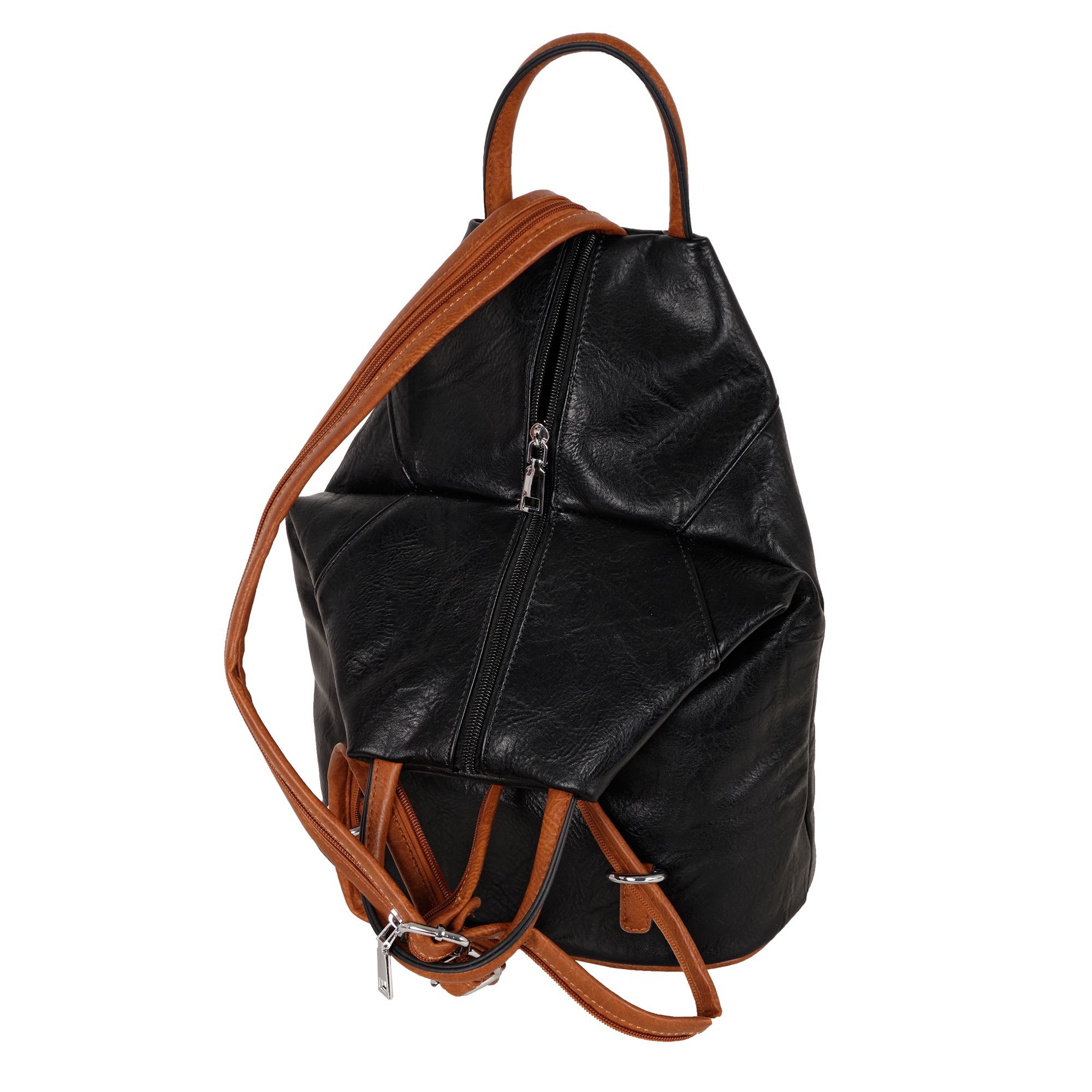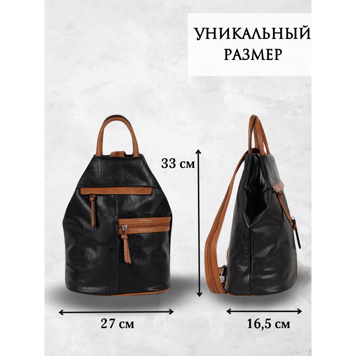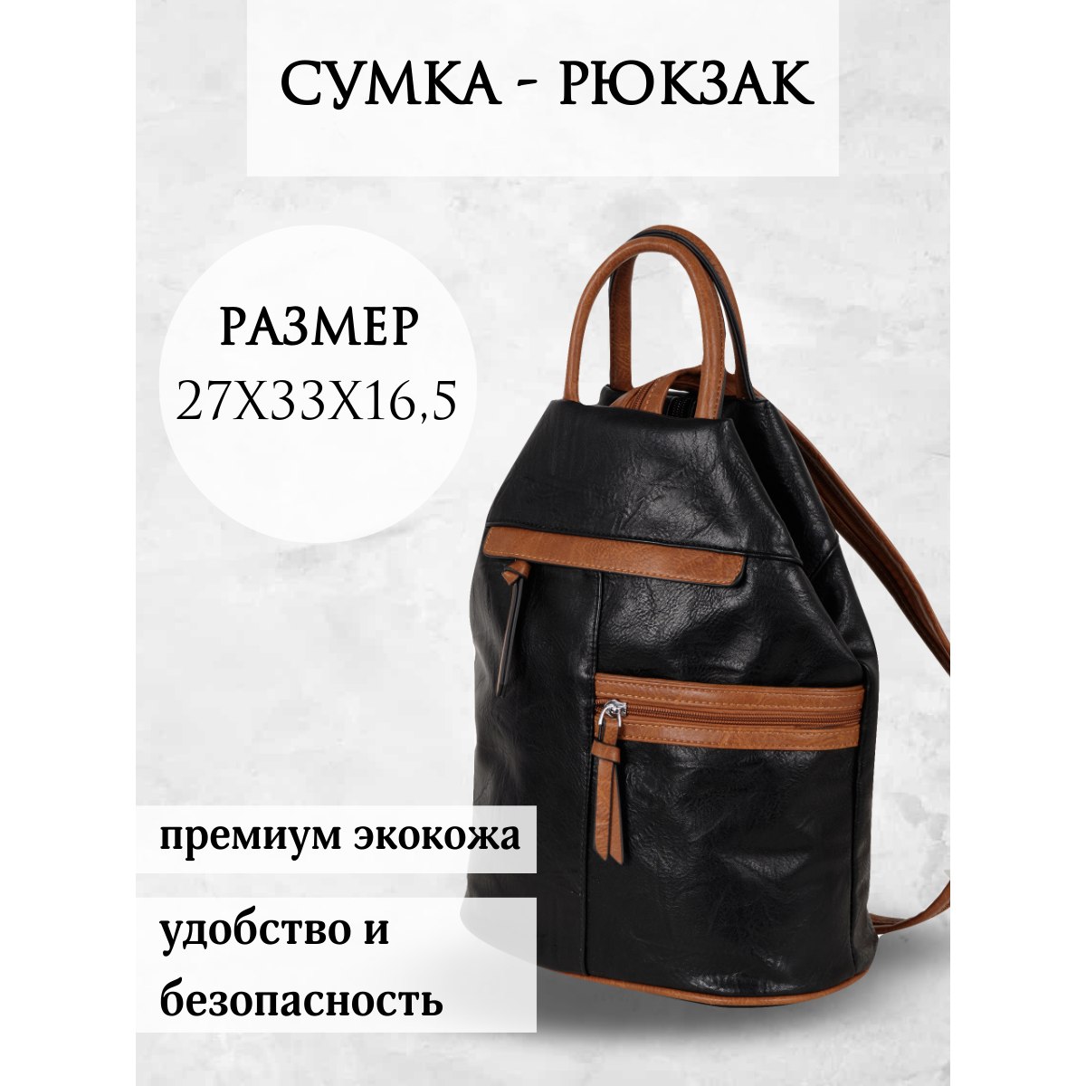 Женская сумка-рюкзак фирмы Pola выполнен из экокожи. Отлично подойдет для повседневного использования, которая легко превращается в рюкзак. У сумки одно вместительное отделение на молнии. Внутри тканевая подкладка и карман на молнии и открытый карман для мелочей. Снаружи два кармана на молнии для мелочей и один открытый карман на магнитной кнопке. Сзади карман на молнии. Носить такую сумку-рюкзак можно как сумку, как рюкзак на одну лямку и на две лямки максимальная длина 93 см. Высота ручки 9 см. Цвет фурнитуры серебро