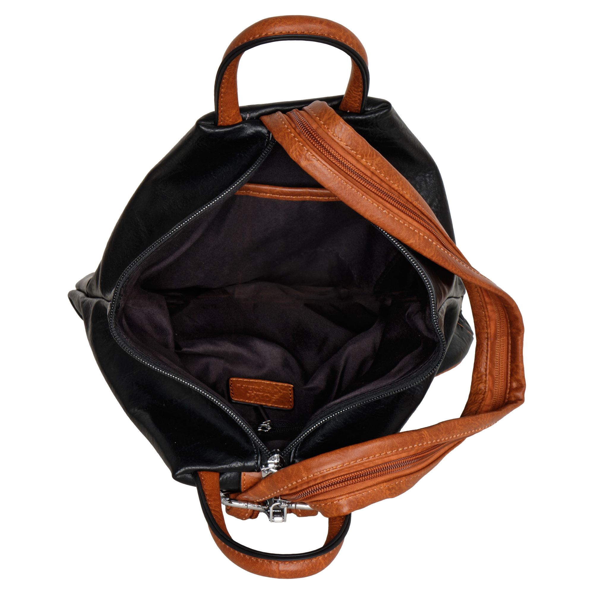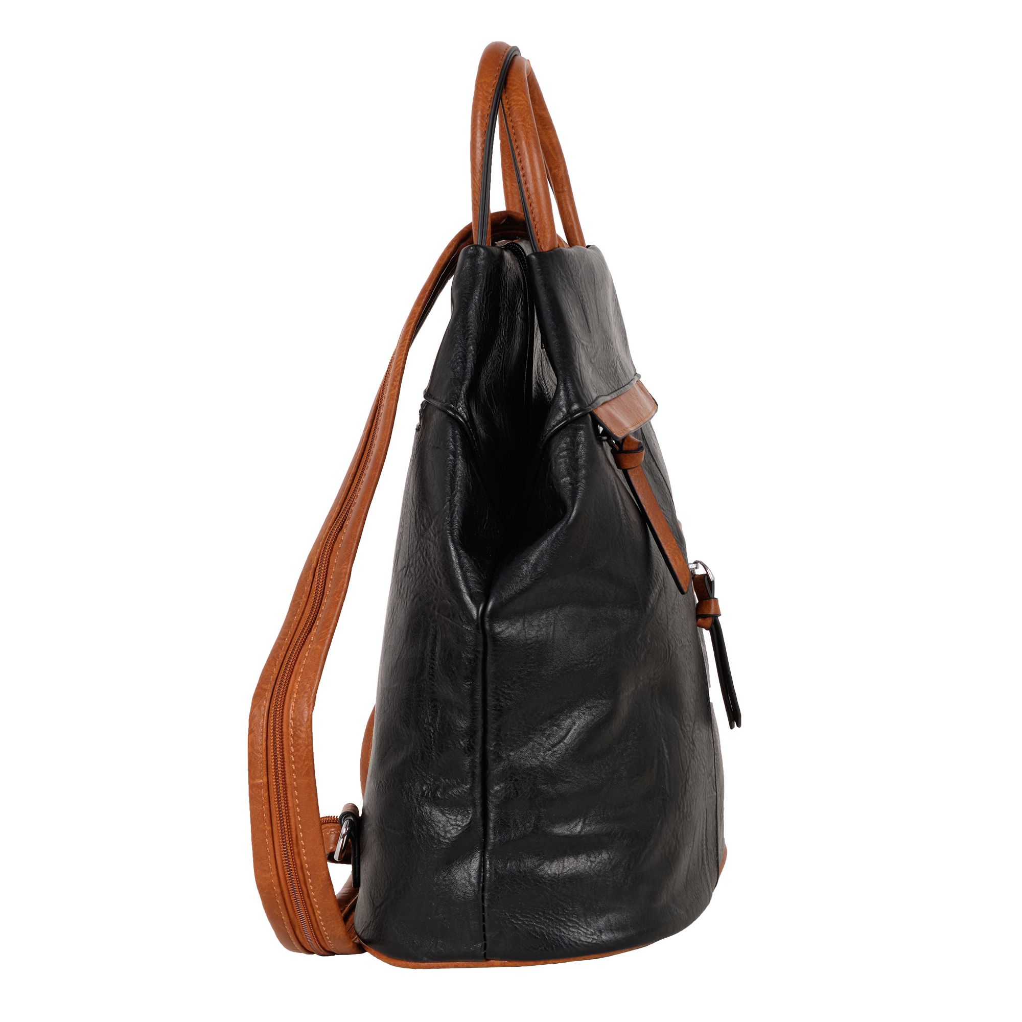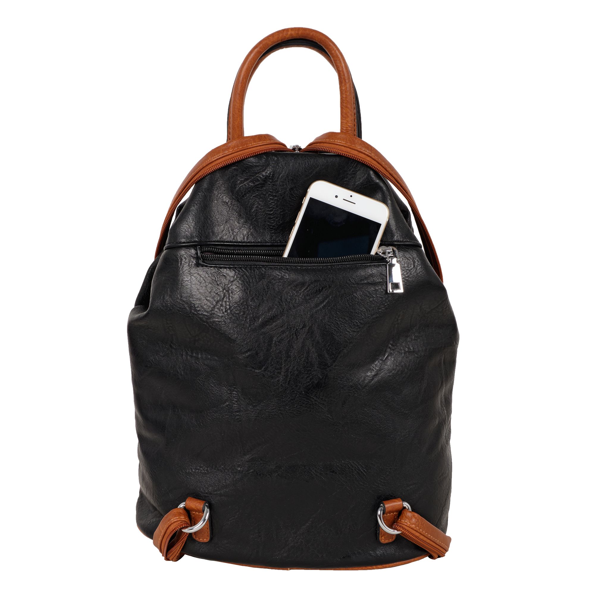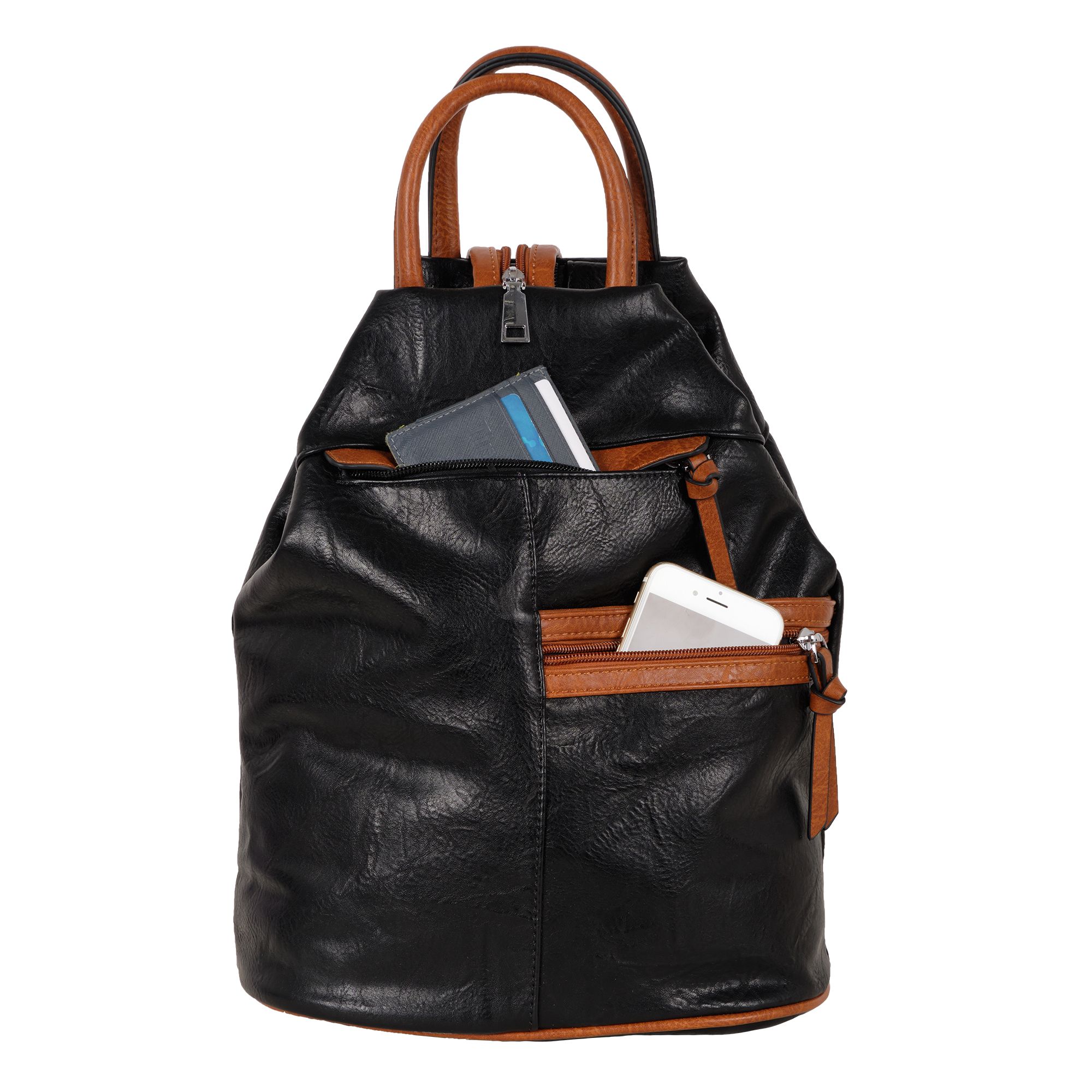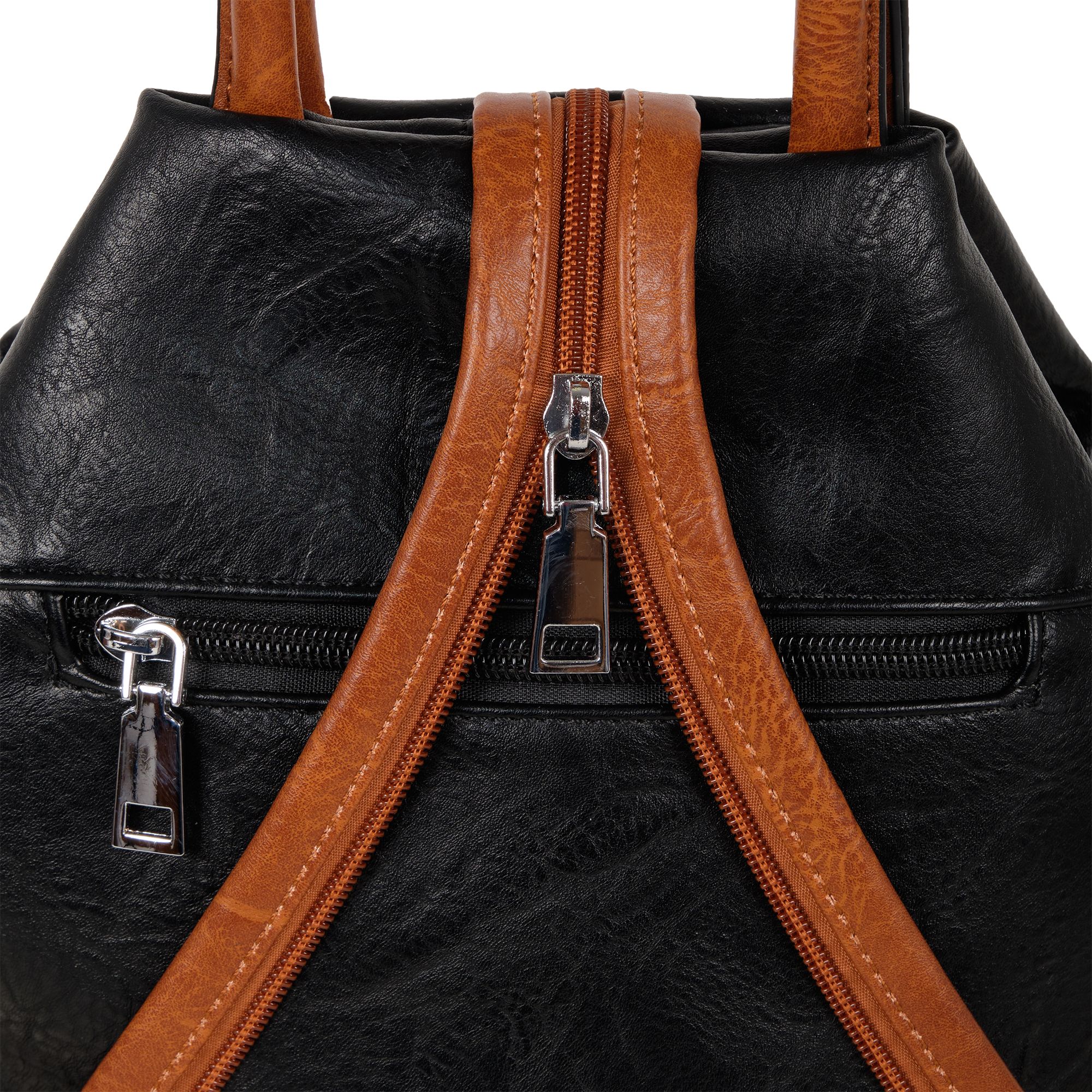 Женская сумка-рюкзак фирмы Pola выполнен из экокожи. Отлично подойдет для повседневного использования, которая легко превращается в рюкзак. У сумки одно вместительное отделение на молнии. Внутри тканевая подкладка и карман на молнии и открытый карман для мелочей. Снаружи два кармана на молнии для мелочей и один открытый карман на магнитной кнопке. Сзади карман на молнии. Носить такую сумку-рюкзак можно как сумку, как рюкзак на одну лямку и на две лямки максимальная длина 93 см. Высота ручки 9 см. Цвет фурнитуры серебро