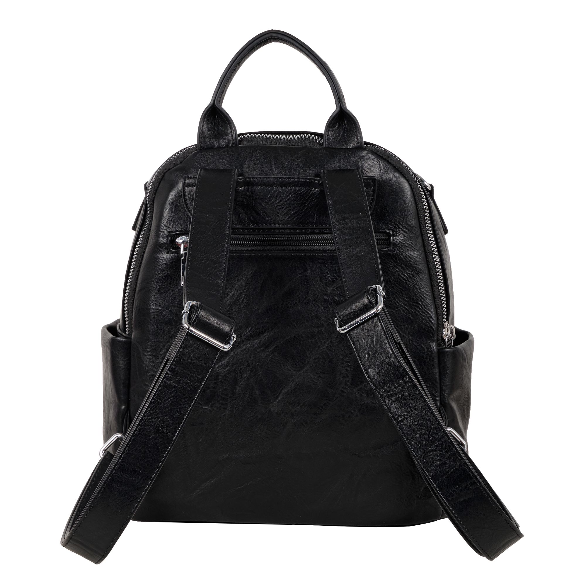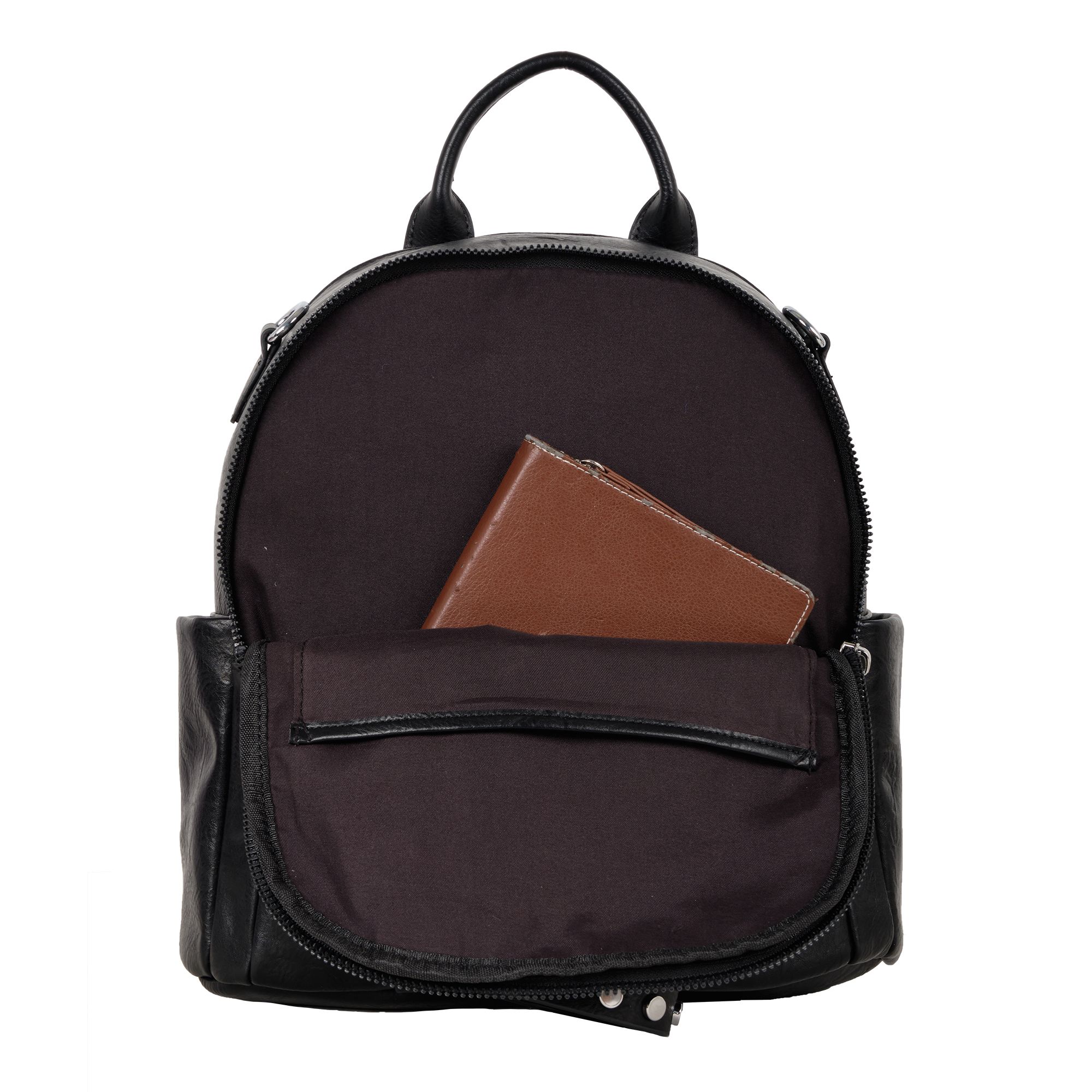 Женская сумка-рюкзак фирмы Pola выполнен из экокожи. Отлично подойдет для повседневного использования. У сумки- рюкзака два независимых отделения застегиваются на металлическую молнию. Центральный отсек для персональных вещей в ней также можно разместить документы формата А4, есть маленький карман на молнии для небольших предметов. Большой передний карман внутри с небольшим открытым карманом для мелочей. Спереди есть вертикальный карман на молнии. Сзади также есть небольшой потайной кармашек. Два боковых кармана. У сумки-рюкзака есть съёмный ремень максимальная длина 83 см за счет него рюкзак можно носить на плече как сумку. Максимальная длина лямок рюкзака 90см. Длина ручки 9 см. Цвет фурнитуры серебро.