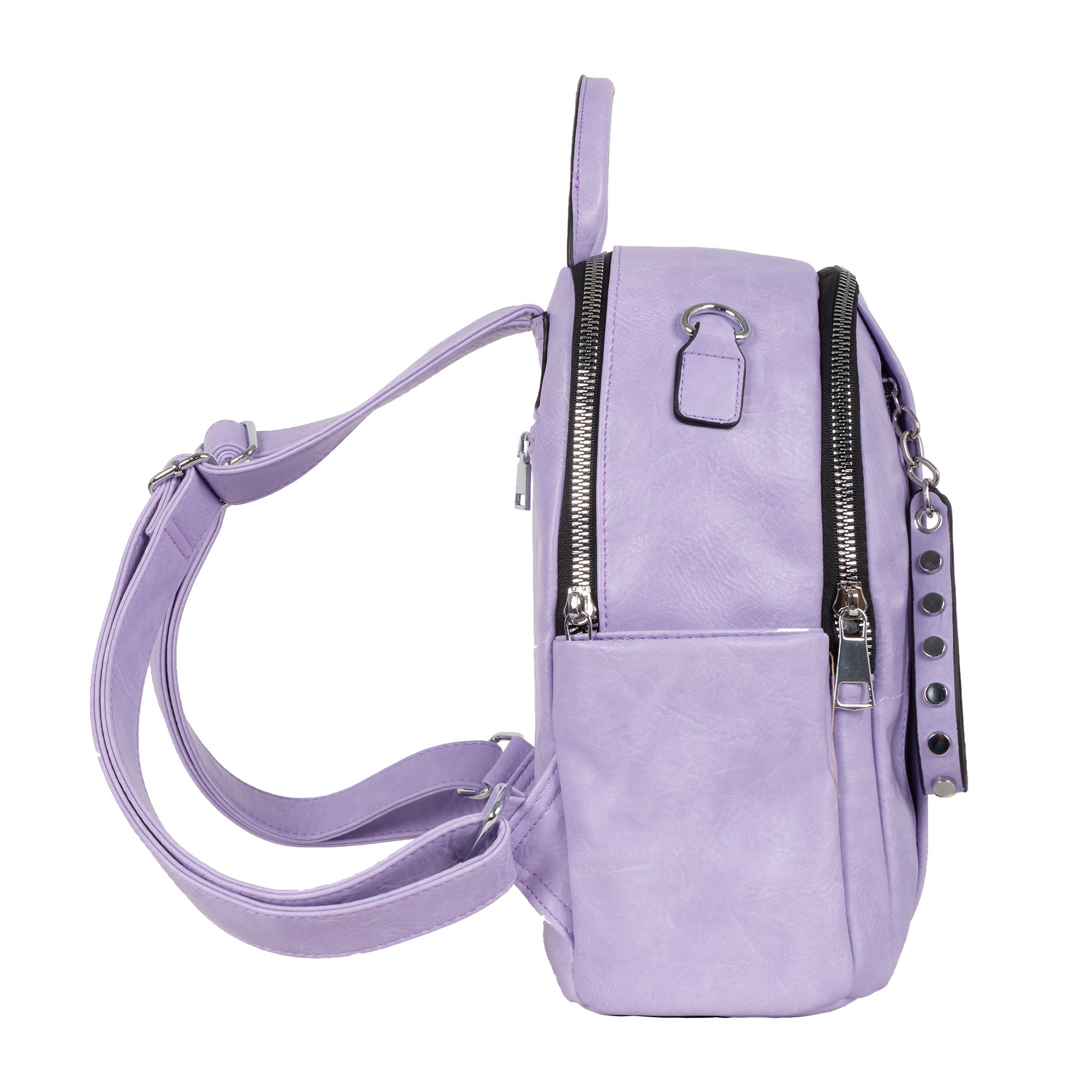 Женская сумка-рюкзак фирмы Pola выполнен из экокожи. Отлично подойдет для повседневного использования. У сумки- рюкзака два независимых отделения застегиваются на металлическую молнию. Центральный отсек для персональных вещей в ней также можно разместить документы формата А4, есть маленький карман на молнии для небольших предметов. Большой передний карман внутри с небольшим открытым карманом для мелочей. Спереди есть вертикальный  карман на молнии. Сзади также есть небольшой потайной кармашек. Два боковых кармана. У сумки-рюкзака есть съёмный ремень максимальная длина 83 см за счет него рюкзак можно носить на плече как сумку. Максимальная длина лямок рюкзака 90см. Длина ручки 9 см. Цвет фурнитуры серебро.