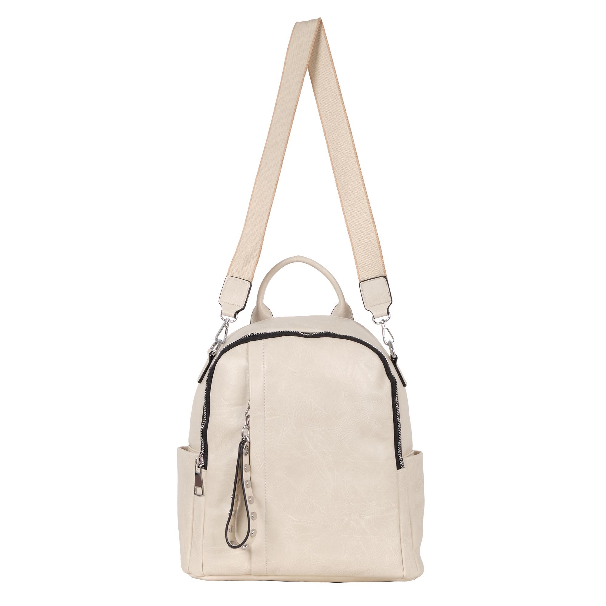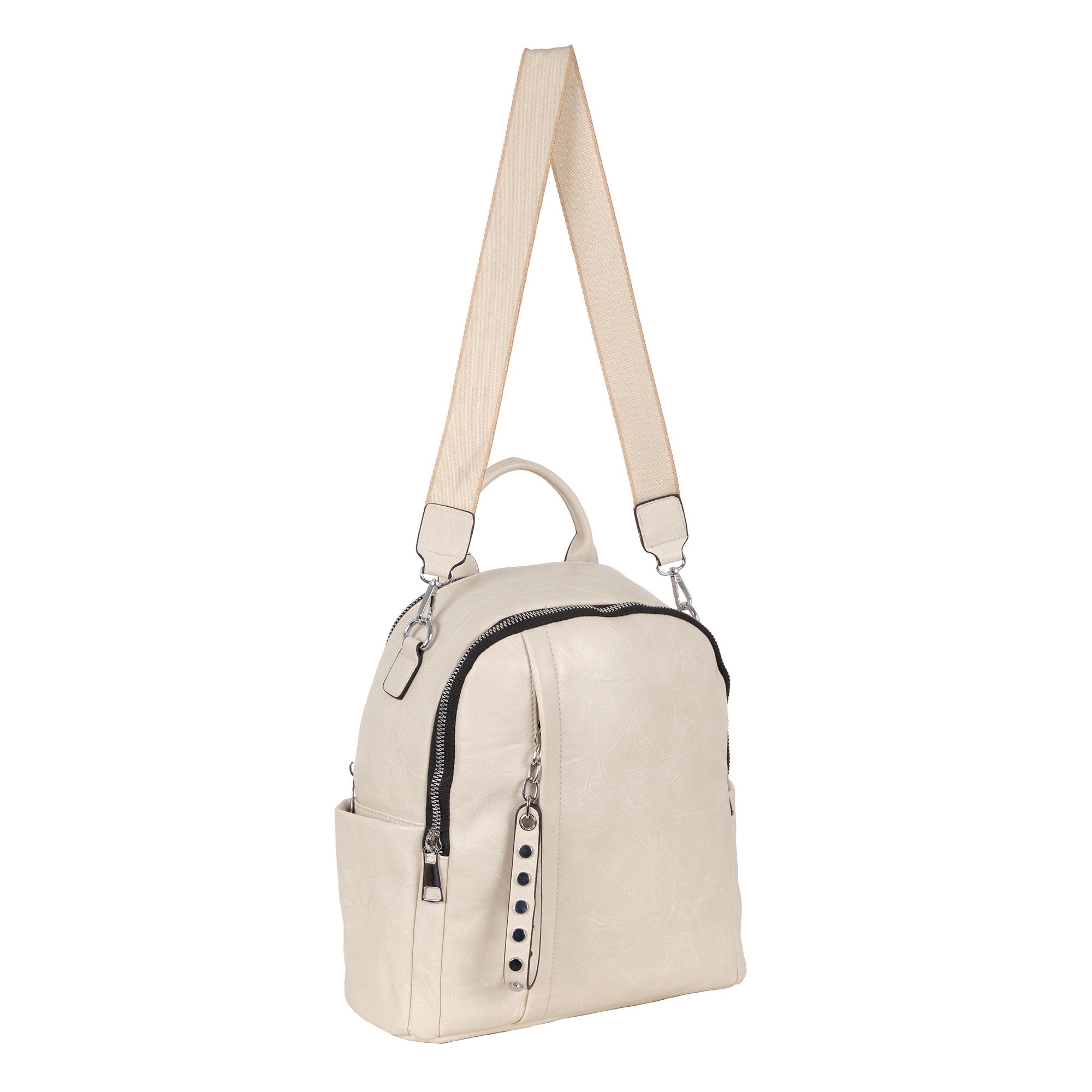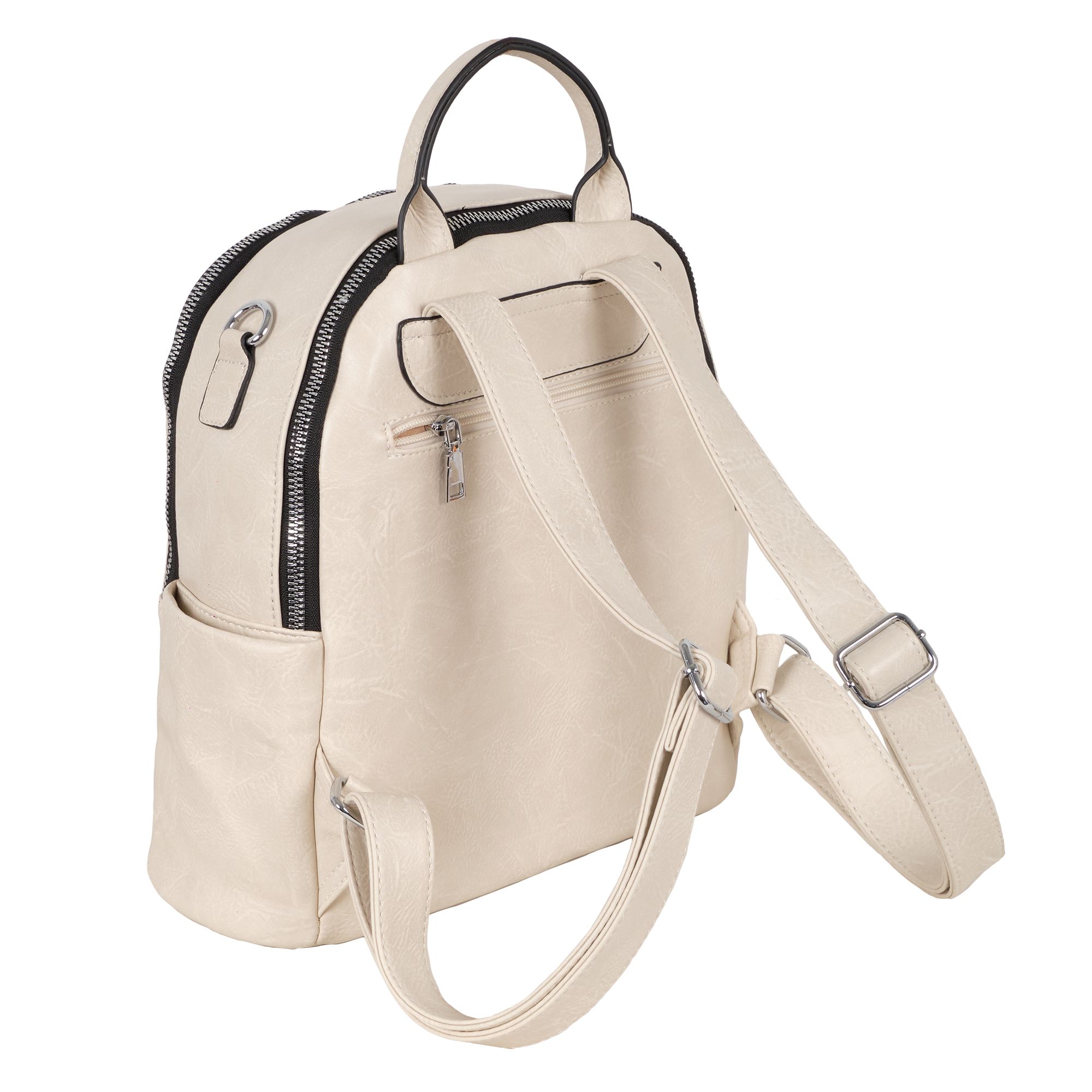 Женская сумка-рюкзак фирмы Pola выполнен из экокожи. Отлично подойдет для повседневного использования. У сумки- рюкзака два независимых отделения застегиваются на металлическую молнию. Центральный отсек для персональных вещей в ней также можно разместить документы формата А4, есть маленький карман на молнии для небольших предметов. Большой передний карман внутри с небольшим открытым карманом для мелочей. Спереди есть вертикальный карман на молнии. Сзади также есть небольшой потайной кармашек. Два боковых кармана. У сумки-рюкзака есть съёмный ремень максимальная длина 83 см за счет него рюкзак можно носить на плече как сумку. Максимальная длина лямок рюкзака 90см. Длина ручки 9 см. Цвет фурнитуры серебро.