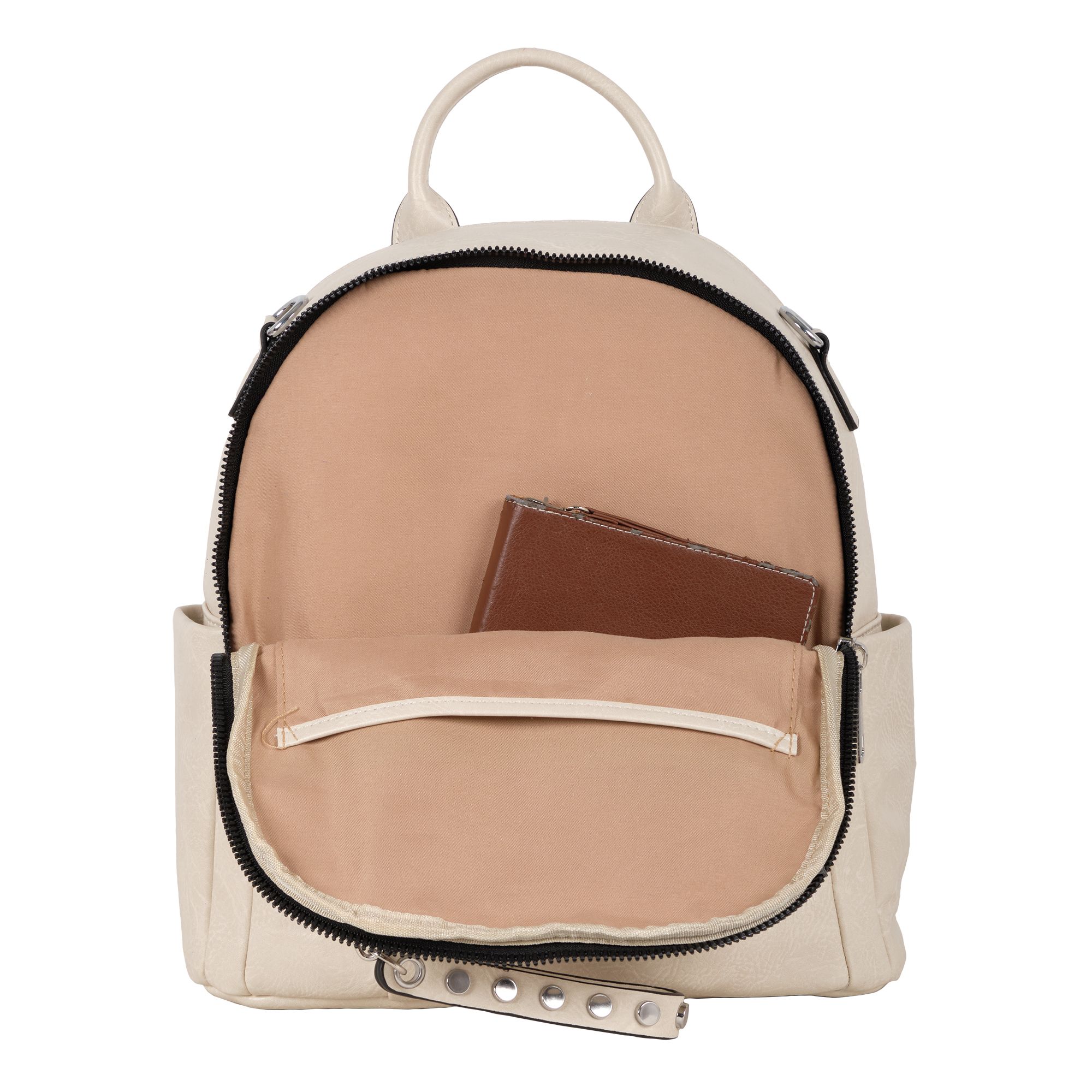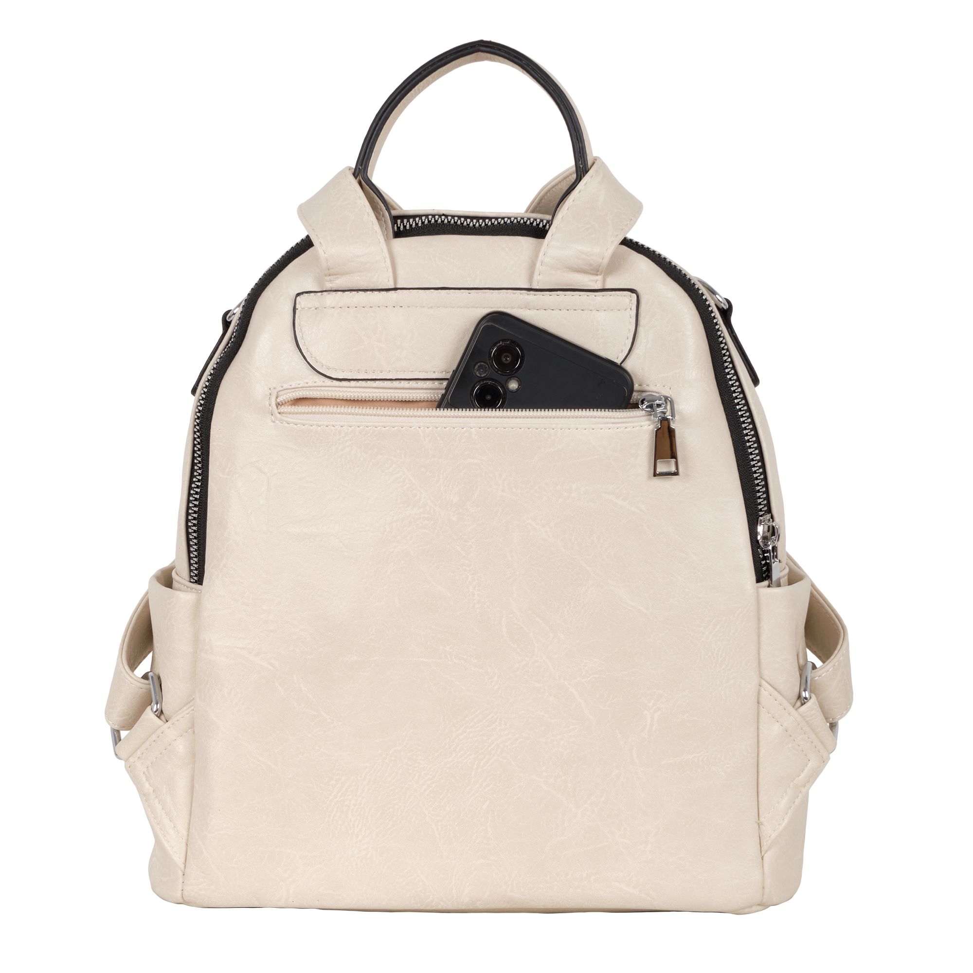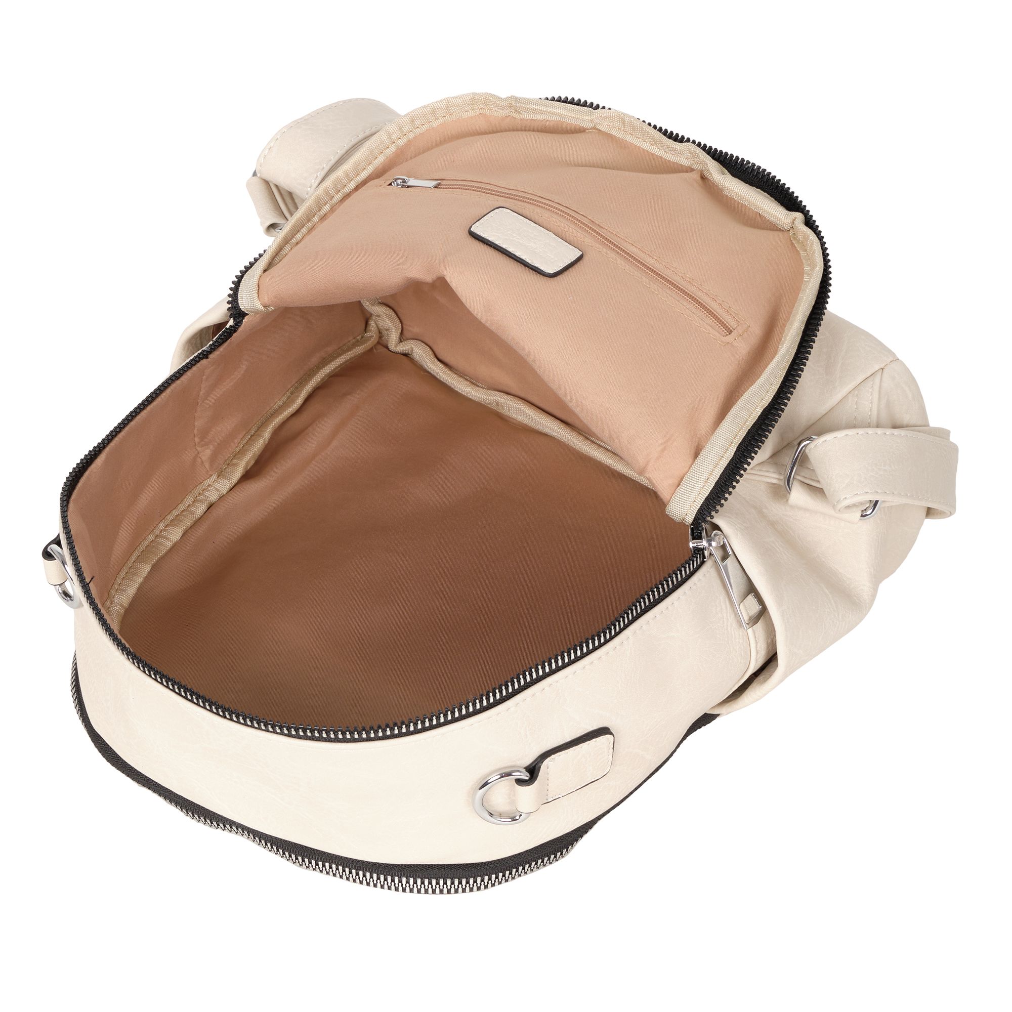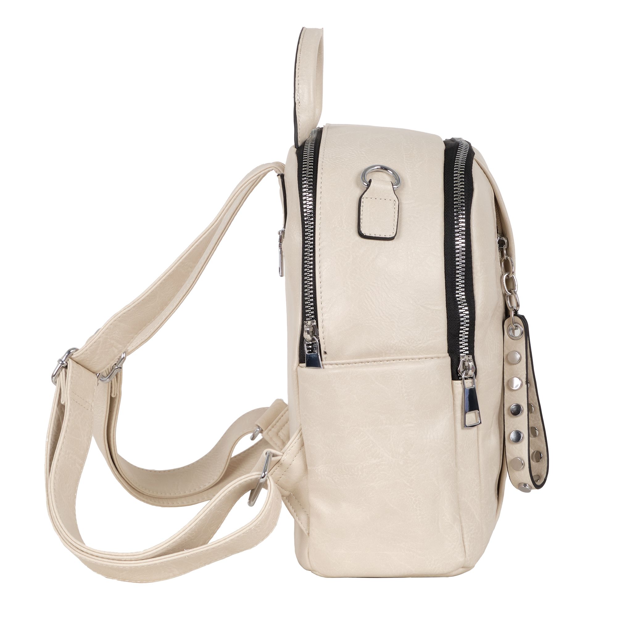 Женская сумка-рюкзак фирмы Pola выполнен из экокожи. Отлично подойдет для повседневного использования. У сумки- рюкзака два независимых отделения застегиваются на металлическую молнию. Центральный отсек для персональных вещей в ней также можно разместить документы формата А4, есть маленький карман на молнии для небольших предметов. Большой передний карман внутри с небольшим открытым карманом для мелочей. Спереди есть вертикальный карман на молнии. Сзади также есть небольшой потайной кармашек. Два боковых кармана. У сумки-рюкзака есть съёмный ремень максимальная длина 83 см за счет него рюкзак можно носить на плече как сумку. Максимальная длина лямок рюкзака 90см. Длина ручки 9 см. Цвет фурнитуры серебро.