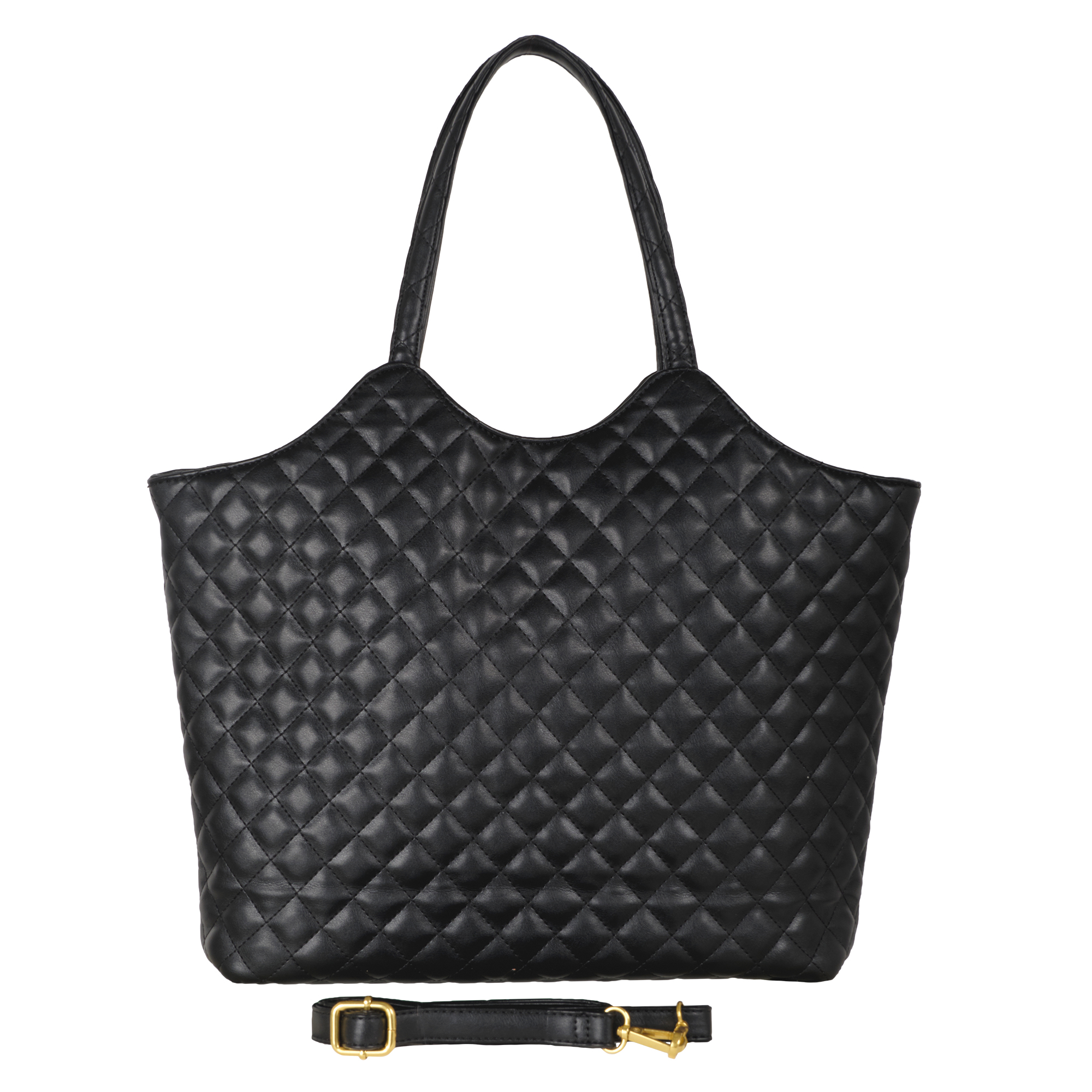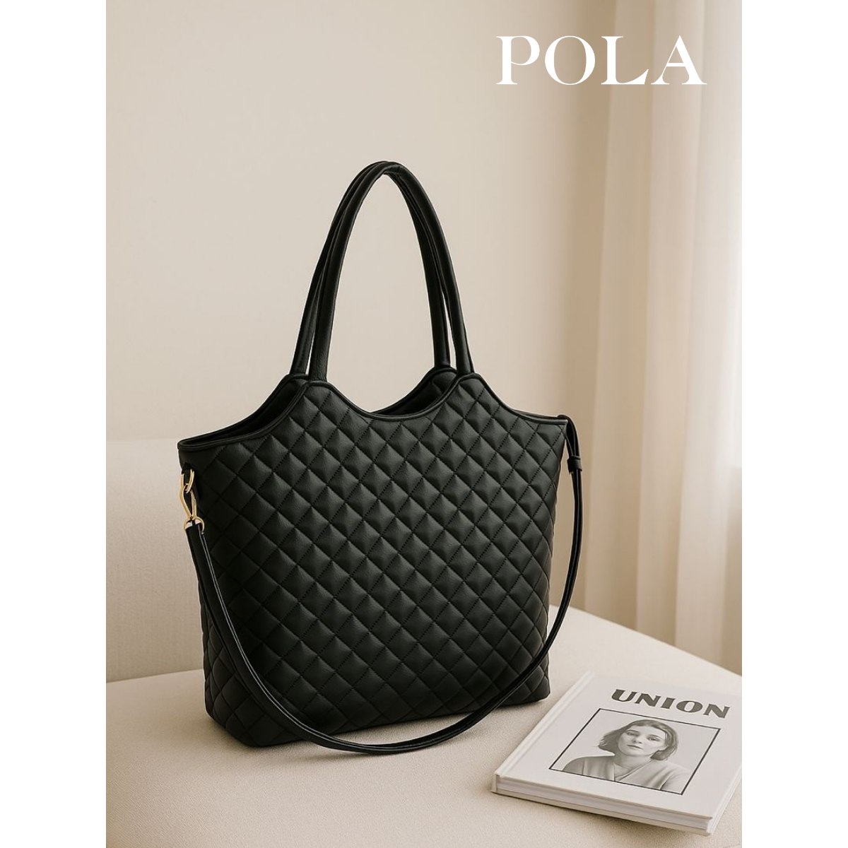 Вместительная стеганая женская сумка Pola выполнена из экокожи. Данная модель продолжает удерживать лидирующие позиции среди трендов! Данную модель можно классифицировать как-сумка тоут, сумка шоппер, сумка хобо. Основное отделение закрывается на молнию. Внутри два кармана на молнии и открытый кармашек. Вмещает формат А4. Сумку можно переносить с помощью двух ручек, высота которых составляет 26 см, а также на плече с помощью съёмного регулируемого ремня, длина которого составляет 134 см. Цвет фурнитуры-золото.