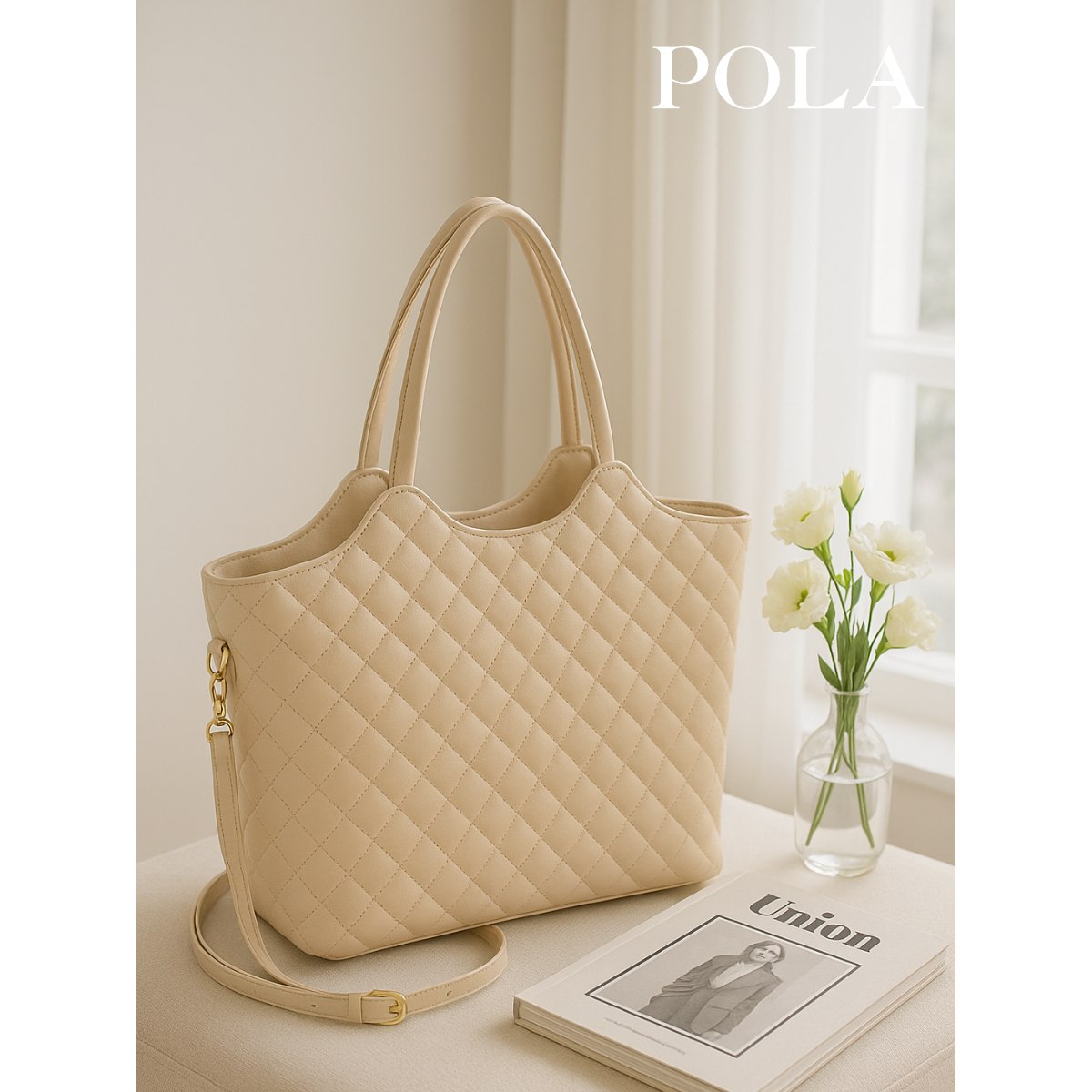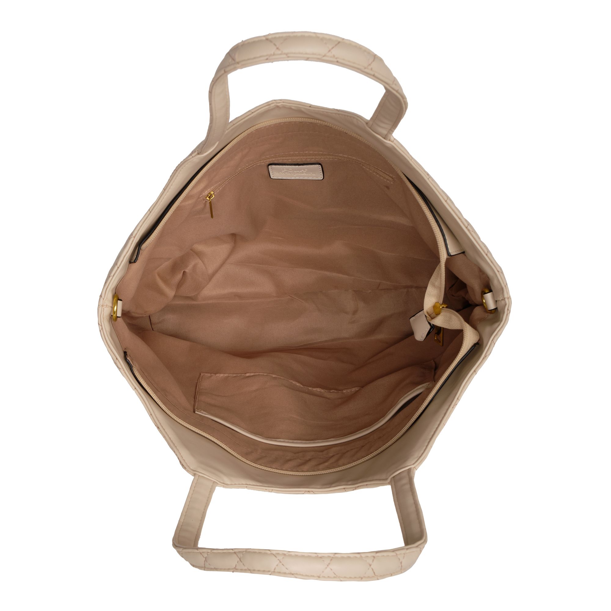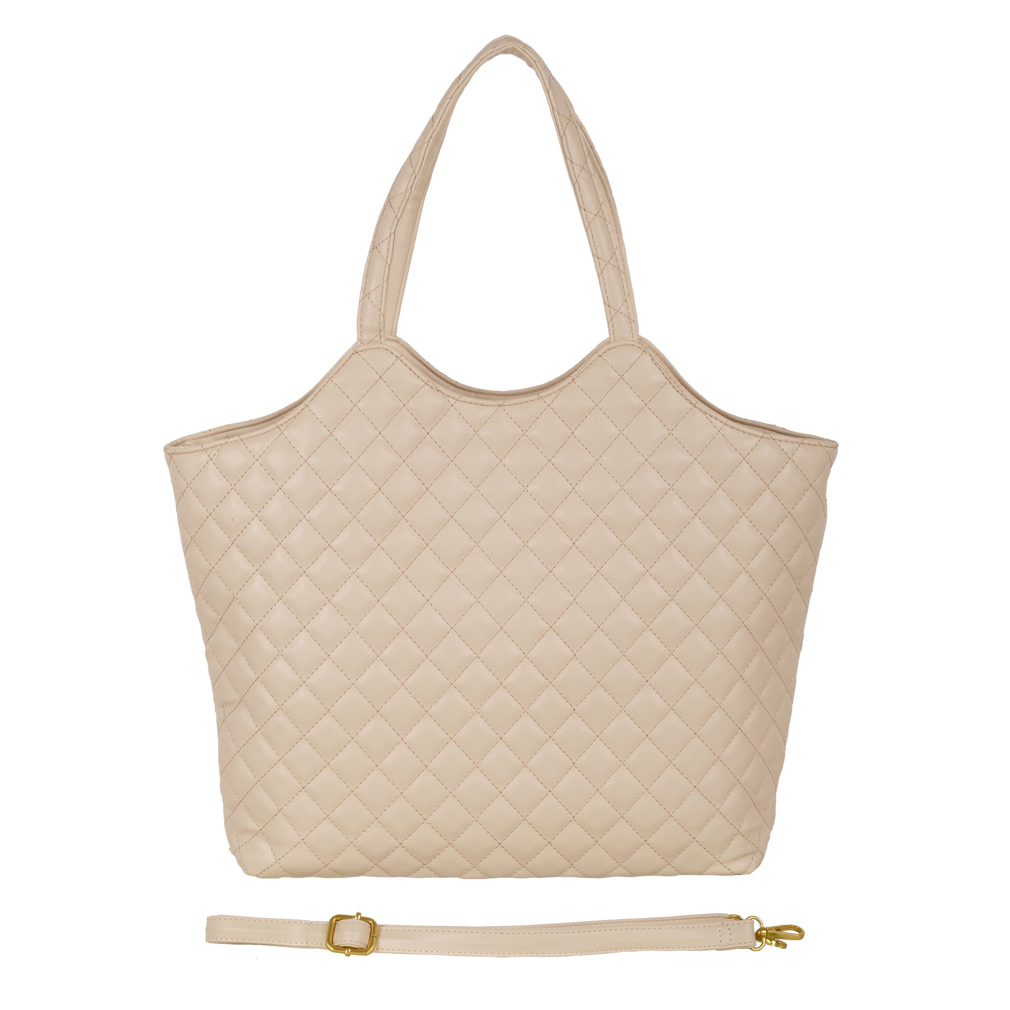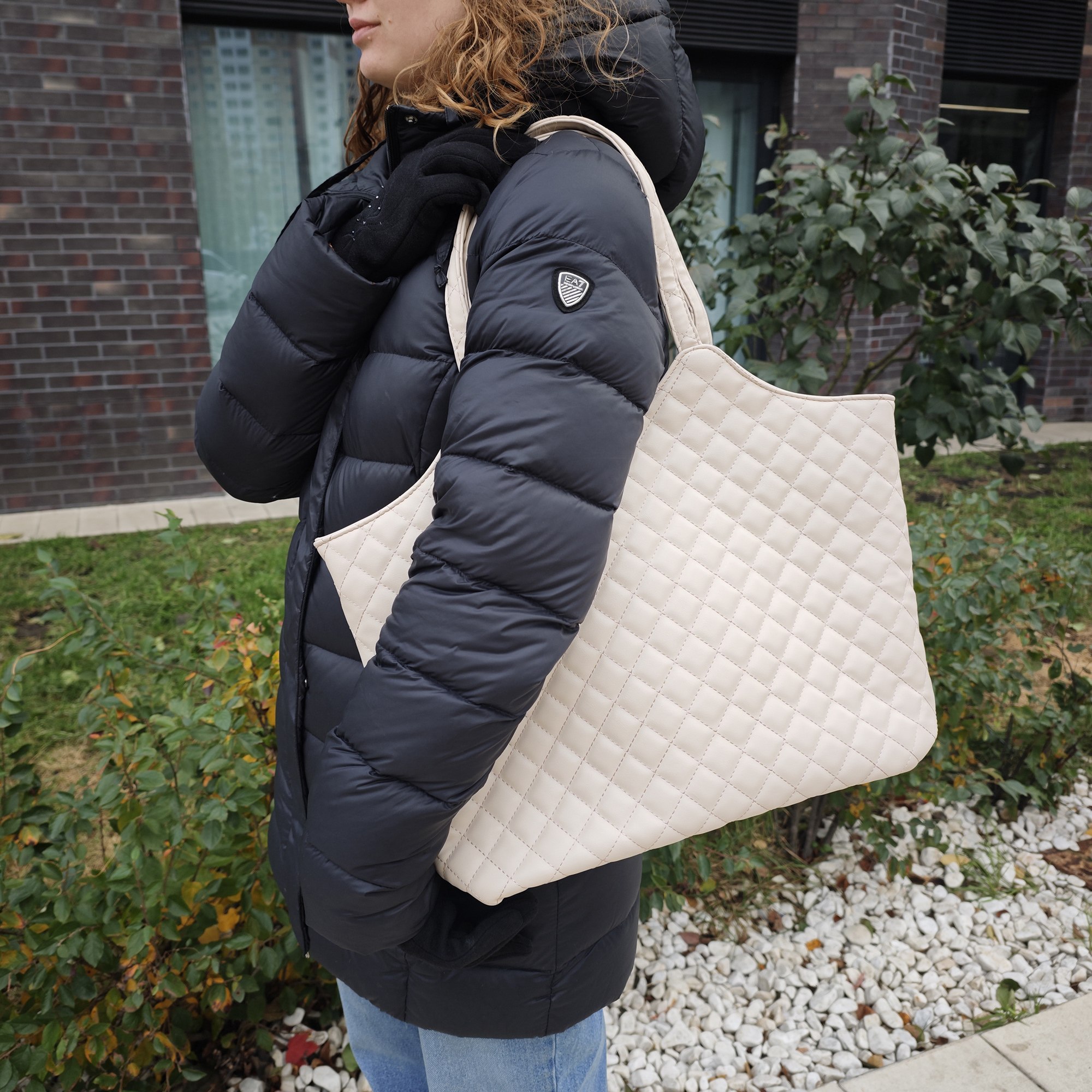 Вместительная стеганая женская сумка Pola выполнена из экокожи. Данная модель продолжает удерживать лидирующие позиции среди трендов!  Данную модель можно классифицировать как-сумка тоут, сумка шоппер, сумка хобо. Основное отделение закрывается на молнию. Внутри два кармана на молнии и открытый кармашек. Вмещает формат А4. Сумку можно переносить с помощью двух ручек, высота которых составляет 26 см, а также на плече с помощью съёмного регулируемого ремня, длина которого составляет 134 см. Цвет фурнитуры-золото.