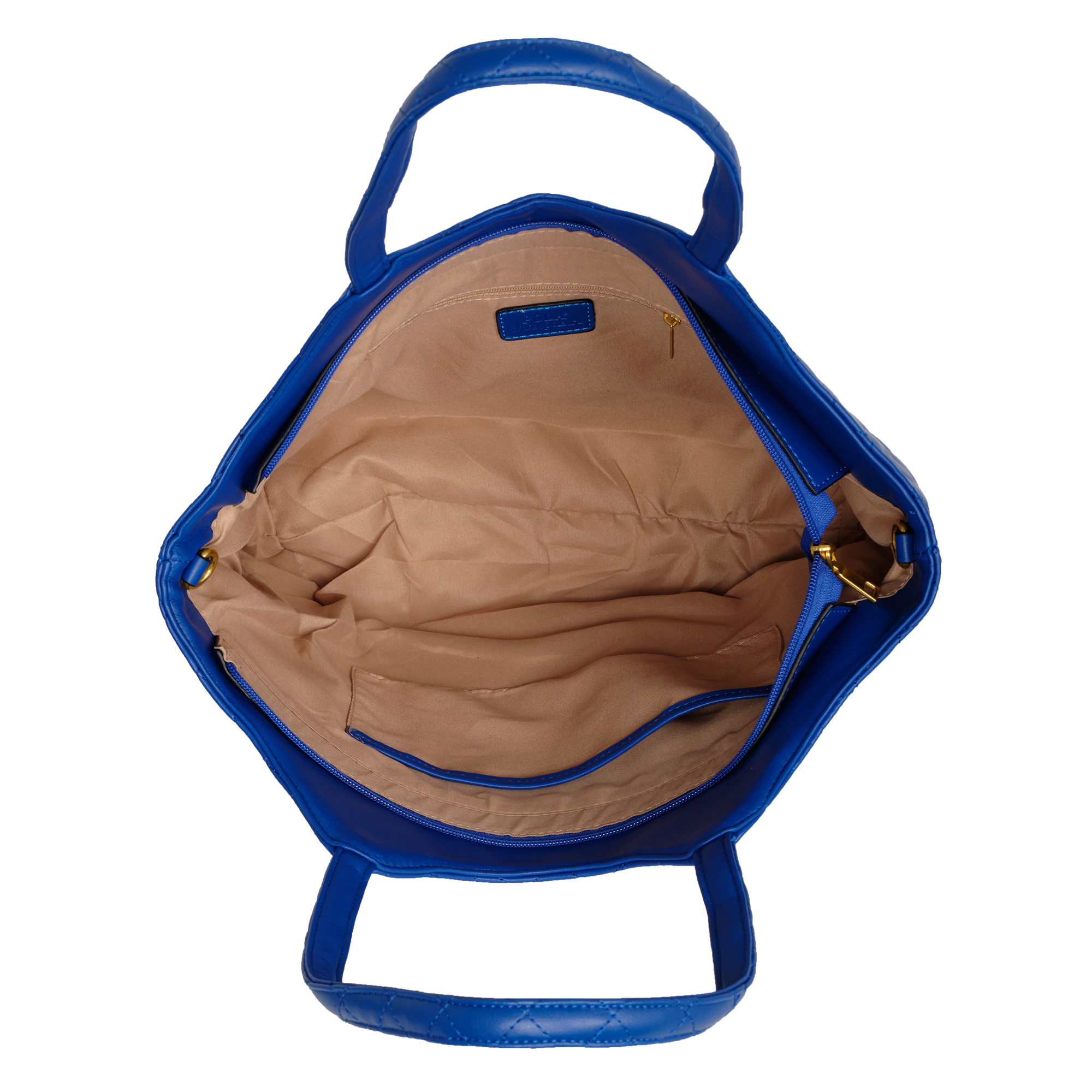 Вместительная стеганая женская сумка Pola выполнена из экокожи. Данная модель продолжает удерживать лидирующие позиции среди трендов!  Данную модель можно классифицировать как-сумка тоут, сумка шоппер, сумка хобо. Основное отделение закрывается на молнию. Внутри два кармана на молнии и открытый кармашек. Вмещает формат А4. Сумку можно переносить с помощью двух ручек, высота которых составляет 26 см, а также на плече с помощью съёмного регулируемого ремня, длина которого составляет 134 см. Цвет фурнитуры-золото.