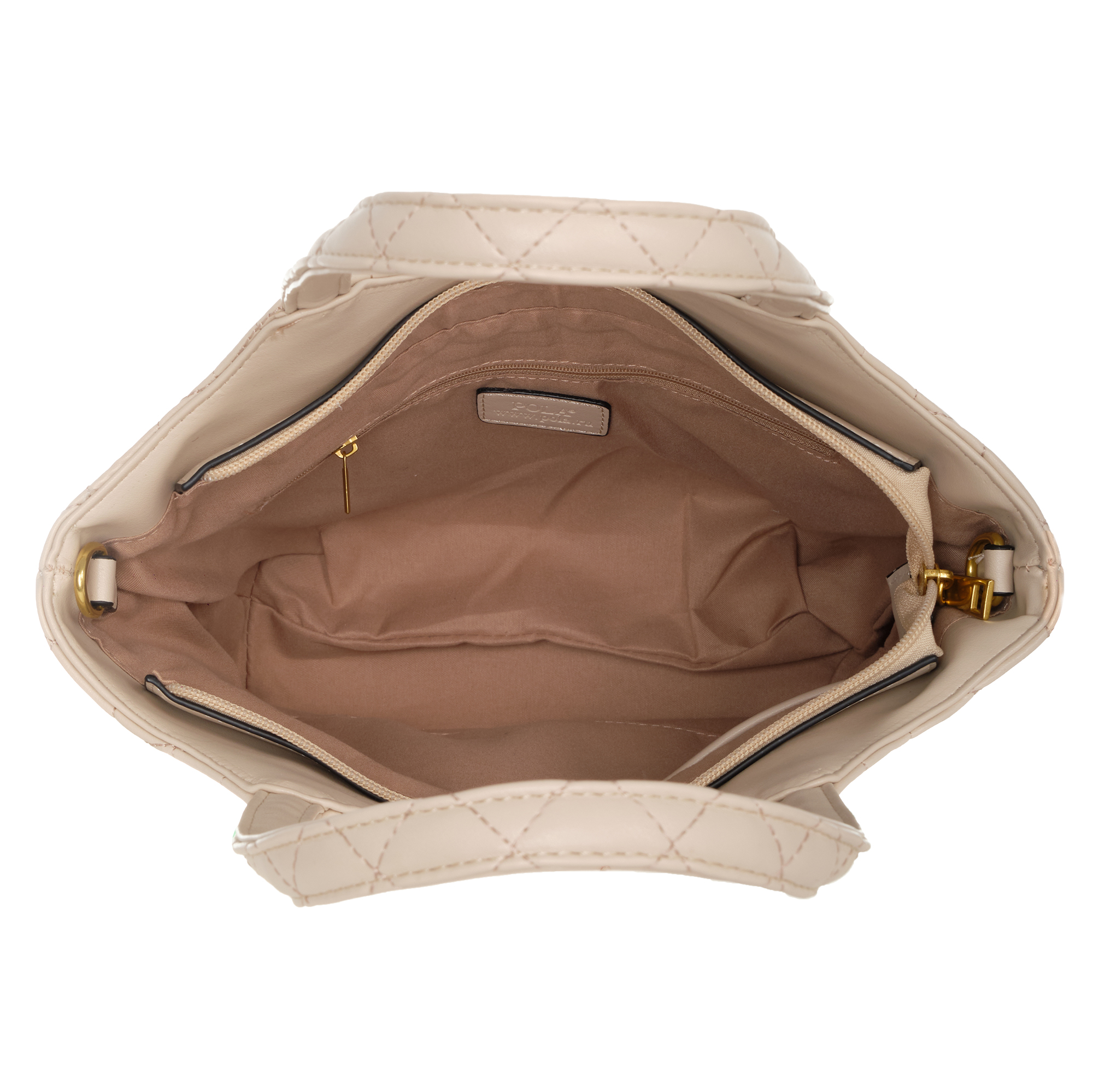 Стеганая женская сумка Pola выполнена из экокожи. Данная модель продолжает удерживать лидирующие позиции среди трендов!  Основное отделение закрывается на молнию. Внутри два кармана на молнии и открытый кармашек. Сумка отлично держит форму. Сумку можно переносить с помощью двух ручек, высота которых составляет 20 см, а также на плече с помощью съёмного регулируемого ремня, длина которого составляет 113 см. Цвет фурнитуры-золото.