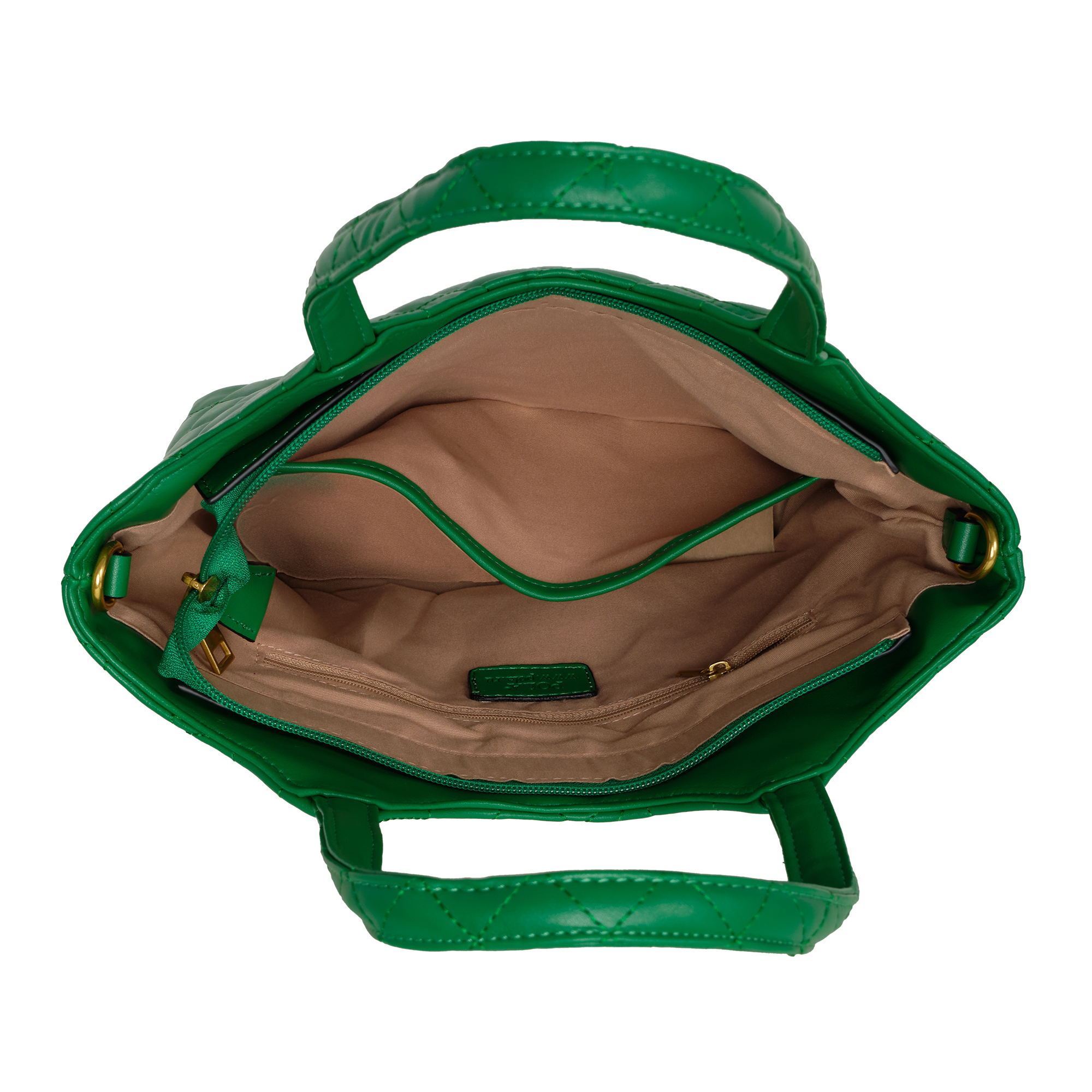 Стеганая женская сумка Pola выполнена из экокожи. Данная модель продолжает удерживать лидирующие позиции среди трендов!  Основное отделение закрывается на молнию. Внутри два кармана на молнии и открытый кармашек. Сумка отлично держит форму. Сумку можно переносить с помощью двух ручек, высота которых составляет 20 см, а также на плече с помощью съёмного регулируемого ремня, длина которого составляет 113 см. Цвет фурнитуры-золото.