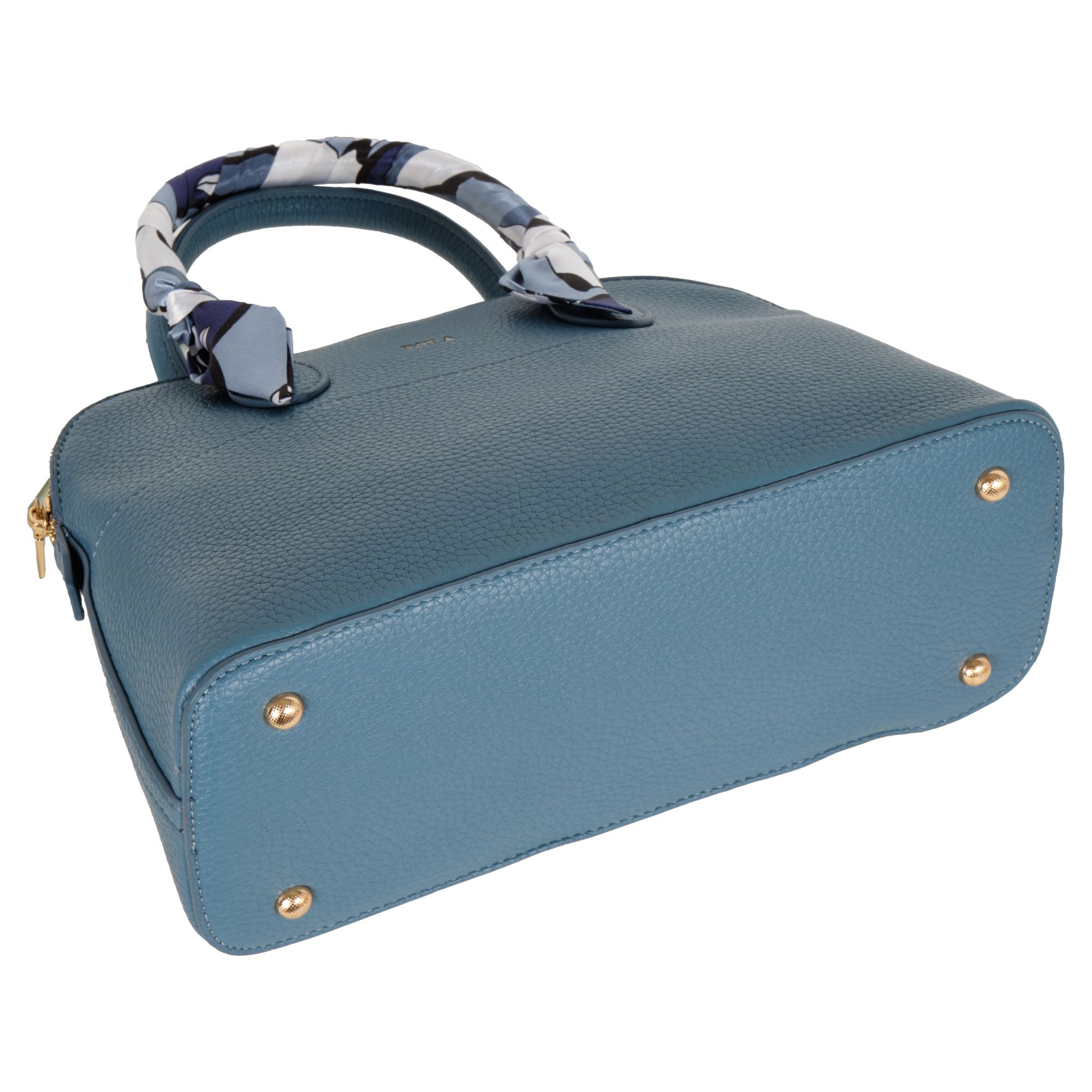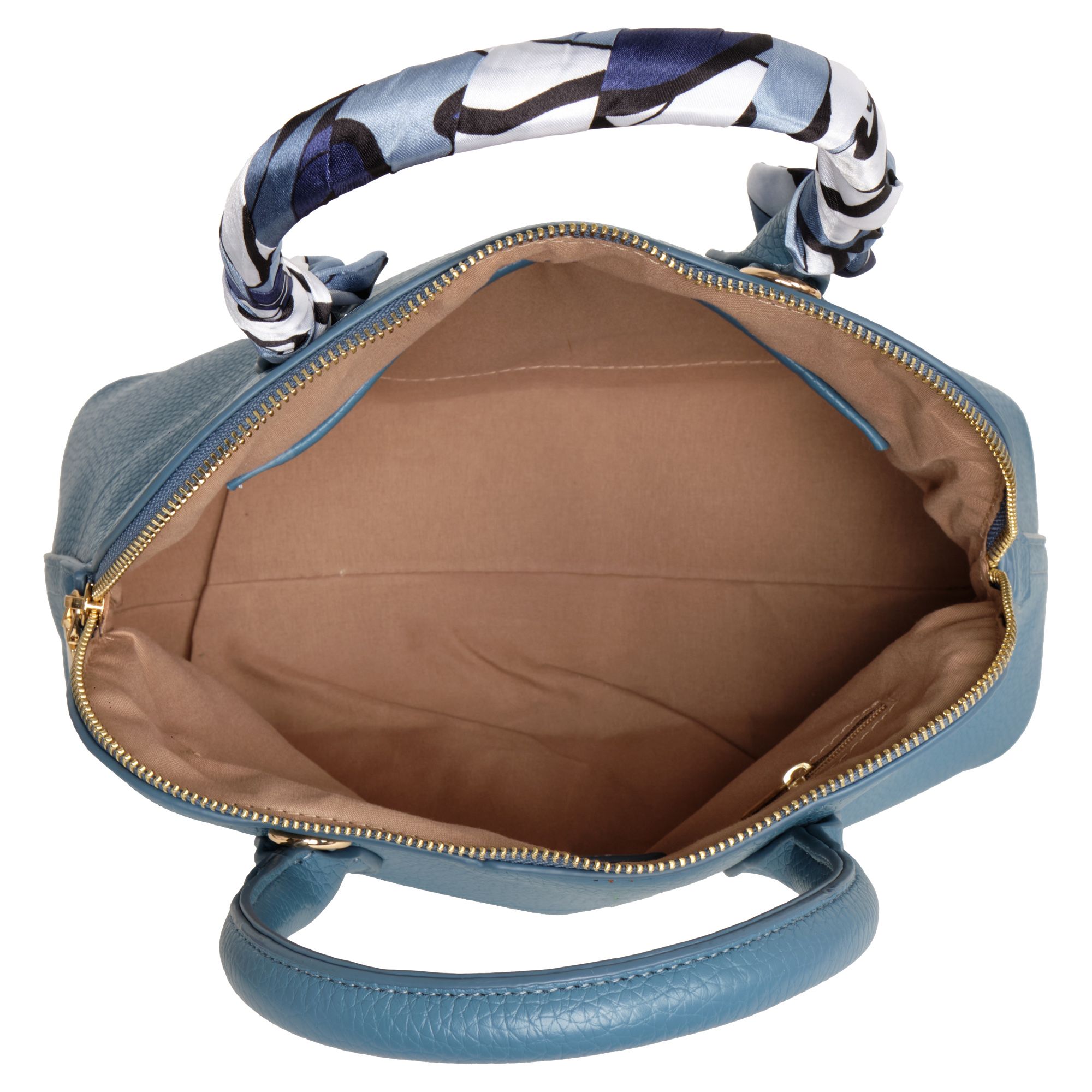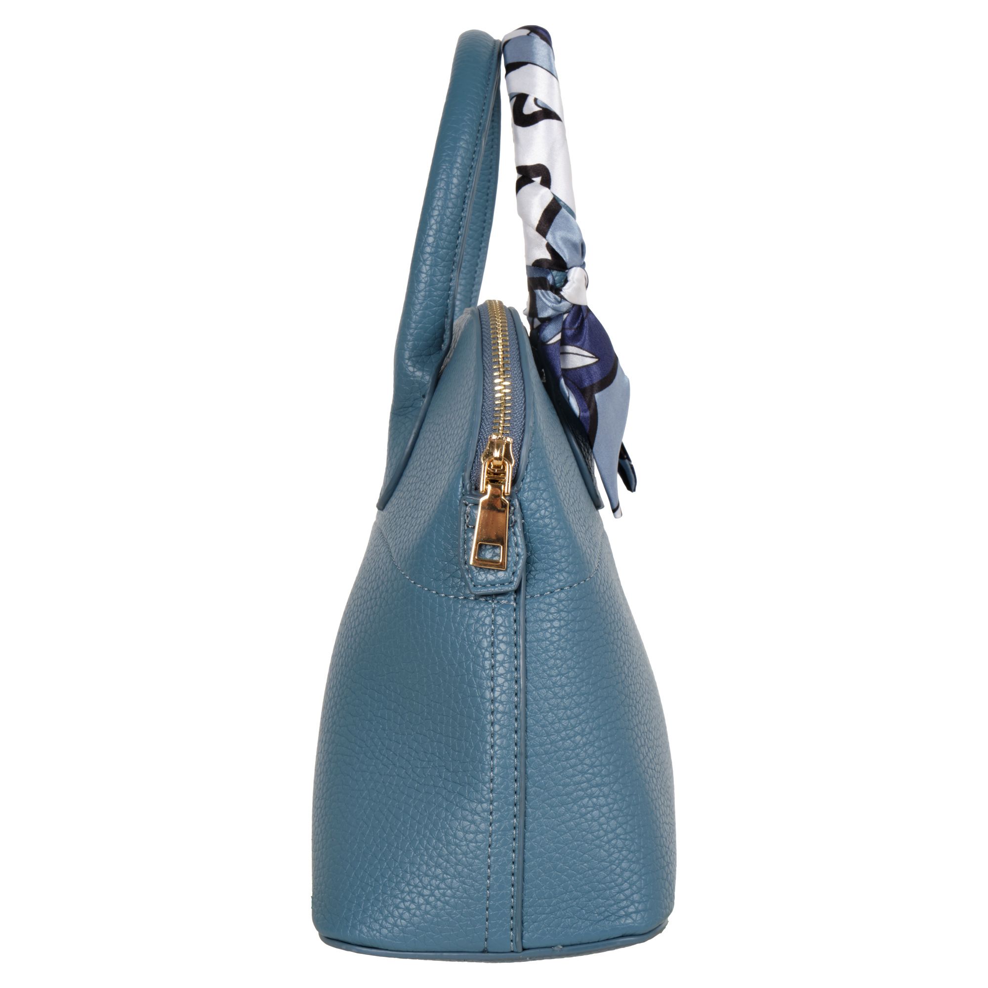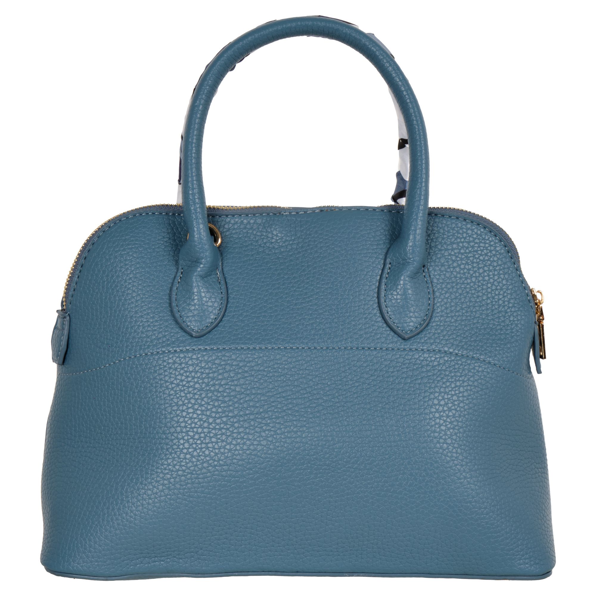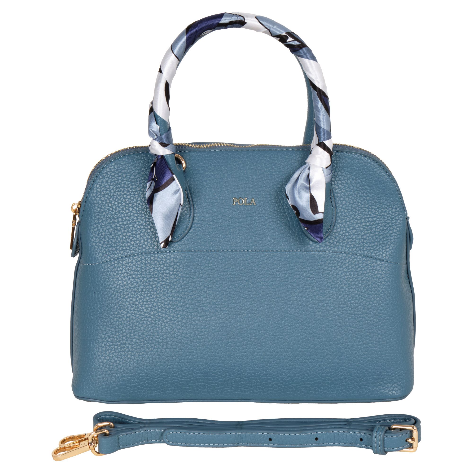 Стильная женская сумка фирмы Pola выполнена из экокожи и украшена платком. Основное отделение закрывается на металлическую молнию. Внутри сумочки есть маленький карман на молнии и два открытых. Сумка прекрасно подойдёт для повседневной носки. У сумки есть ручки для переноски, высота которых составляет 13 см их можно украсить платком и тонкий регулируемый ремешок длина которого- 130 см. Цвет фурнитуры-золото.