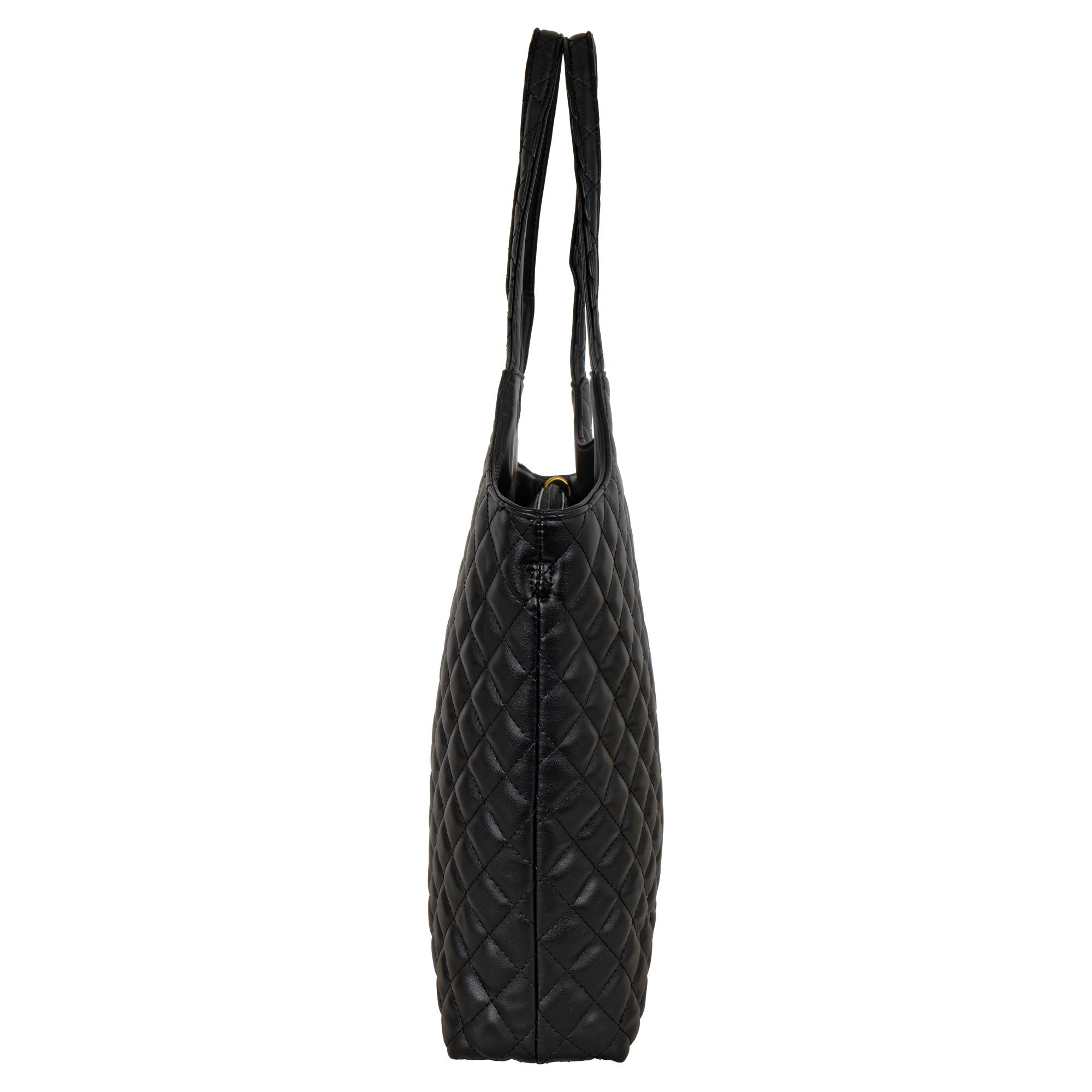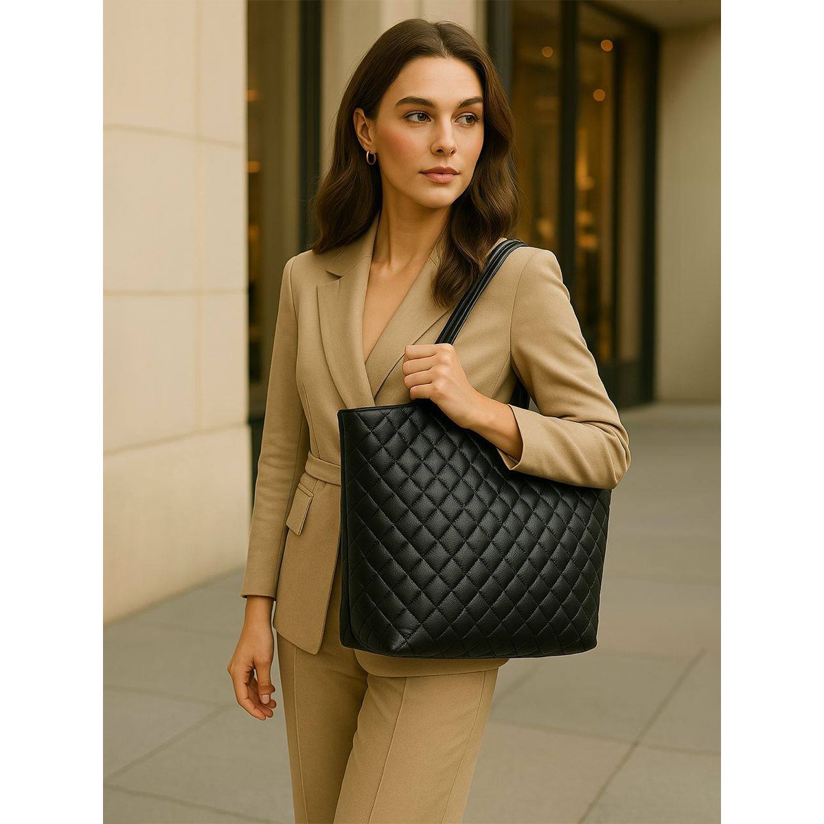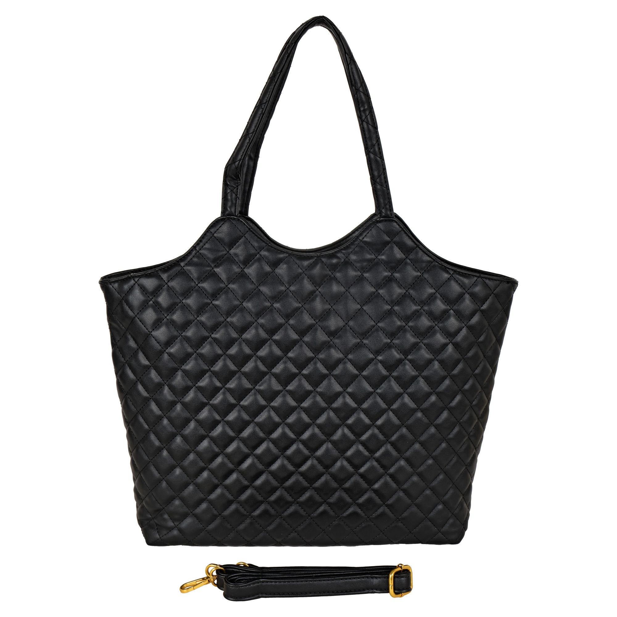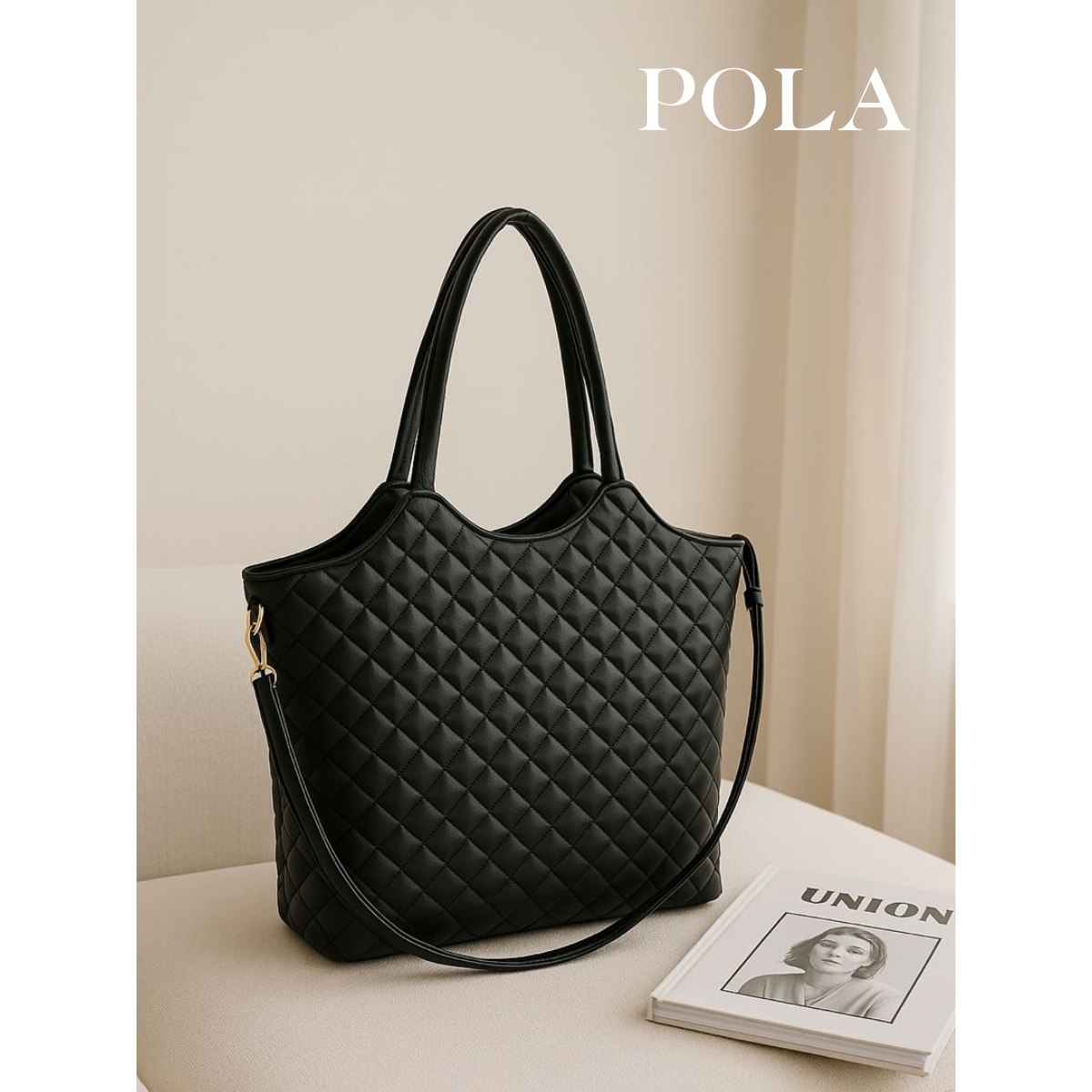 Вместительная стеганая женская сумка Pola выполнена из экокожи. Данная модель продолжает удерживать лидирующие позиции среди трендов!  Данную модель можно классифицировать как-сумка тоут, сумка шоппер, сумка хобо. Основное отделение закрывается на молнию. Внутри два кармана на молнии и открытый кармашек. Вмещает формат А4. Сумку можно переносить с помощью двух ручек, высота которых составляет 26 см, а также на плече с помощью съёмного регулируемого ремня, длина которого составляет 134 см. Цвет фурнитуры-золото.