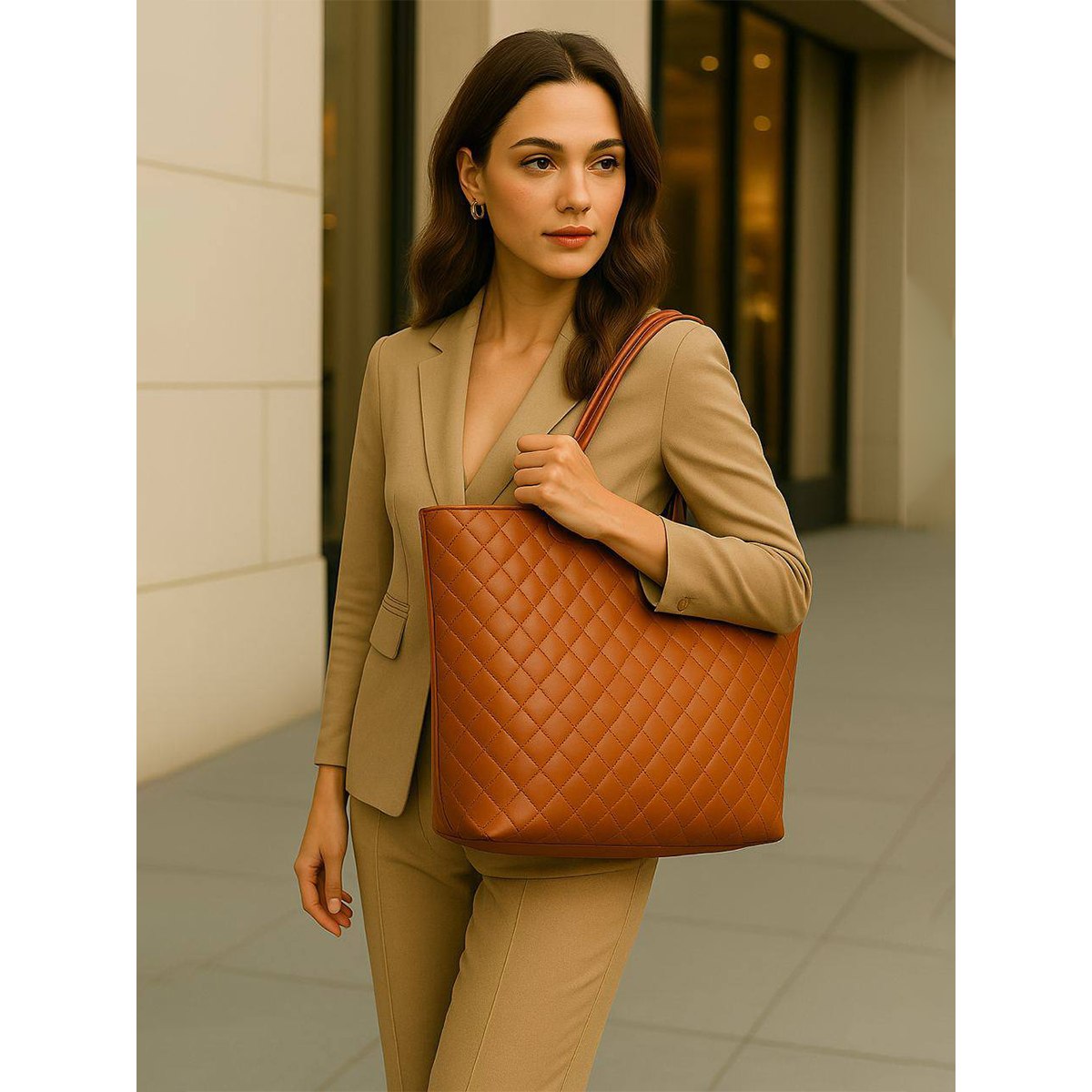 Вместительная стеганая женская сумка Pola выполнена из экокожи. Данная модель продолжает удерживать лидирующие позиции среди трендов!  Данную модель можно классифицировать как-сумка тоут, сумка шоппер, сумка хобо. Основное отделение закрывается на молнию. Внутри два кармана на молнии и открытый кармашек. Вмещает формат А4. Сумку можно переносить с помощью двух ручек, высота которых составляет 26 см, а также на плече с помощью съёмного регулируемого ремня, длина которого составляет 134 см. Цвет фурнитуры-золото.