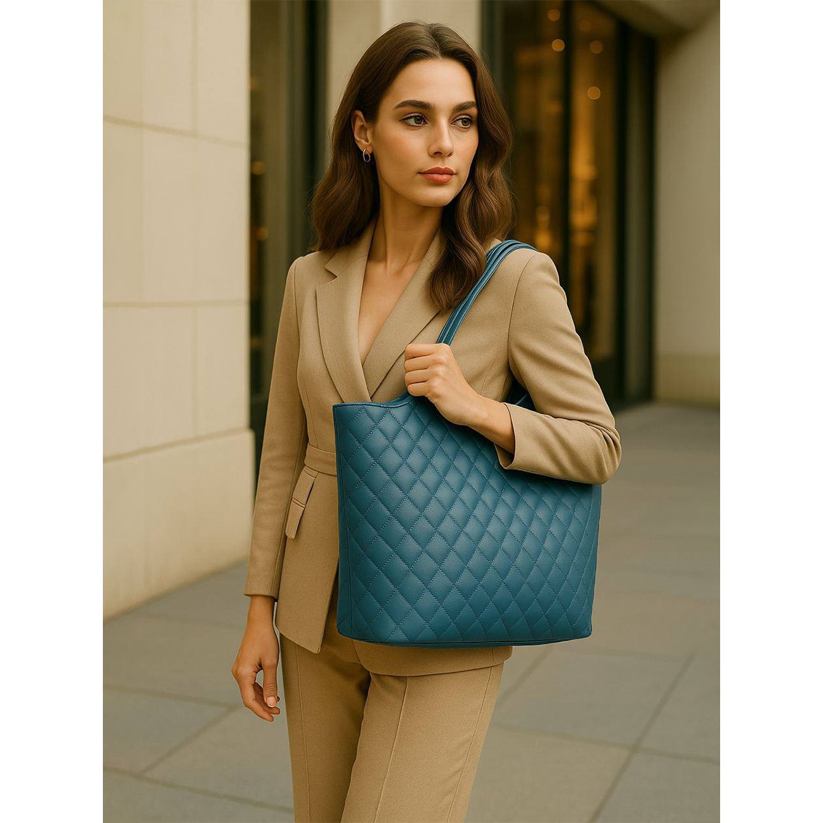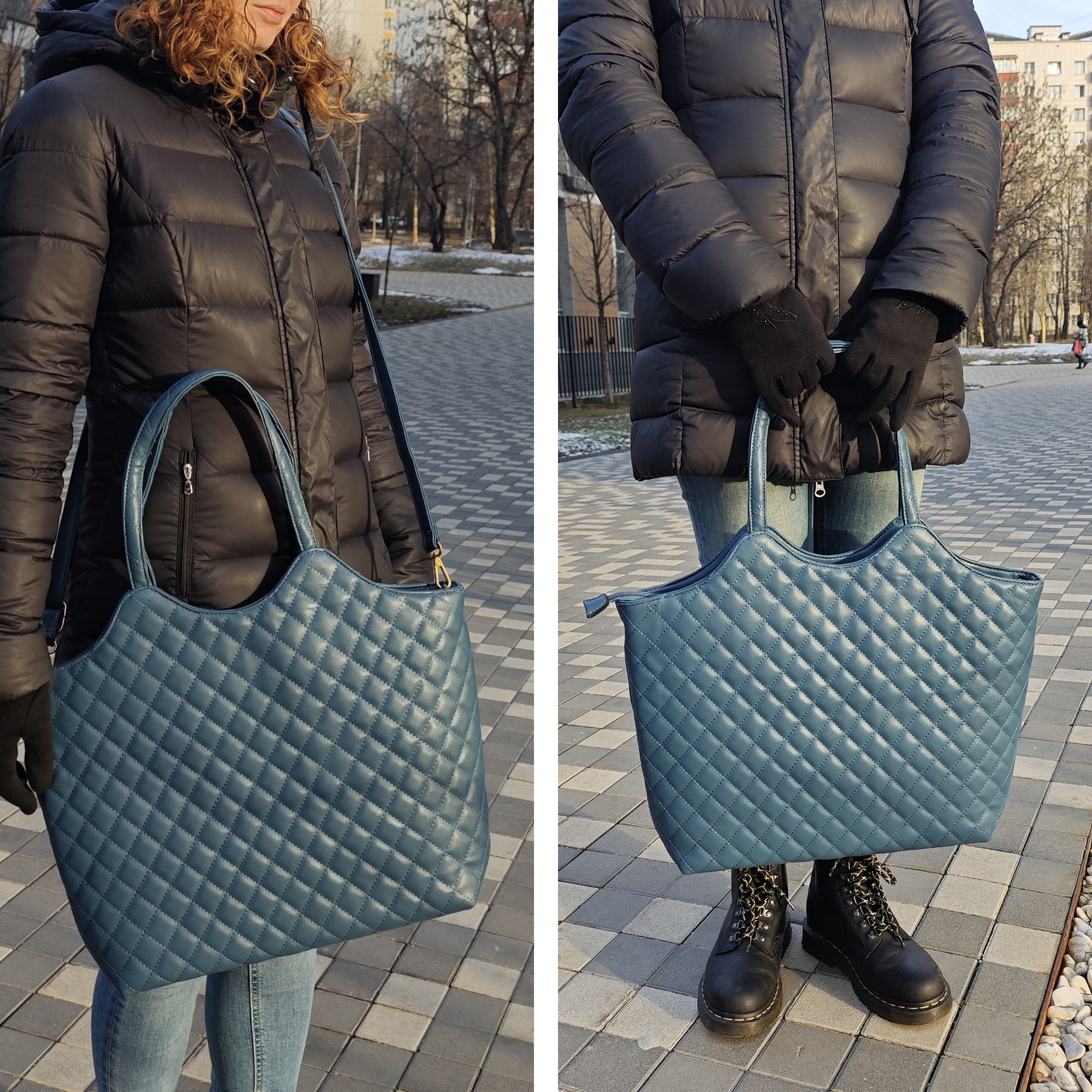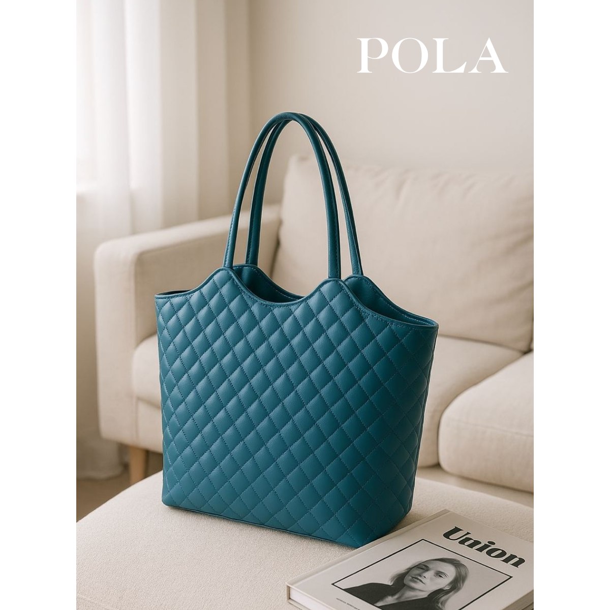 Вместительная стеганая женская сумка Pola выполнена из экокожи. Данная модель продолжает удерживать лидирующие позиции среди трендов!  Данную модель можно классифицировать как-сумка тоут, сумка шоппер, сумка хобо. Основное отделение закрывается на молнию. Внутри два кармана на молнии и открытый кармашек. Вмещает формат А4. Сумку можно переносить с помощью двух ручек, высота которых составляет 26 см, а также на плече с помощью съёмного регулируемого ремня, длина которого составляет 134 см. Цвет фурнитуры-золото.