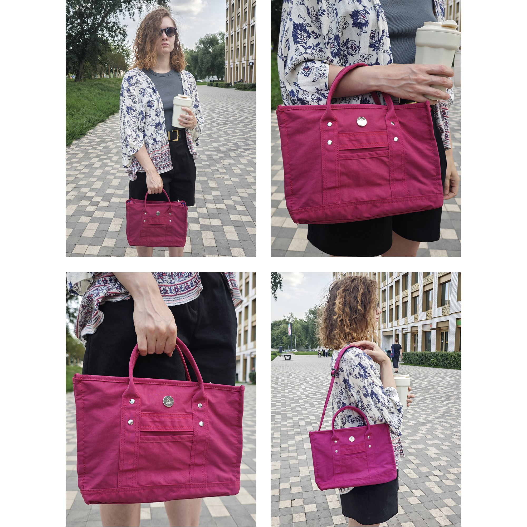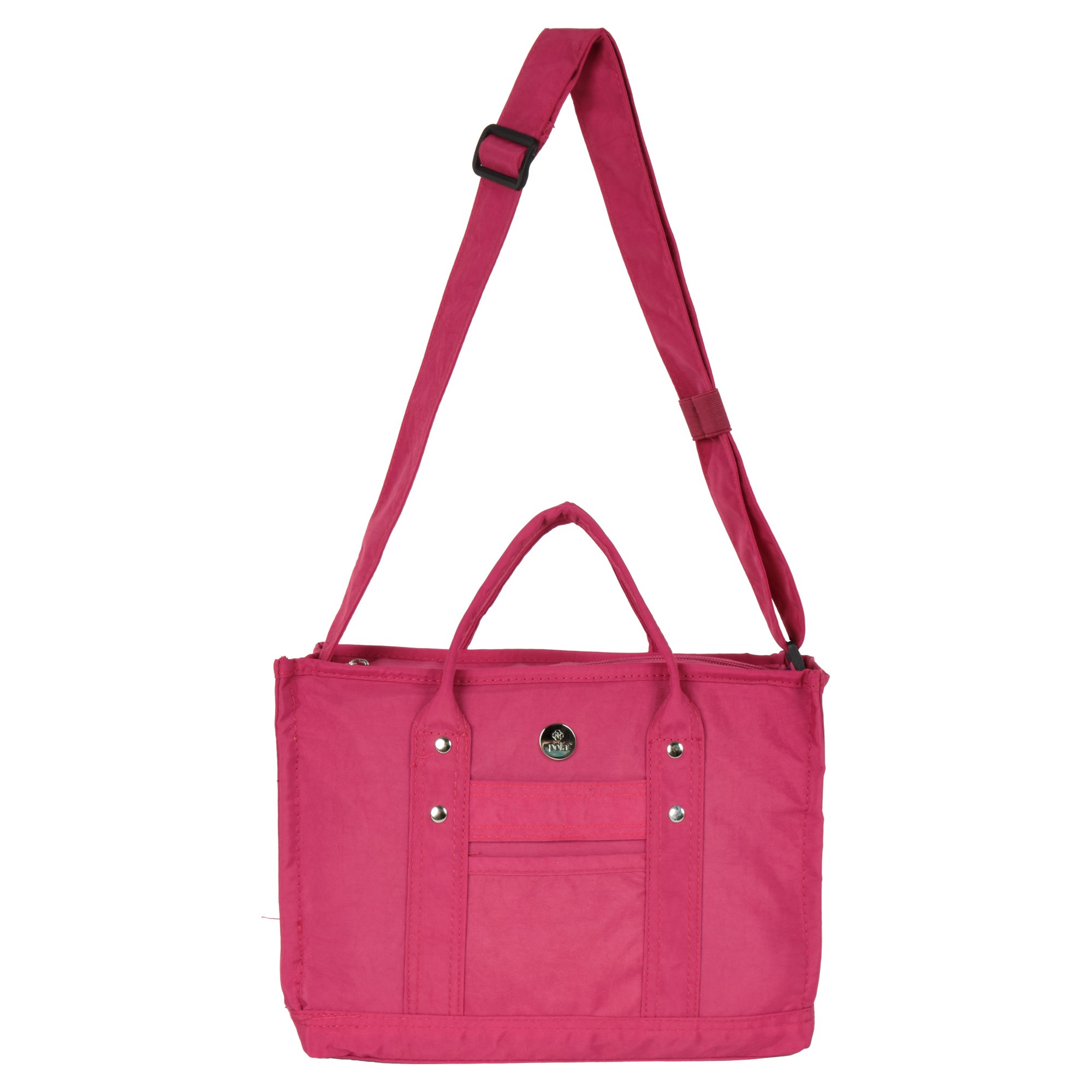 Сумка-шоппер Pola выполнена из плотного нейлона. Основное отделение закрывается на молнию. Внутри одно отделение, маленький открытый карман для мелочей, а также специальный отсек для бутылочки воды. На лицевой стороне сумки небольшой открытый кармашек. Высота ручек 10 см. Модель можно носить в руке или на плече с помощью регулируемого ремня, длина которого составляет 117 см.  В этой модели найдется место для всего самого необходимого в повседневной жизни.