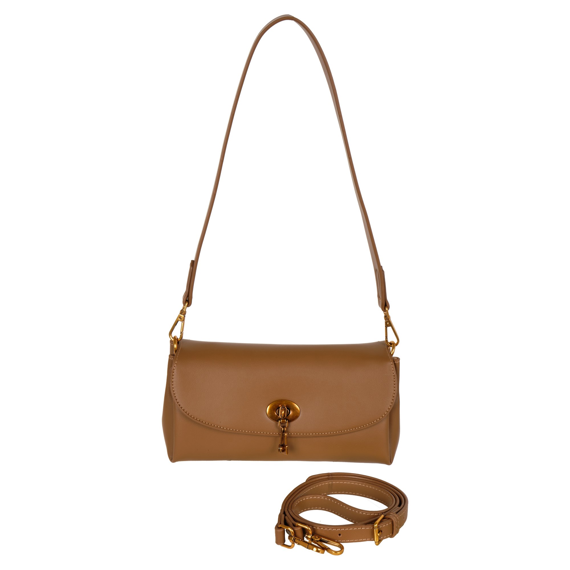 Стильная сумочка Pola выполнена из экокожи. Сумка состоит из одного основного отделения, которое закрывается поворотным замком. Внутри основного отделения кармашек на молнии и два открытых кармана. Данная модель отлично подойдет для повседневного образа. Максимальная длина съемного регулируемого ремня составляет 126 см, высота ручки 33 см. Цвет фурнитуры-латунь.
