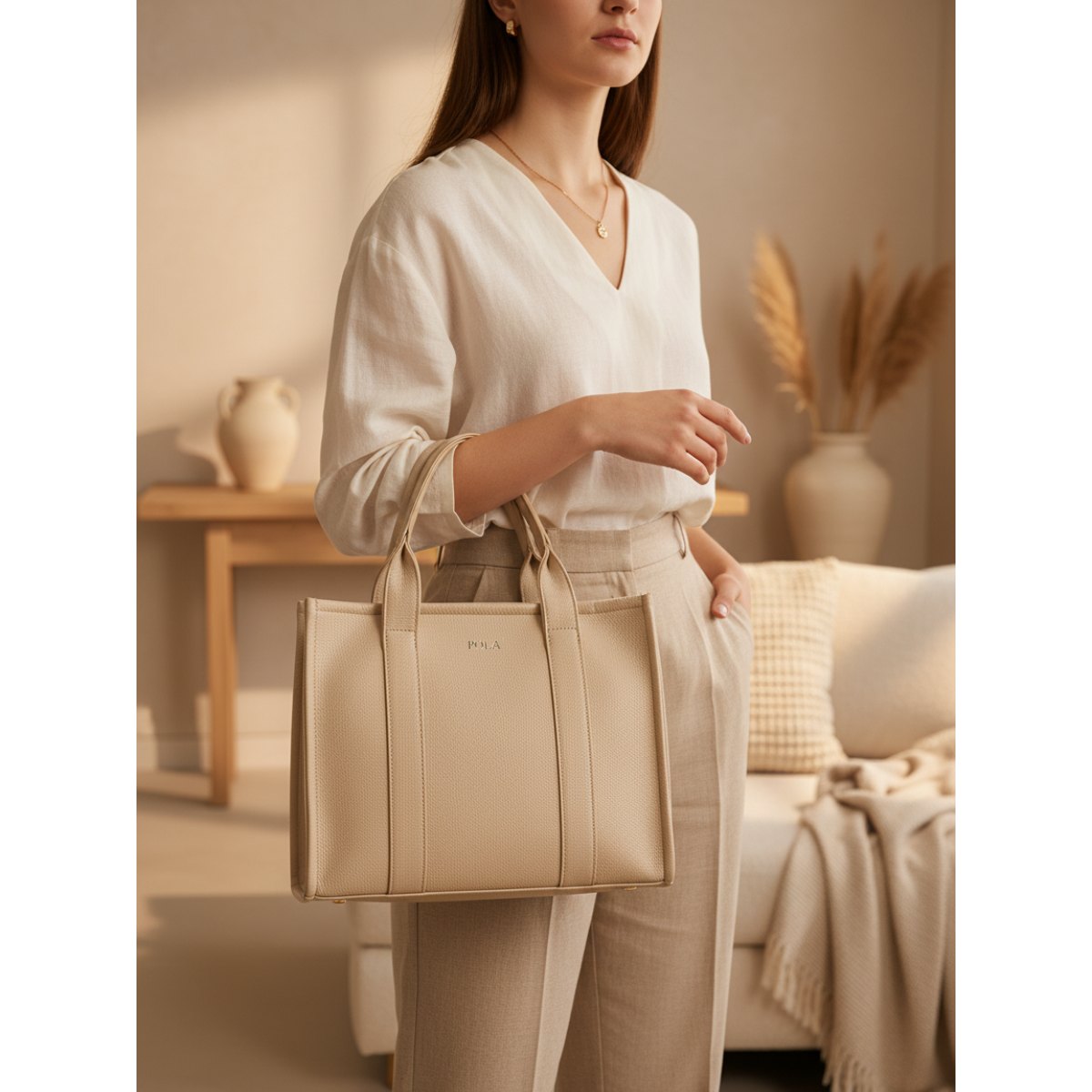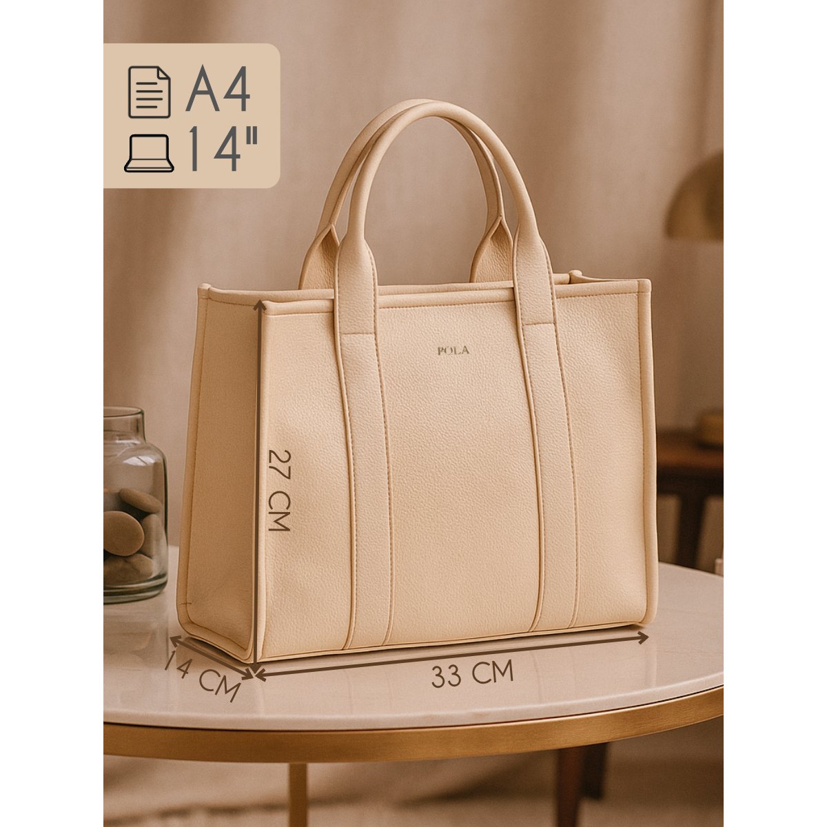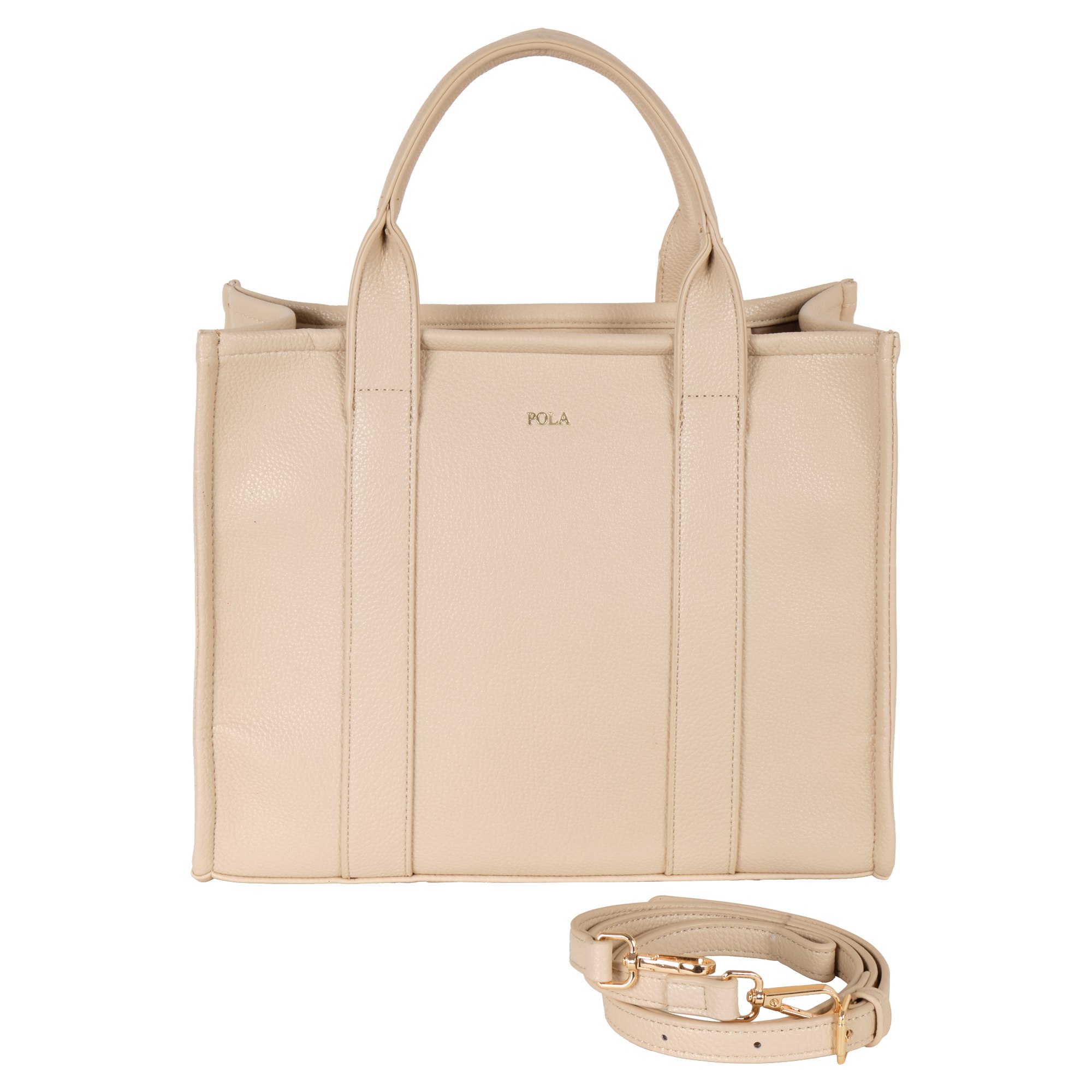 Стильная женская сумка фирмы POLA выполнена из экокожи. Идеальная сумка для повседневной жизни. Это большая шоппер модель, которая подходит как для учебы, так и для работы. Вмещает формат А4. Основное отделение закрывается на молнию. Внутри один карман на молнии и один открытый кармашек. Максимальная длина съемного регулируемого ремня составляет 132 см, высота ручки 14 см. Цвет фурнитуры-золото.