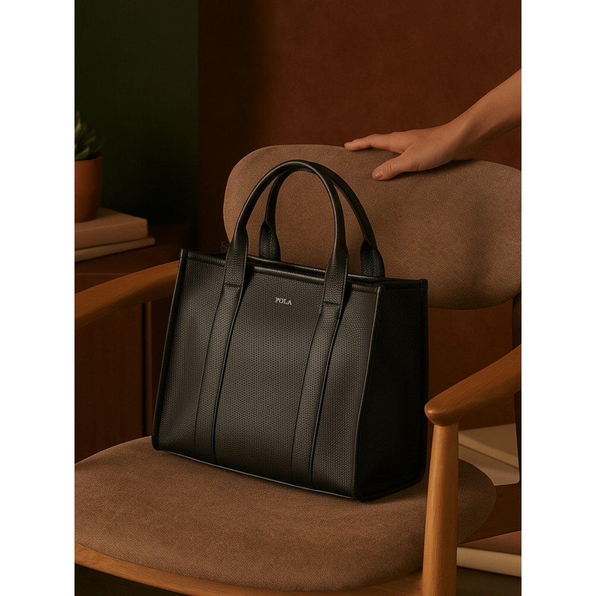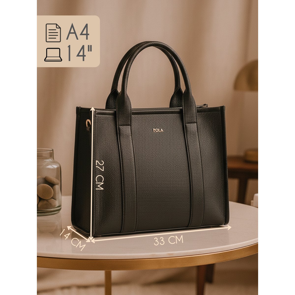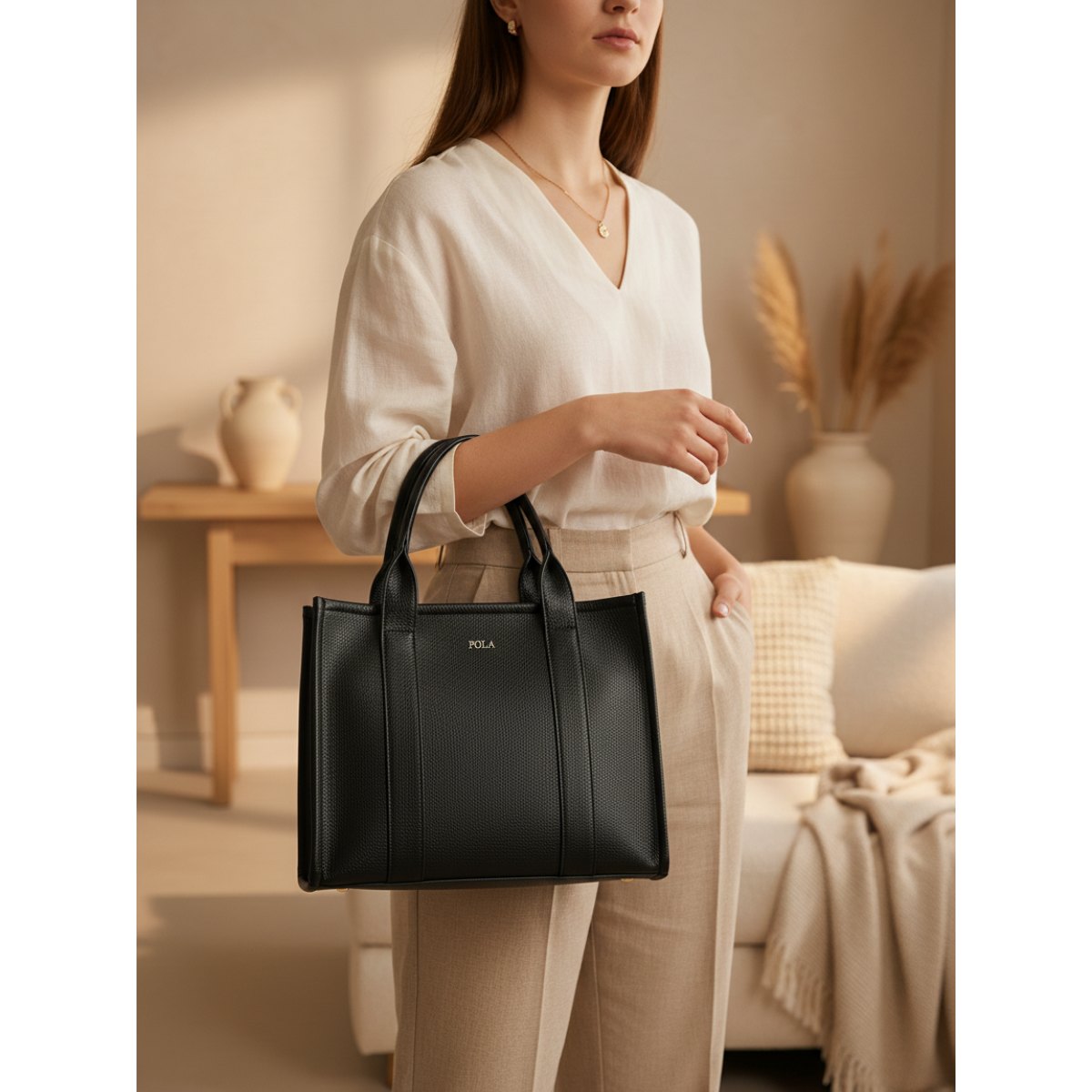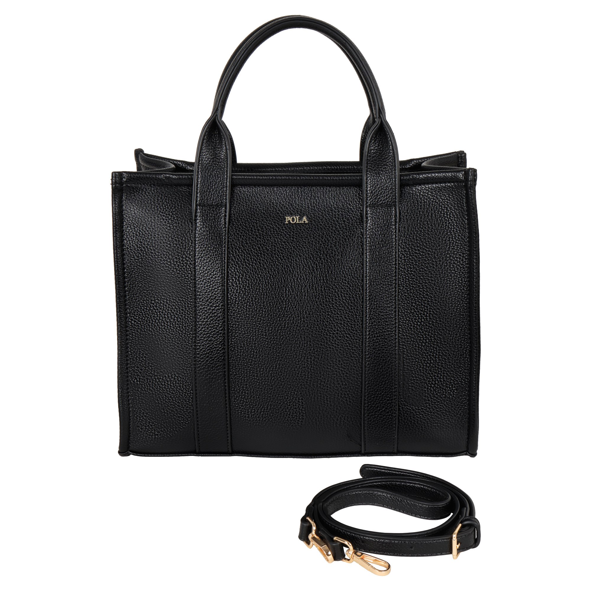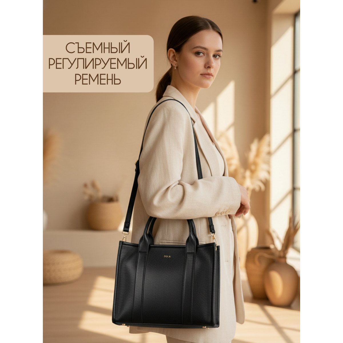 Стильная женская сумка фирмы POLA выполнена из экокожи. Идеальная сумка для повседневной жизни. Это большая шоппер модель, которая подходит как для учебы, так и для работы. Вмещает формат А4. Основное отделение закрывается на молнию. Внутри один карман на молнии и один открытый кармашек. Максимальная длина съемного регулируемого ремня составляет 132 см, высота ручки 14 см. Цвет фурнитуры-золото.