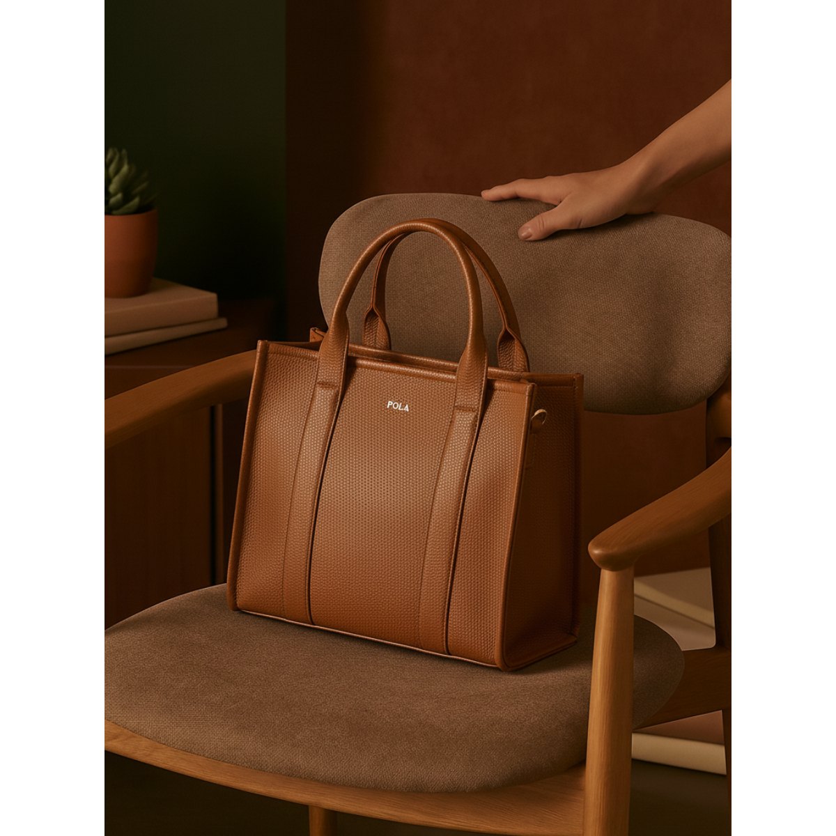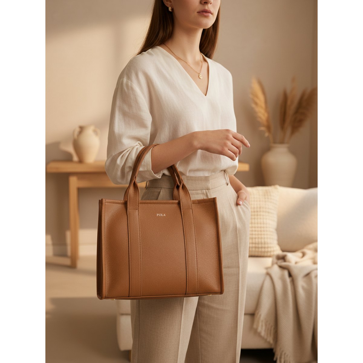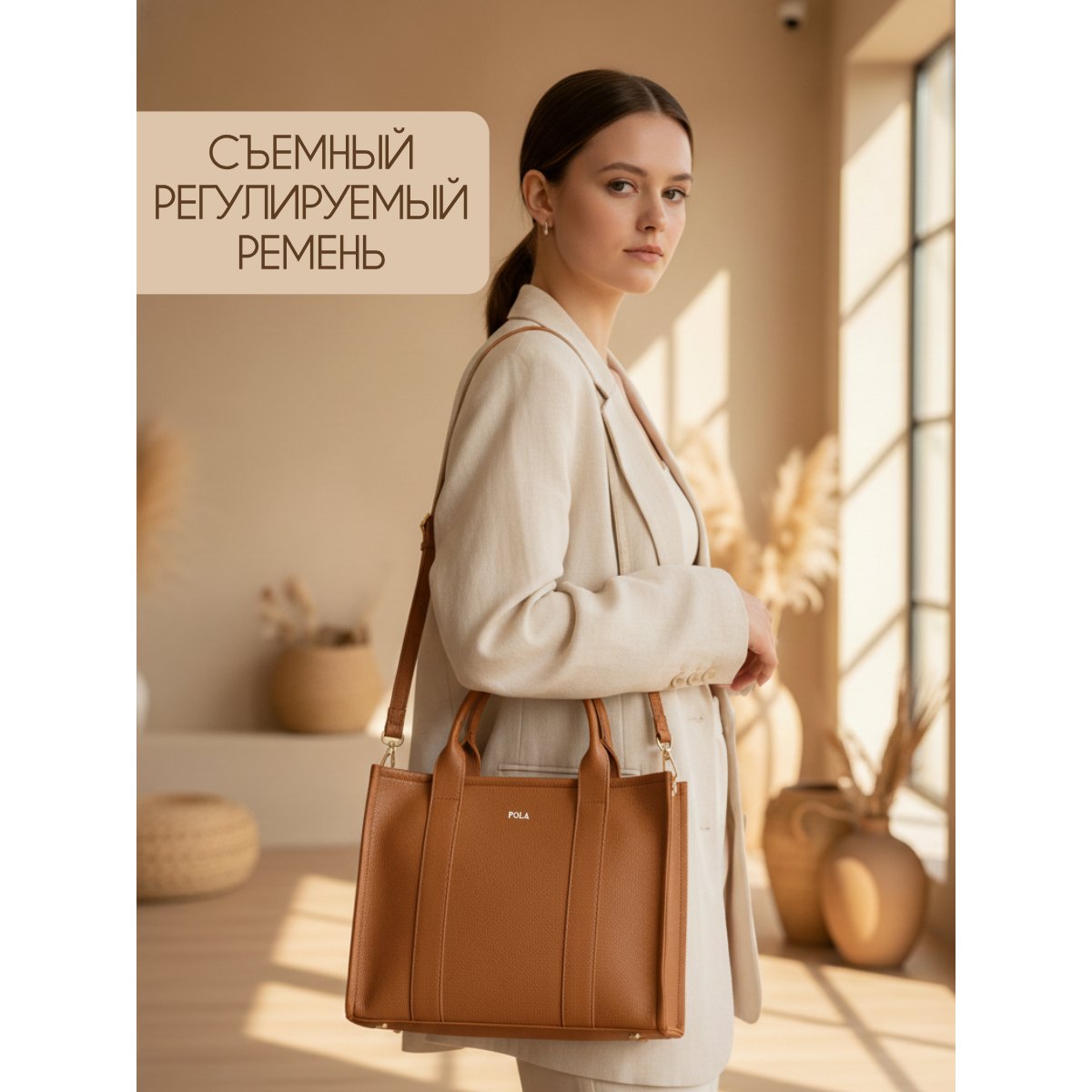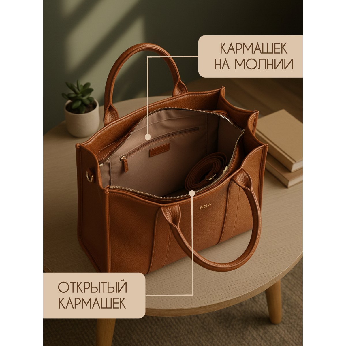 Стильная женская сумка фирмы POLA выполнена из экокожи. Идеальная сумка для повседневной жизни. Это большая шоппер модель, которая подходит как для учебы, так и для работы. Вмещает формат А4. Основное отделение закрывается на молнию. Внутри один карман на молнии и один открытый кармашек. Максимальная длина съемного регулируемого ремня составляет 132 см, высота ручки 14 см. Цвет фурнитуры-золото.