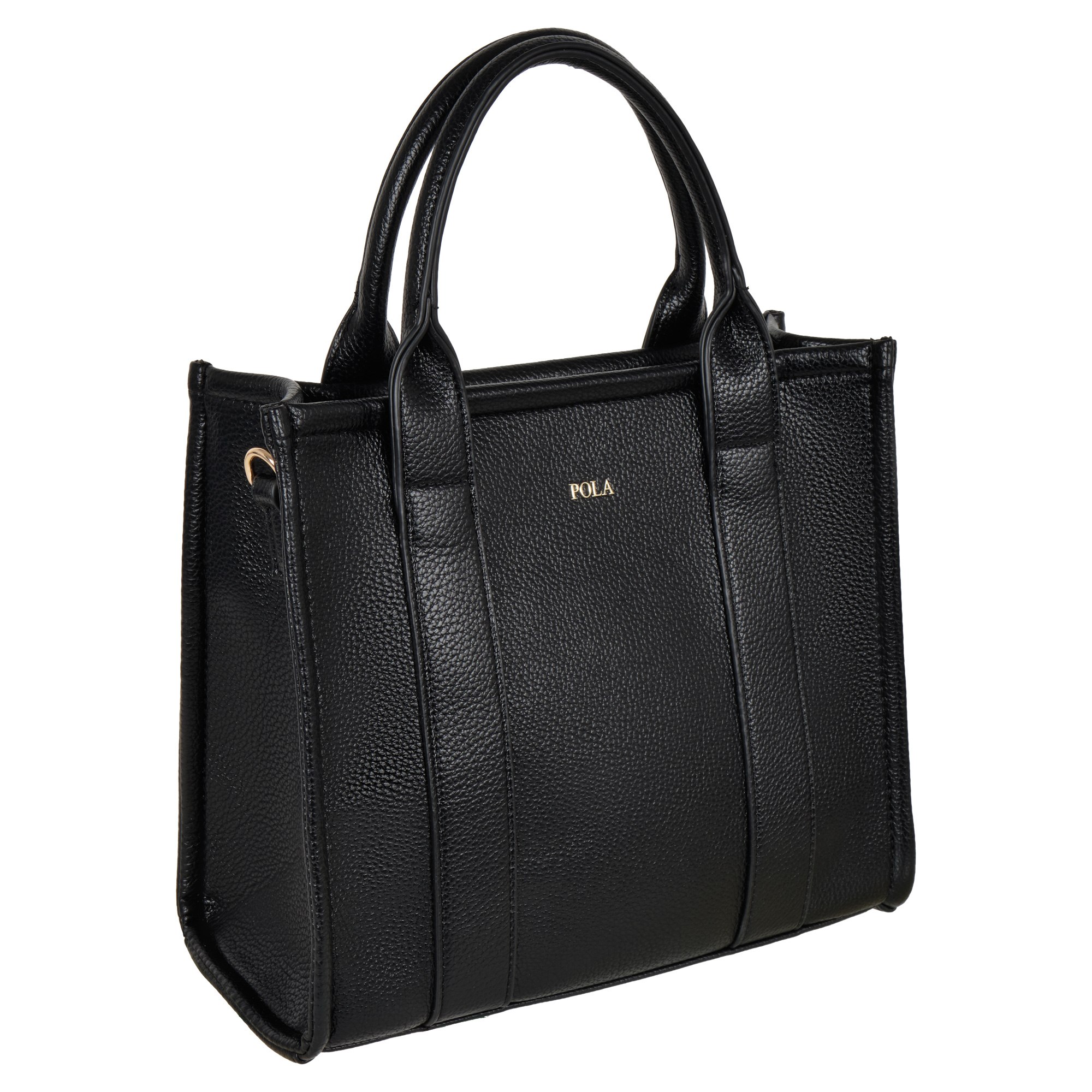 Стильная женская сумка фирмы POLA выполнена из экокожи. Идеальный аксессуар для повседневной жизни. Подходит для городских прогулок или деловых встреч. Основное отделение закрывается на молнию. Внутри один карман на молнии и один открытый кармашек. Максимальная длина съемного регулируемого ремня составляет 132 см, высота ручки 14 см. Цвет фурнитуры-золото.