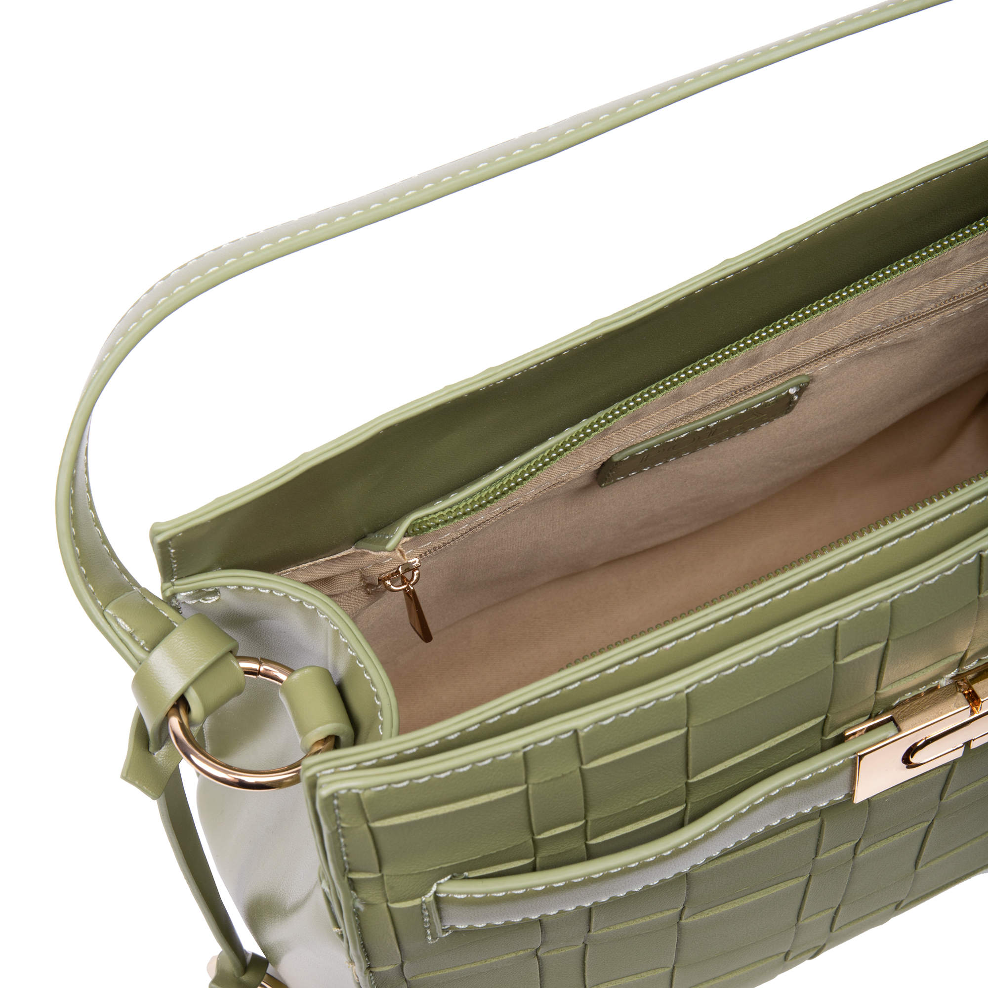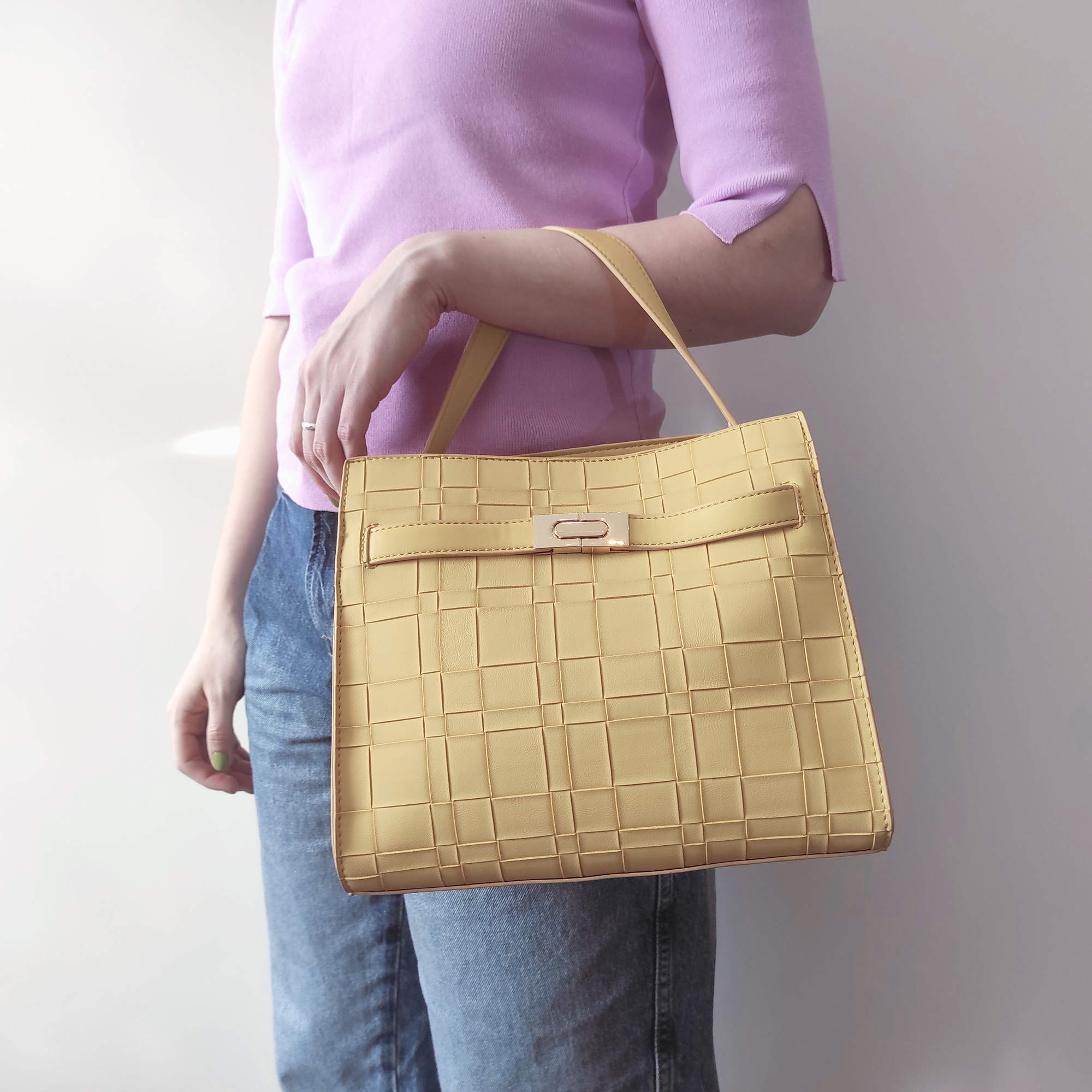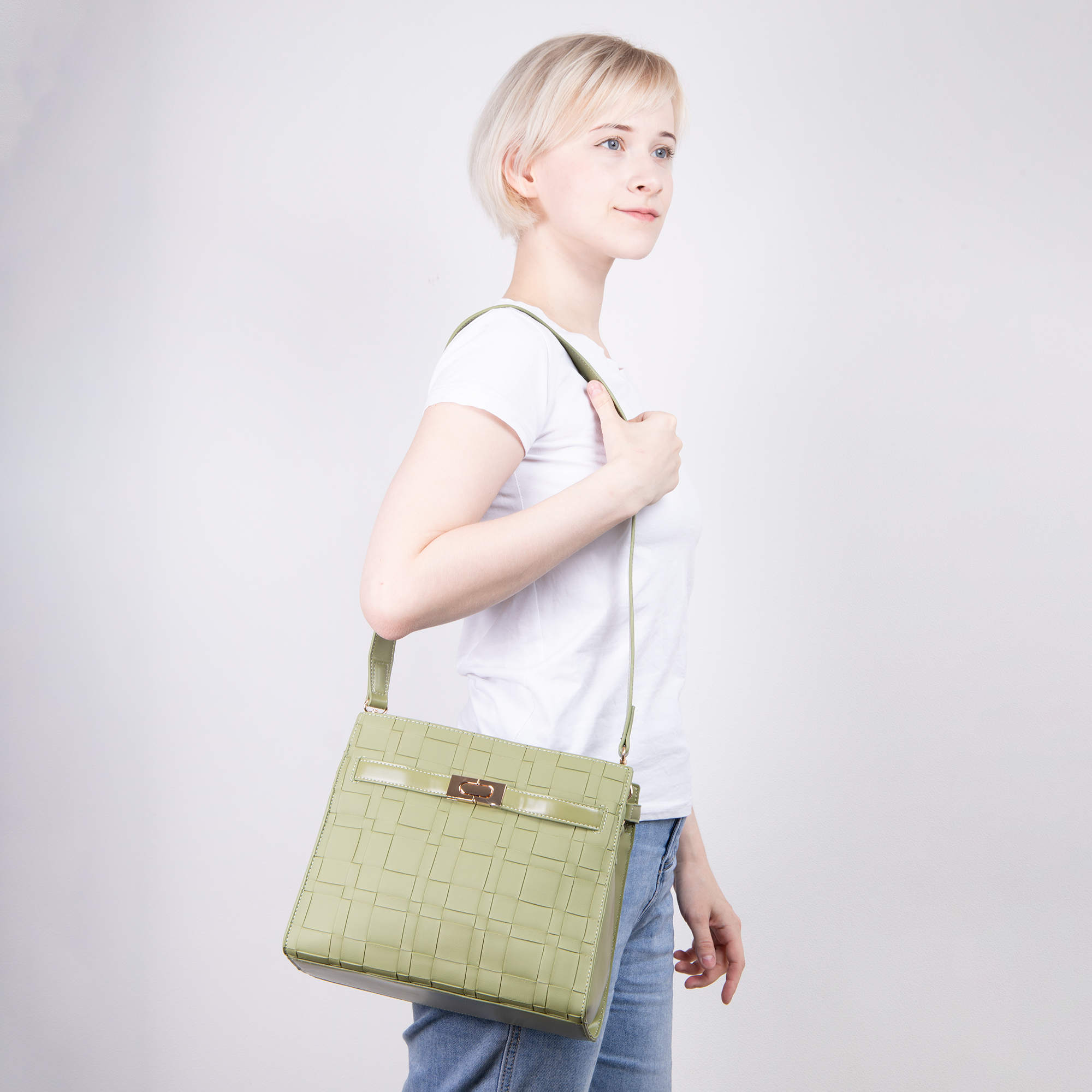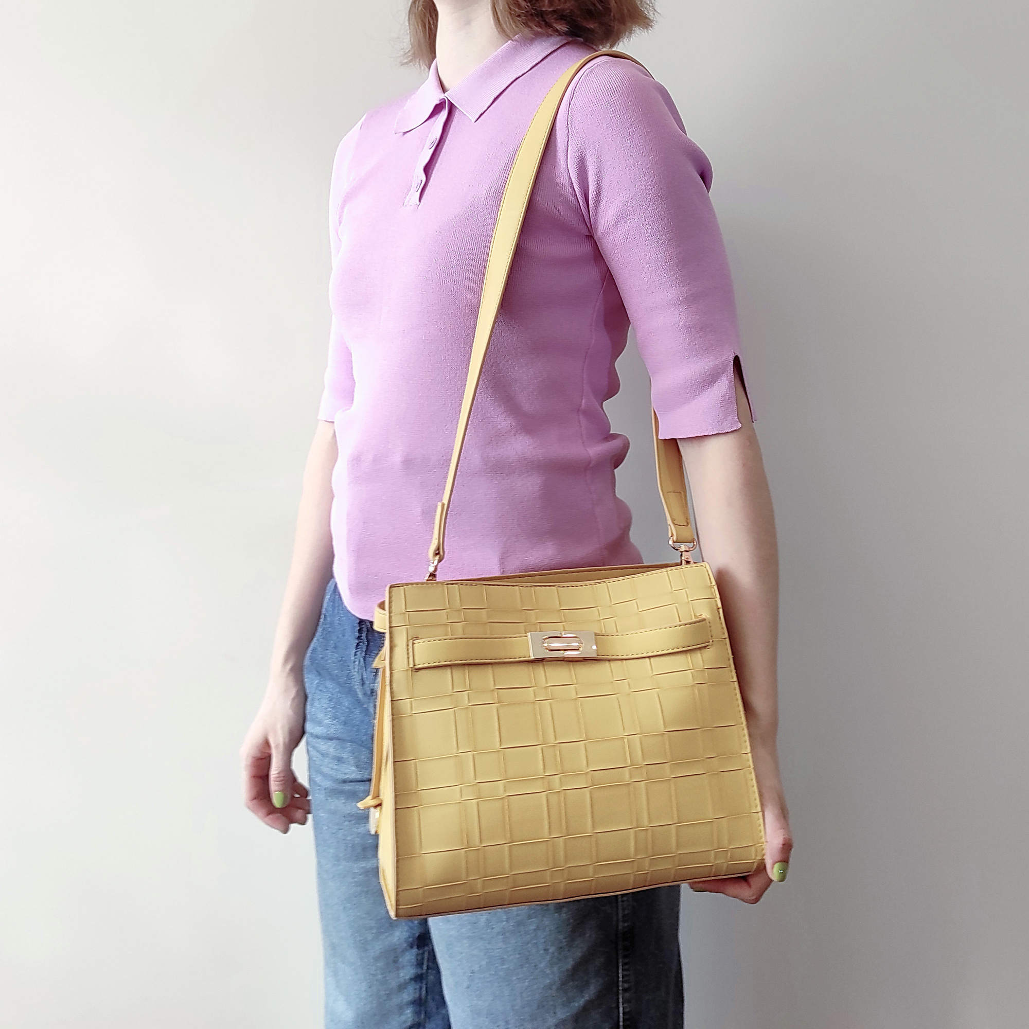 Стильная классическая сумка фирмы Pola выполнена под плетение из экокожи, имеет яркие цвета. Спереди есть карман закрывается на металлический замок. Основное отделение закрывается на молнию, внутри есть один карман на молнии и один открытый кармашек. Сумка прекрасно подойдёт женщинам, которые предпочитают яркий стиль. У сумки есть ручка для переноски, высота которой 13 см и съёмный, нерегулируемый плечевой ремень, максимальная длина которого 96 см. Цвет фурнитуры-золото.