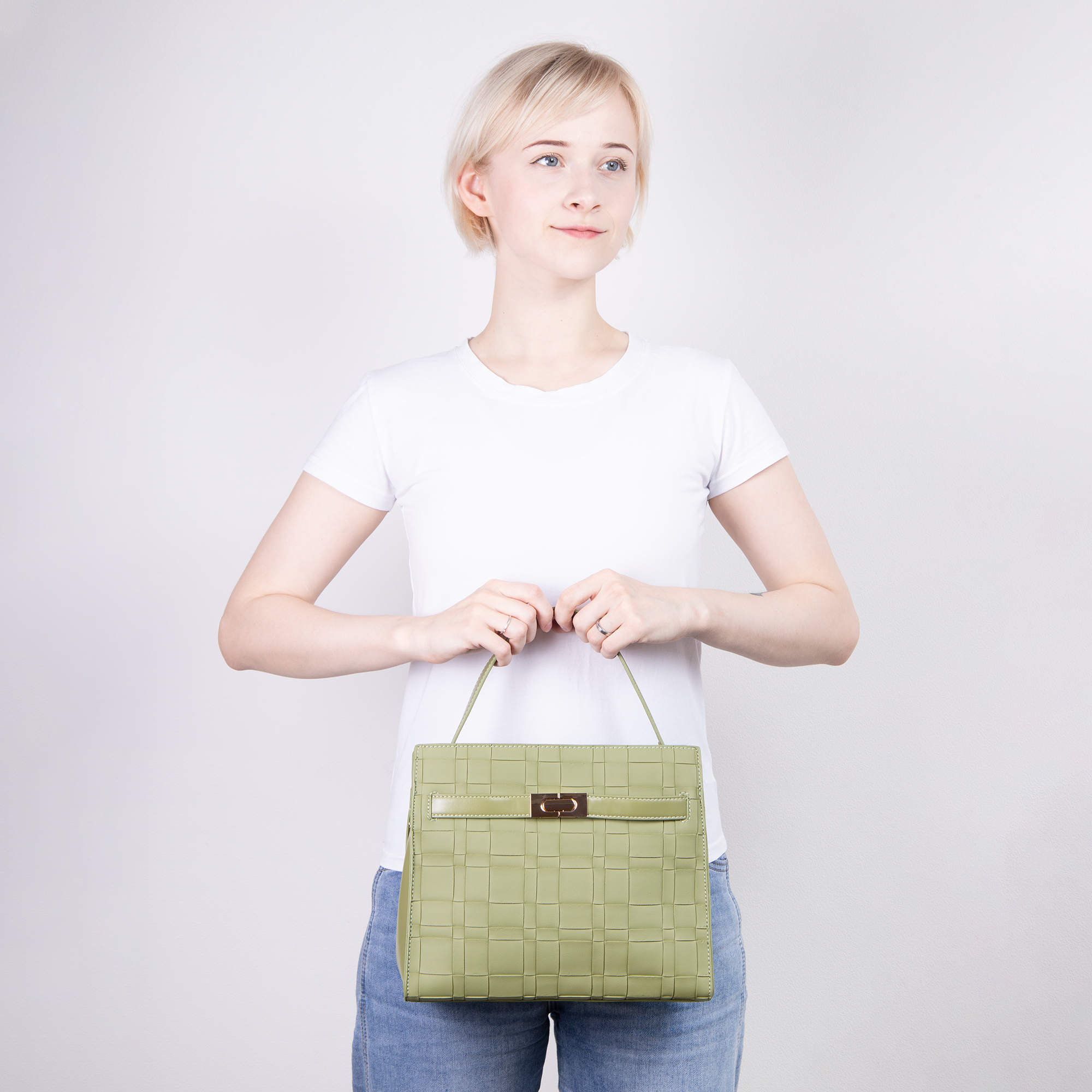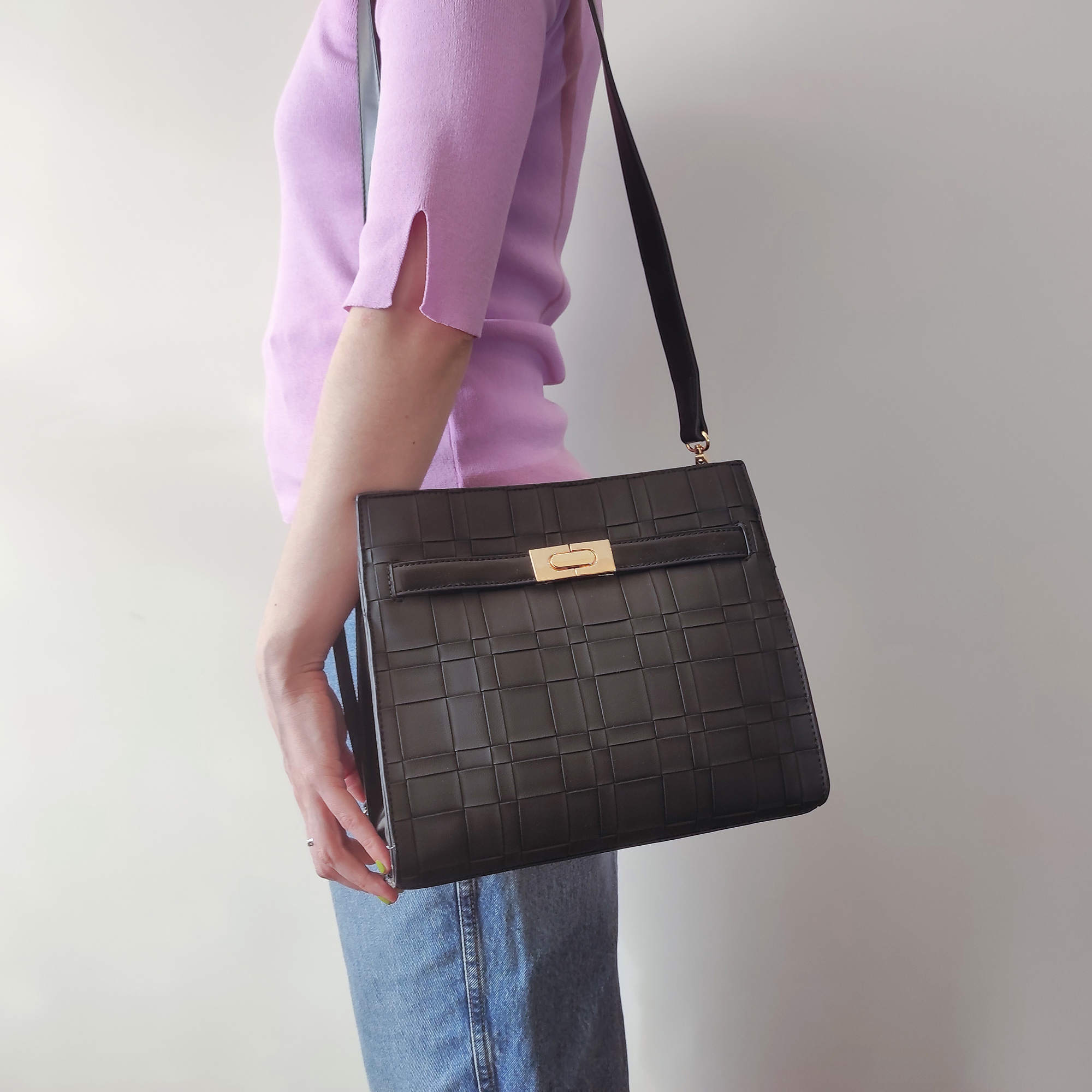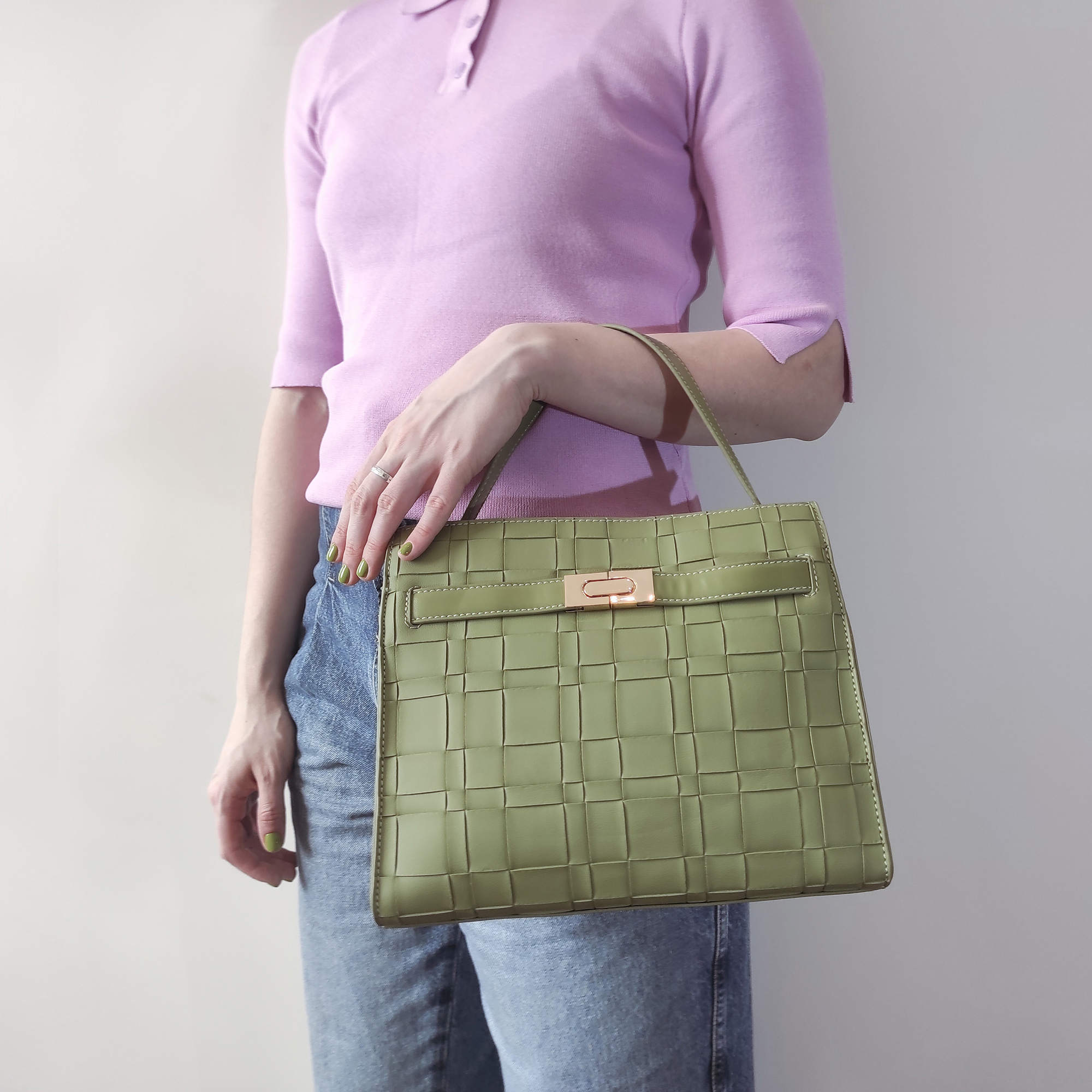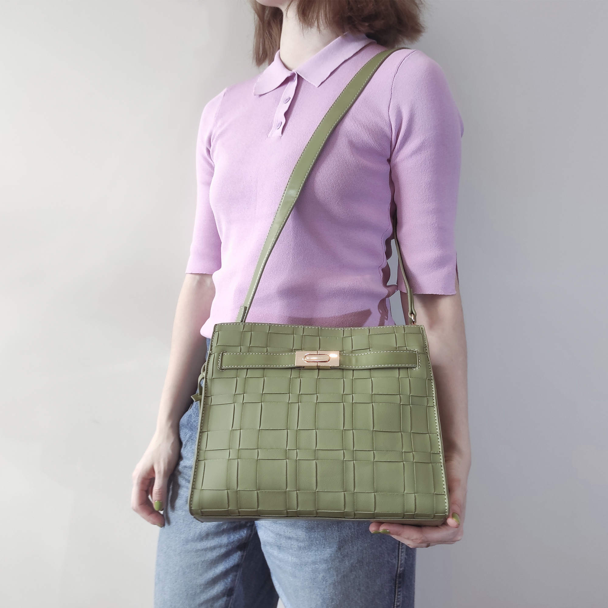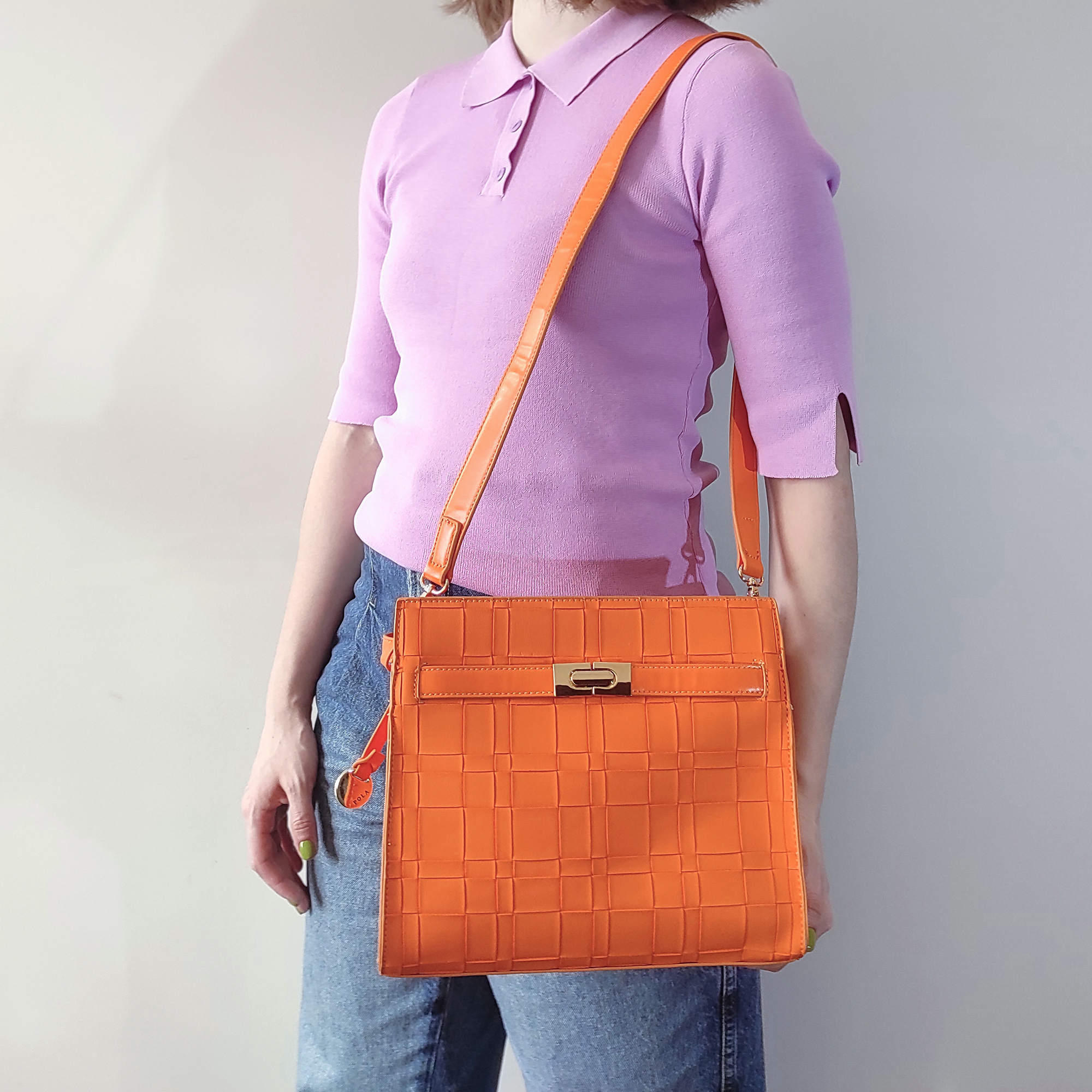 Стильная классическая сумка фирмы Pola выполнена под плетение из экокожи, имеет яркие цвета. Спереди есть карман закрывается на металлический замок. Основное отделение закрывается на молнию, внутри есть один карман на молнии и один открытый кармашек. Сумка прекрасно подойдёт женщинам, которые предпочитают яркий стиль. У сумки есть ручка для переноски, высота которой 13 см и съёмный, нерегулируемый плечевой ремень, максимальная длина которого 96 см. Цвет фурнитуры-золото.