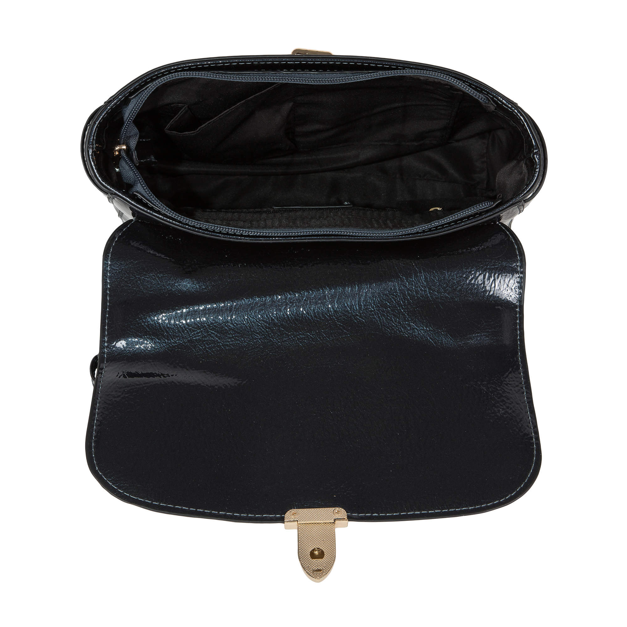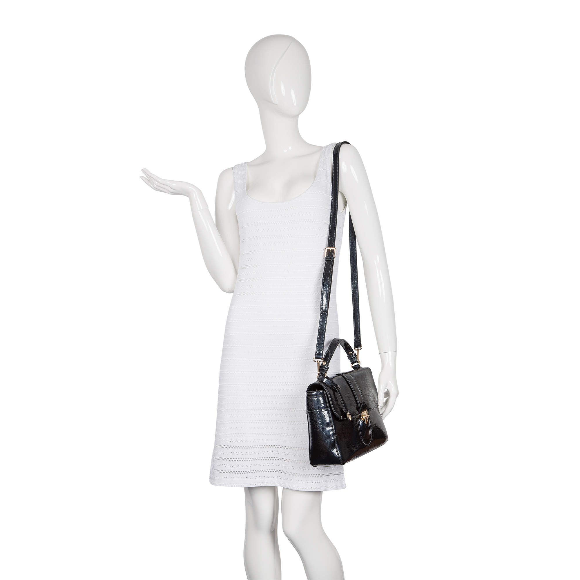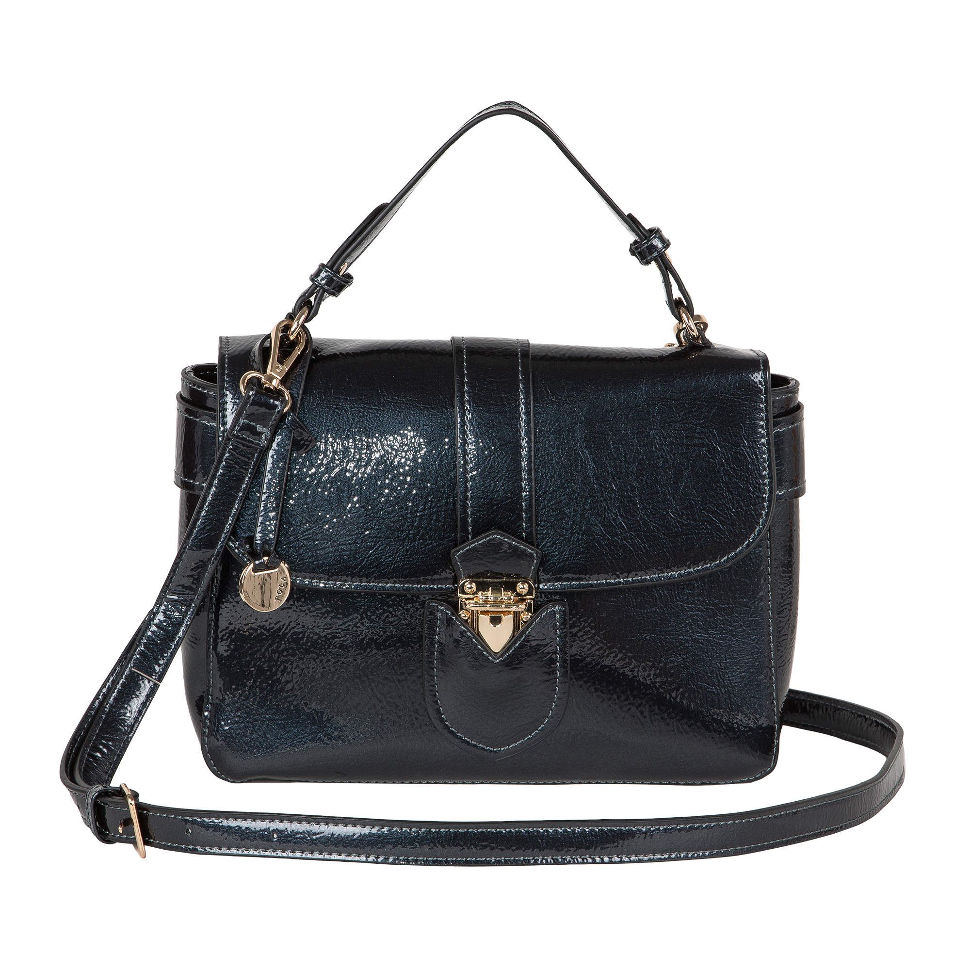Стильная сумка фирмы POLA выполнена из лакированной экокожи. Идеально подойдет как для деловой встречи, так и романтического свидания. Закрывается на клапан с кнопкой и на молнию. Внутри-один карман на молнии и два небольших открытых для мелочей. Сзади модели карман на молнии. В данной модели съемный регулируемый ремень, максимальная высота 66 см. Длина ручки 10 см. Модель декорирована золотой фурнитурой.